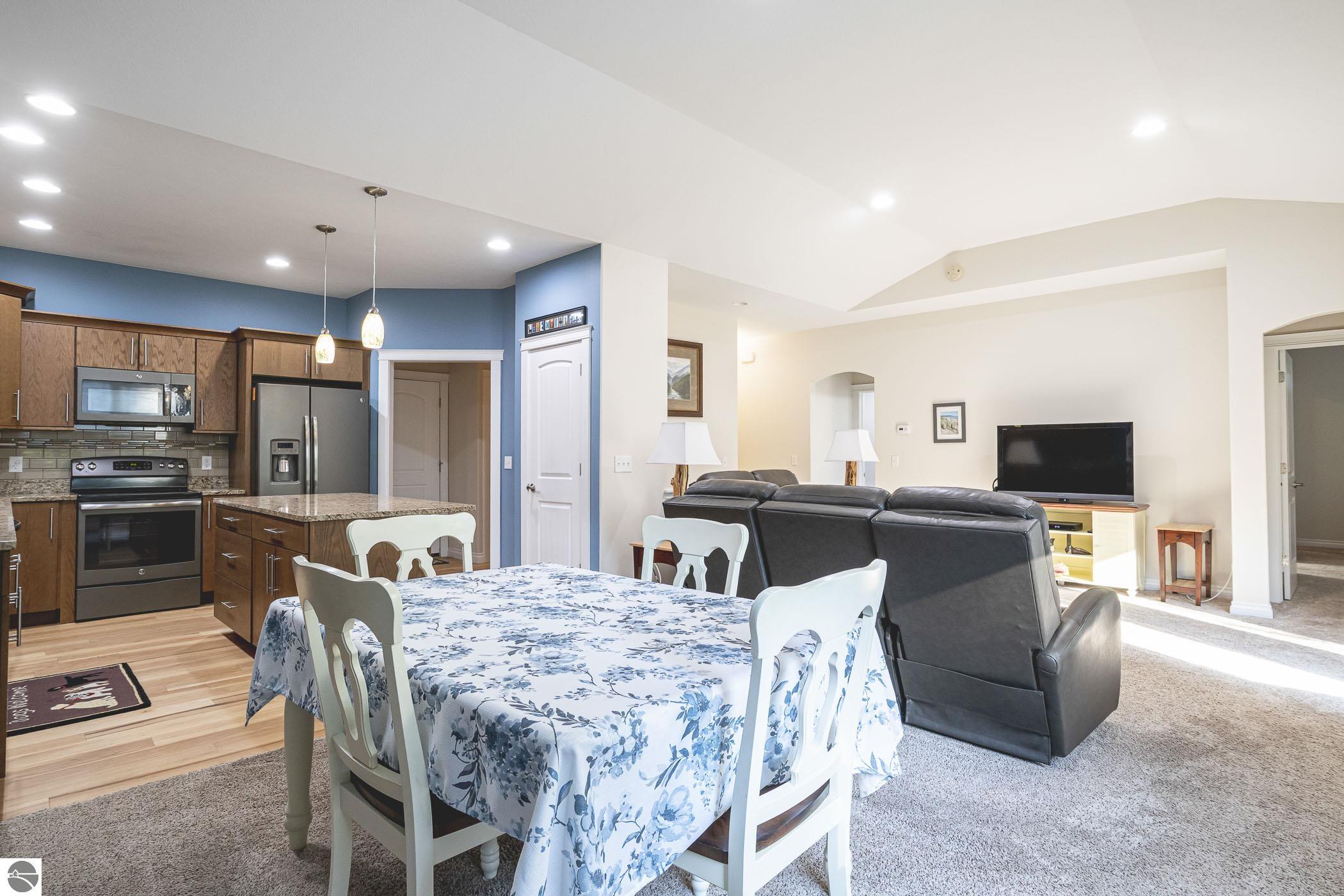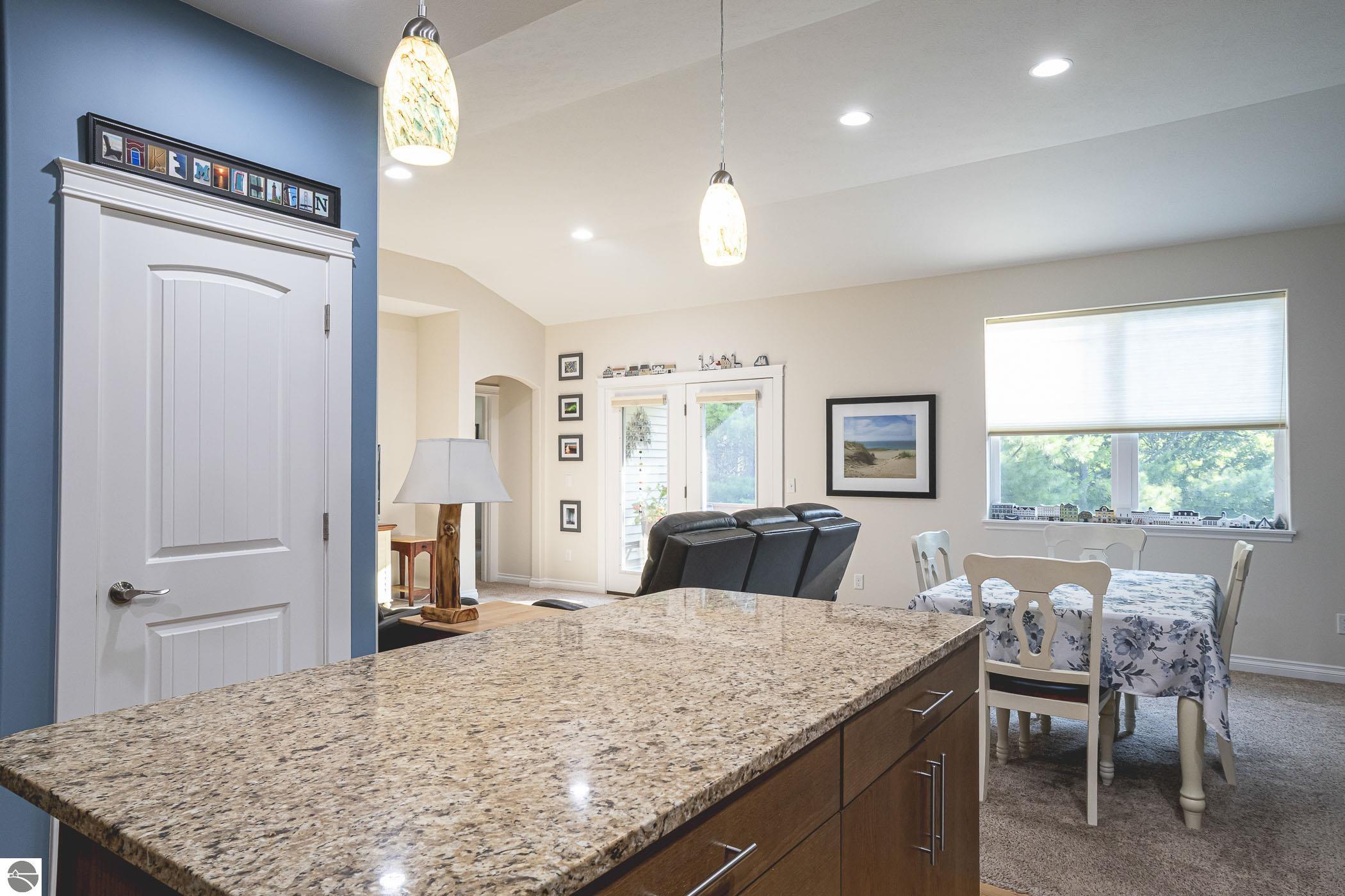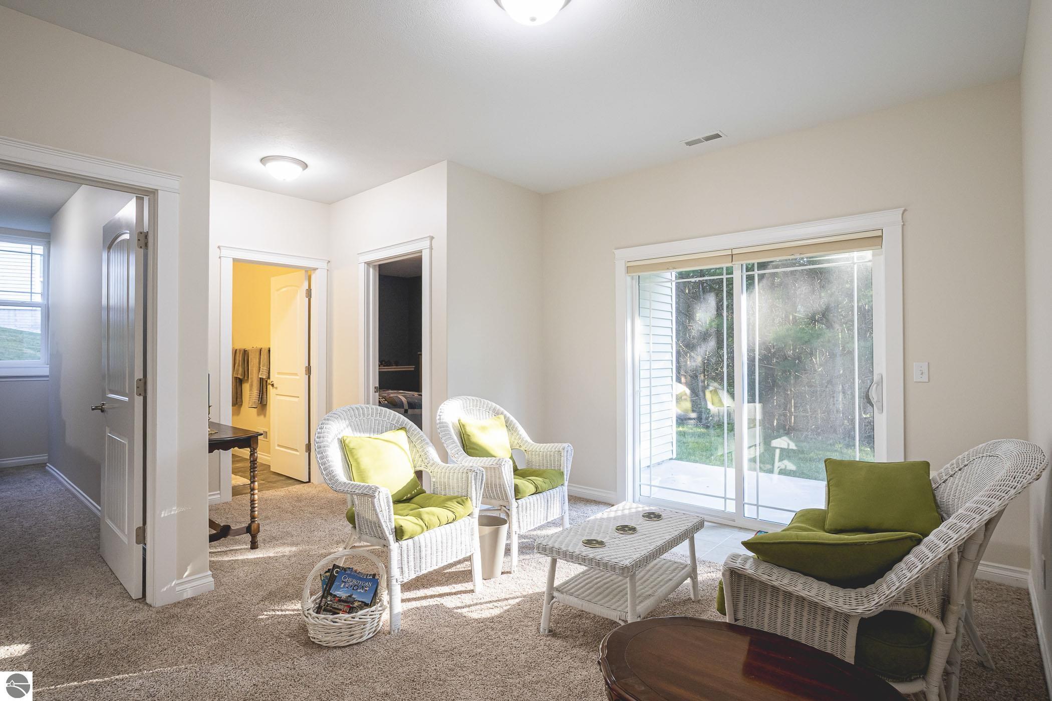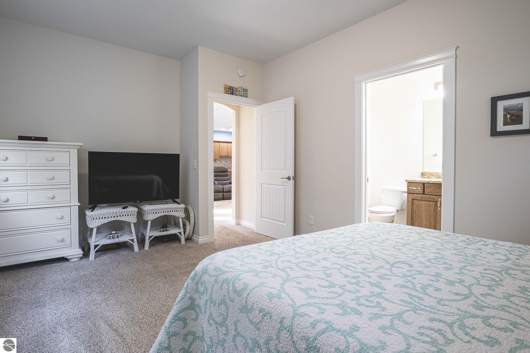 Enjoy Up North living just minutes from downtown Traverse City and less than eight minutes from Munson Hospital. Now vacant and move-in ready, this freestanding West Side condo—with no shared walls to any living space—shows beautifully with its expansive, open feel and abundant natural light. Tall ceilings throughout the main living area create a bright and welcoming atmosphere, while French doors off the living room open to a covered deck overlooking peaceful wooded scenery. The open floor plan seamlessly connects the living room, dining area, and kitchen—perfect for gatherings and entertaining. Open House Cancelled 11/30 due to weather conditions The main floor offers an owner’s suite with a private bath and walk-in closet, convenient laundry, and a 2-stall garage with extra storage—featuring just two easy steps into the main living area. The finished lower level includes three additional bedrooms, a full bath, a second living space, and a walk-out to the outdoors, providing ample flexibility for hobbies, a home office, guest quarters, or a media room. With comfort, versatility, soaring ceilings, and serene wooded views, this immaculate home is ready for its next owner—available for quick occupancy.