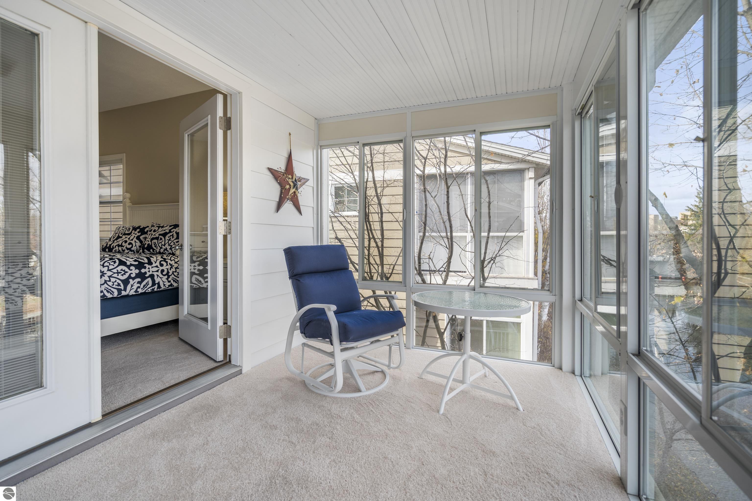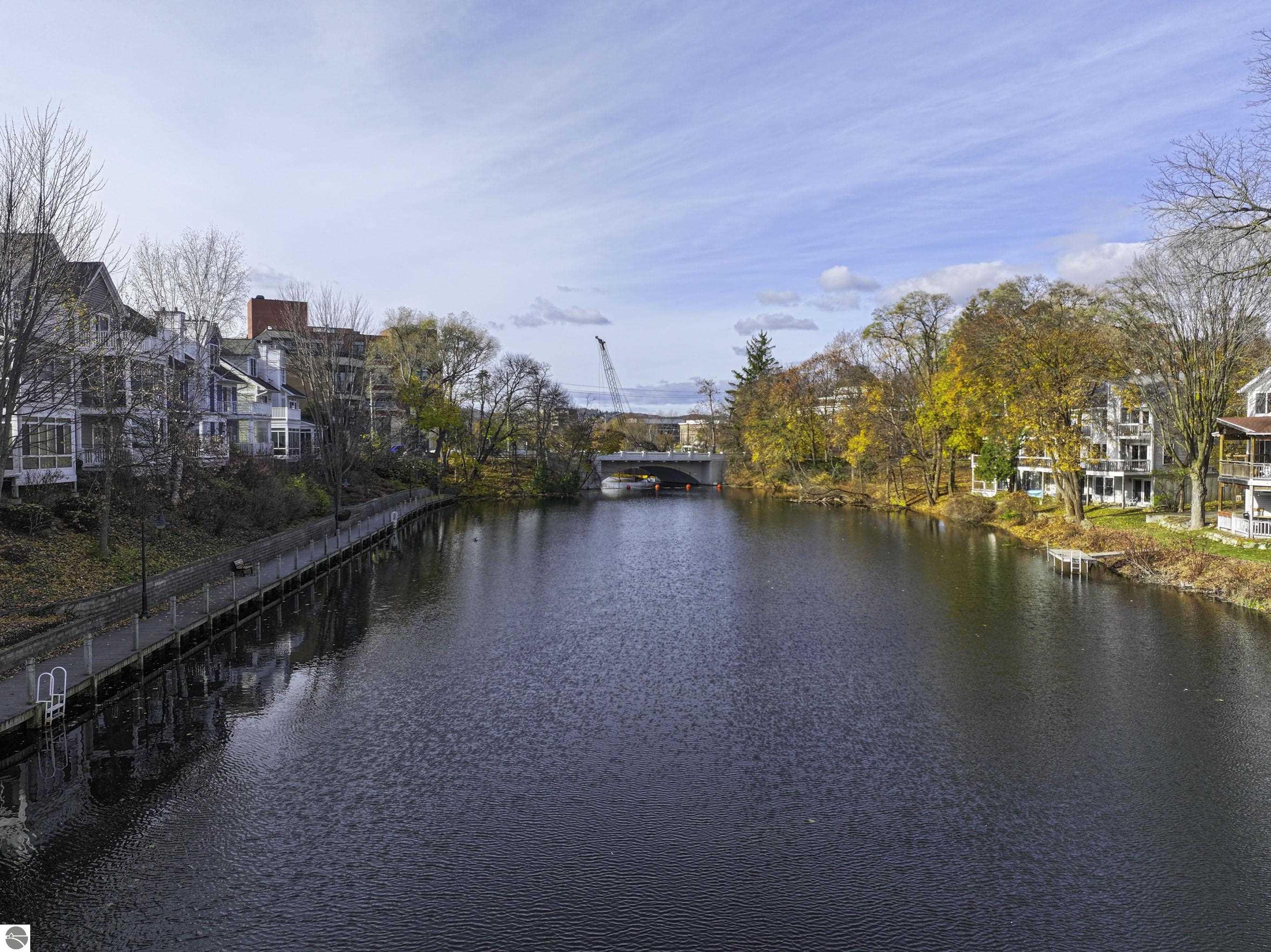 Wake up to the quiet rhythm of the Boardman River and end your day, just steps from the energy of downtown Traverse City. Tucked right on the river, this colorful Midtown condo offers a lifestyle that blends nature, walkability, modern comfort & convenience. Step inside to a light-filled main living space that exudes class, quality & warmth. The seamless flow welcomes you from the front door right into a foyer, then rolls into the living room overlooking the river. Thoughtfully designed open floor plan enhances easy living with the kitchen with a pretty island, making it easy for gathering. Quality finishes and appliances make cooking and hosting feel like a treat. Multiple outdoor spaces invite you to slow down and savor your surroundings—enjoy morning coffee on the covered porch, unwind in the screened porch, or take in peaceful river views from the multi-level decking. It’s a rare setting that feels private and serene, yet connected to everything Traverse City has to offer. Upstairs, the primary suite is a true retreat, complete with a walk-in closet and private bath. Additional bedrooms provide flexibility for guests, work-from-home space, or creative pursuits. A heated attached garage and low-maintenance living—thanks to association-managed lawn care, snow removal, and trash service—allow you to spend more time enjoying life and less time on upkeep. Located just minutes from downtown, trails, dining, and shopping, this home offers the best of both worlds: riverfront calm and city convenience.