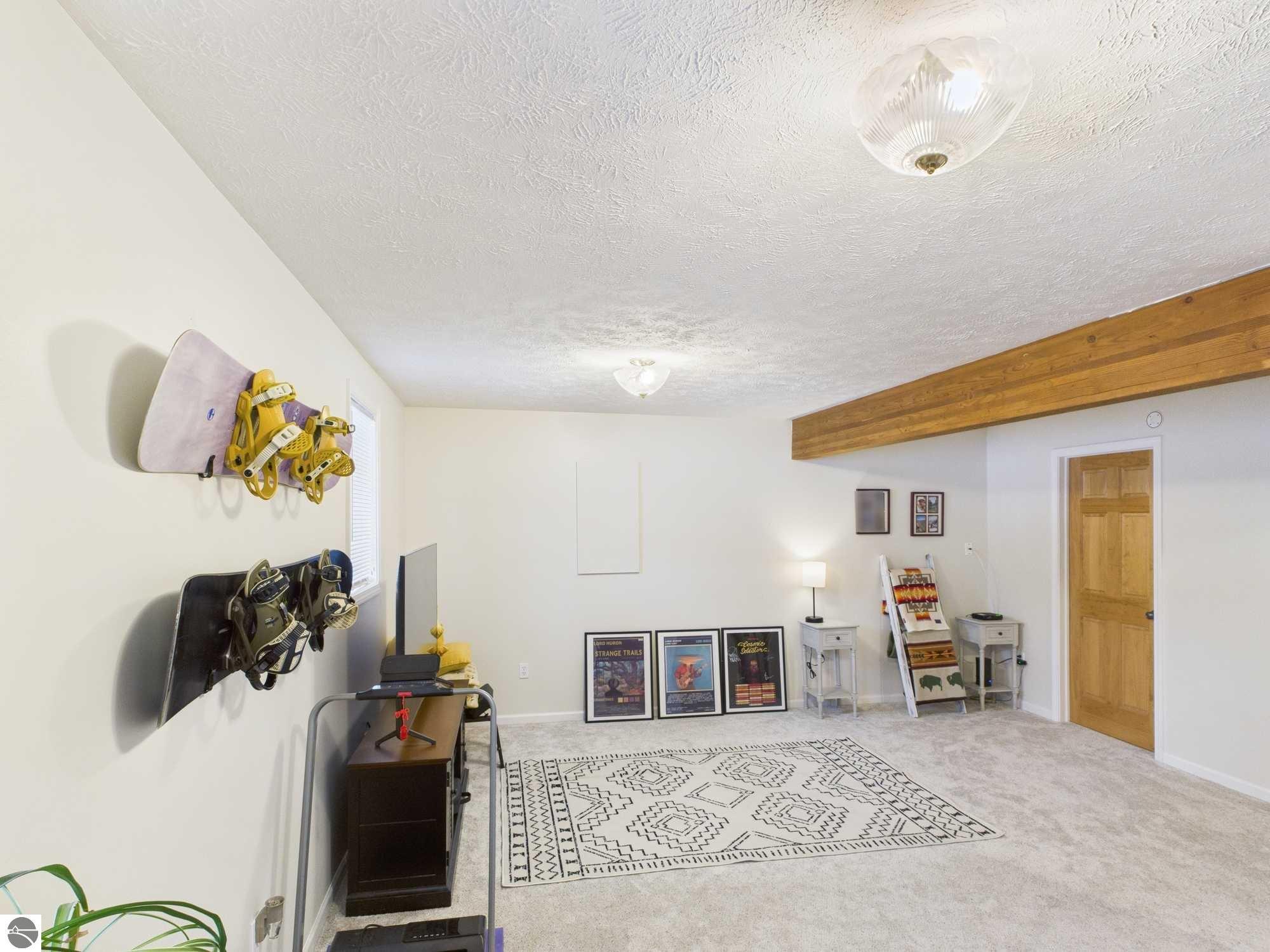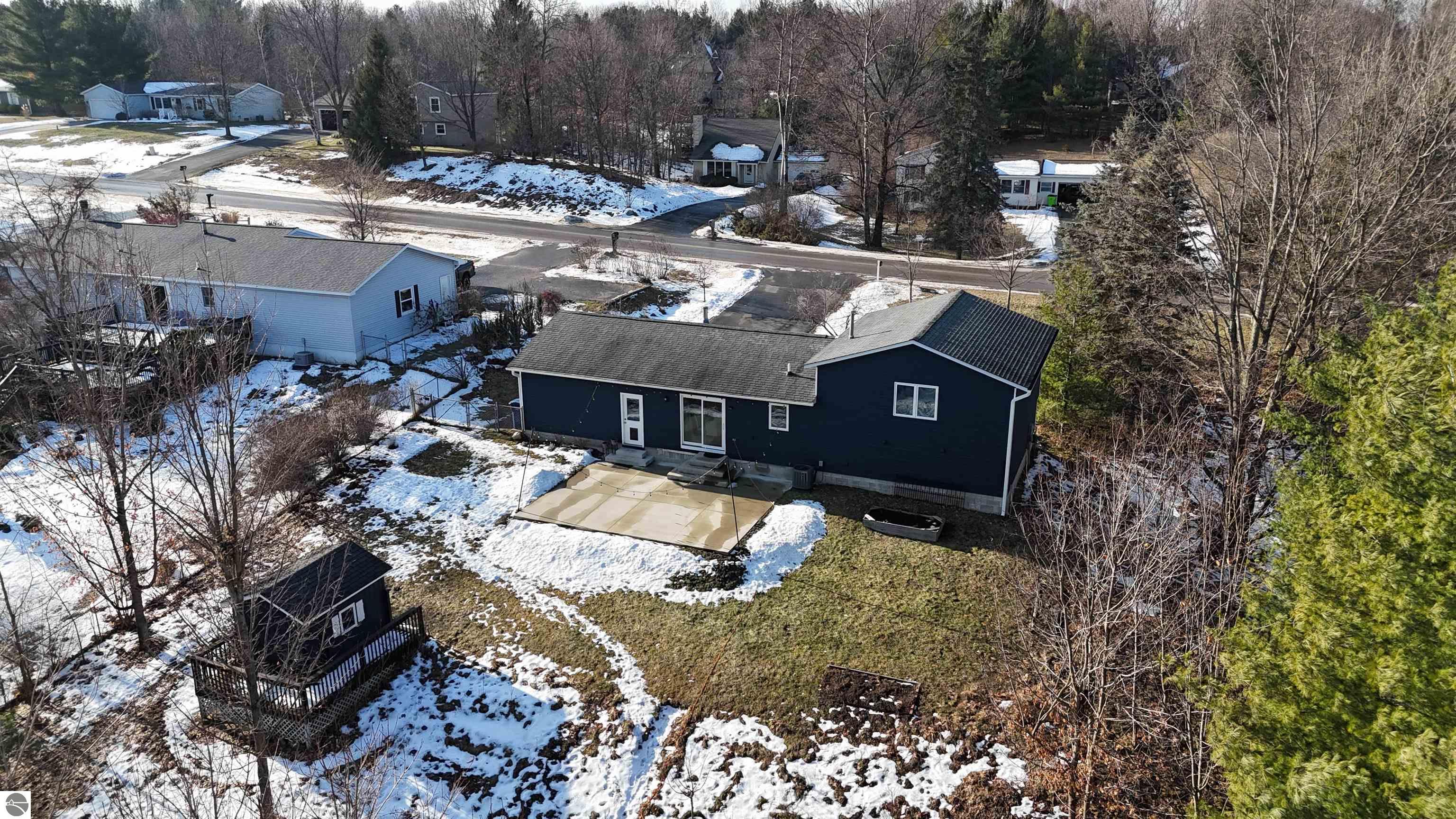 Outdoor enthusiasts will appreciate this well-maintained home adjacent to the Vasa Trail, offering direct access to year-round recreation including cross-country skiing, hiking, and biking right from the backyard. The home features two separate living areas, a gas fireplace, spacious bedrooms, and a bright kitchen with custom cabinetry, creating flexible spaces for everyday living and entertaining. A brand-new patio expands outdoor gathering options and enhances the private setting. Recent updates make this property truly move-in ready, including hardwood flooring, new interior and exterior paint, and a new air conditioning unit installed in 2022. Conveniently located close to Mount Holiday, Meijer, and multiple nearby parks, this home offers an ideal balance of outdoor access and everyday convenience near Traverse City.