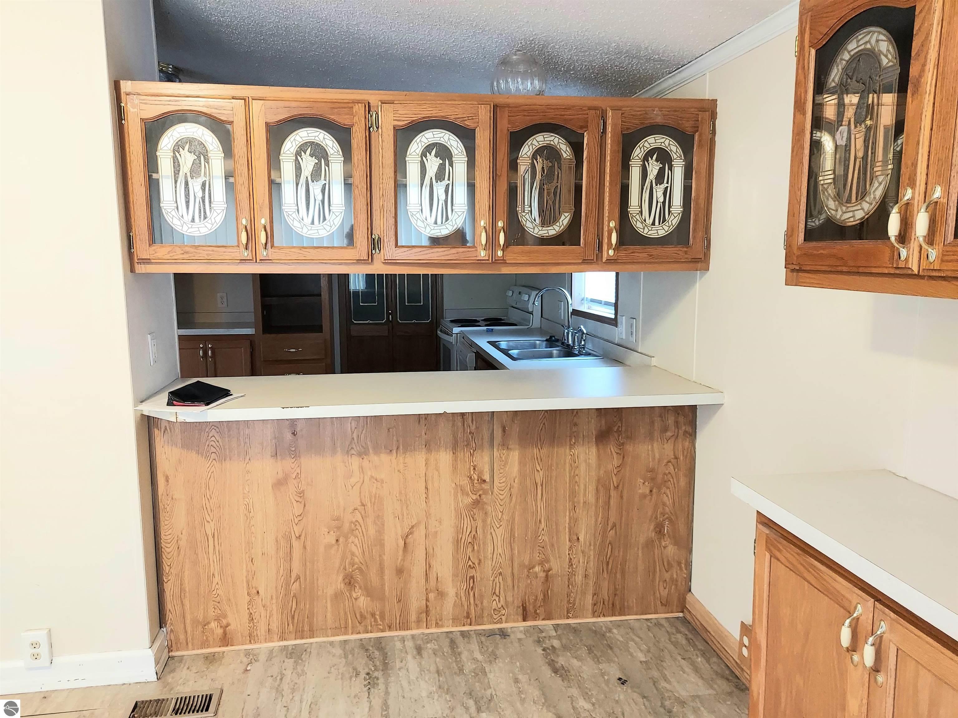 The front porch has a slider that takes you inside to the dining room. Very large living room, plenty of cabinet and work space in kitchen. Located in Kings Court where you pay a monthly lot rent currently $740. 3 bedrooms and 2 full baths in the end of home. Side covered deck, shed. Pets are welcome. Items in shed stays. You will need to be approved to live in park.