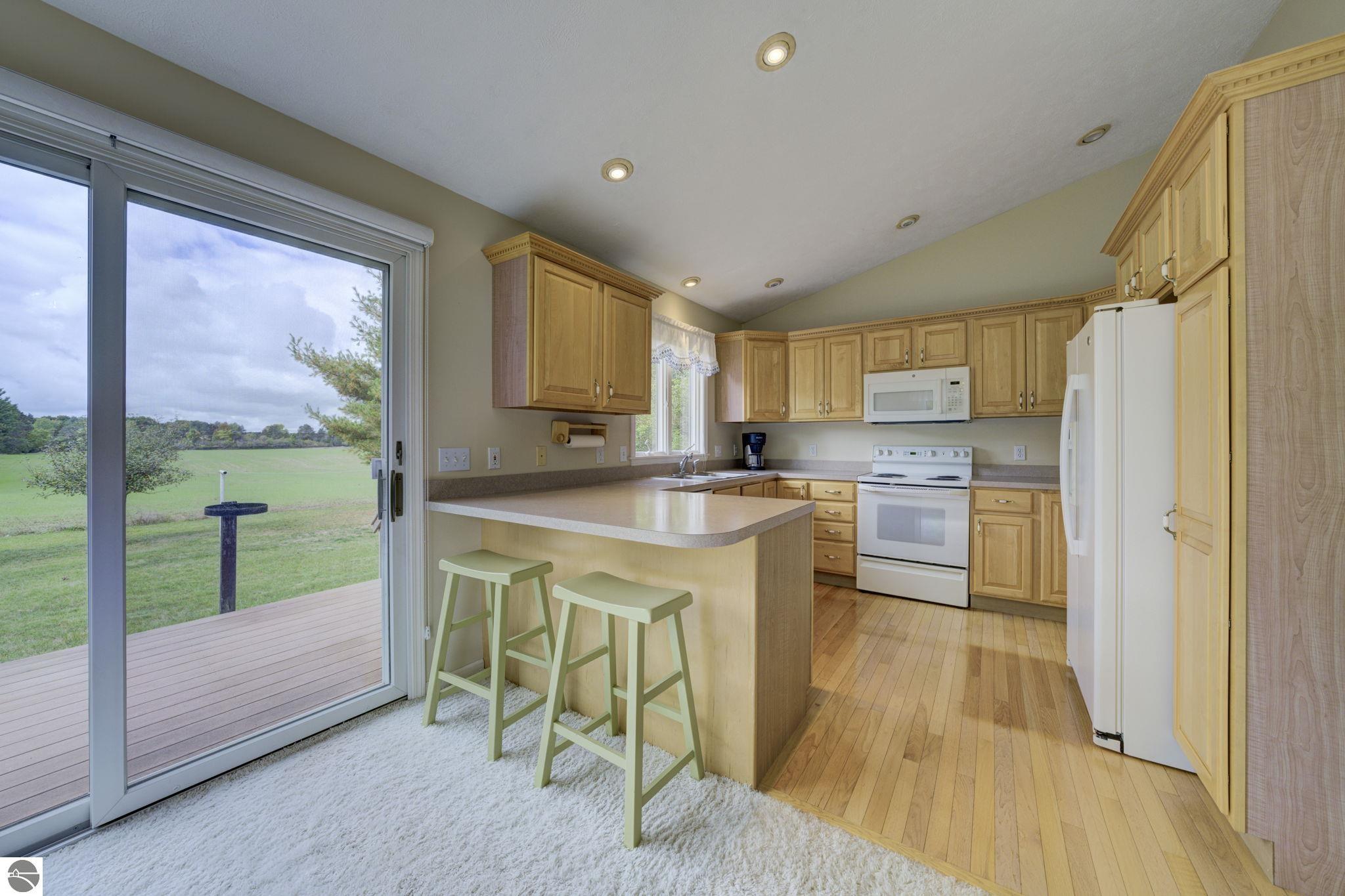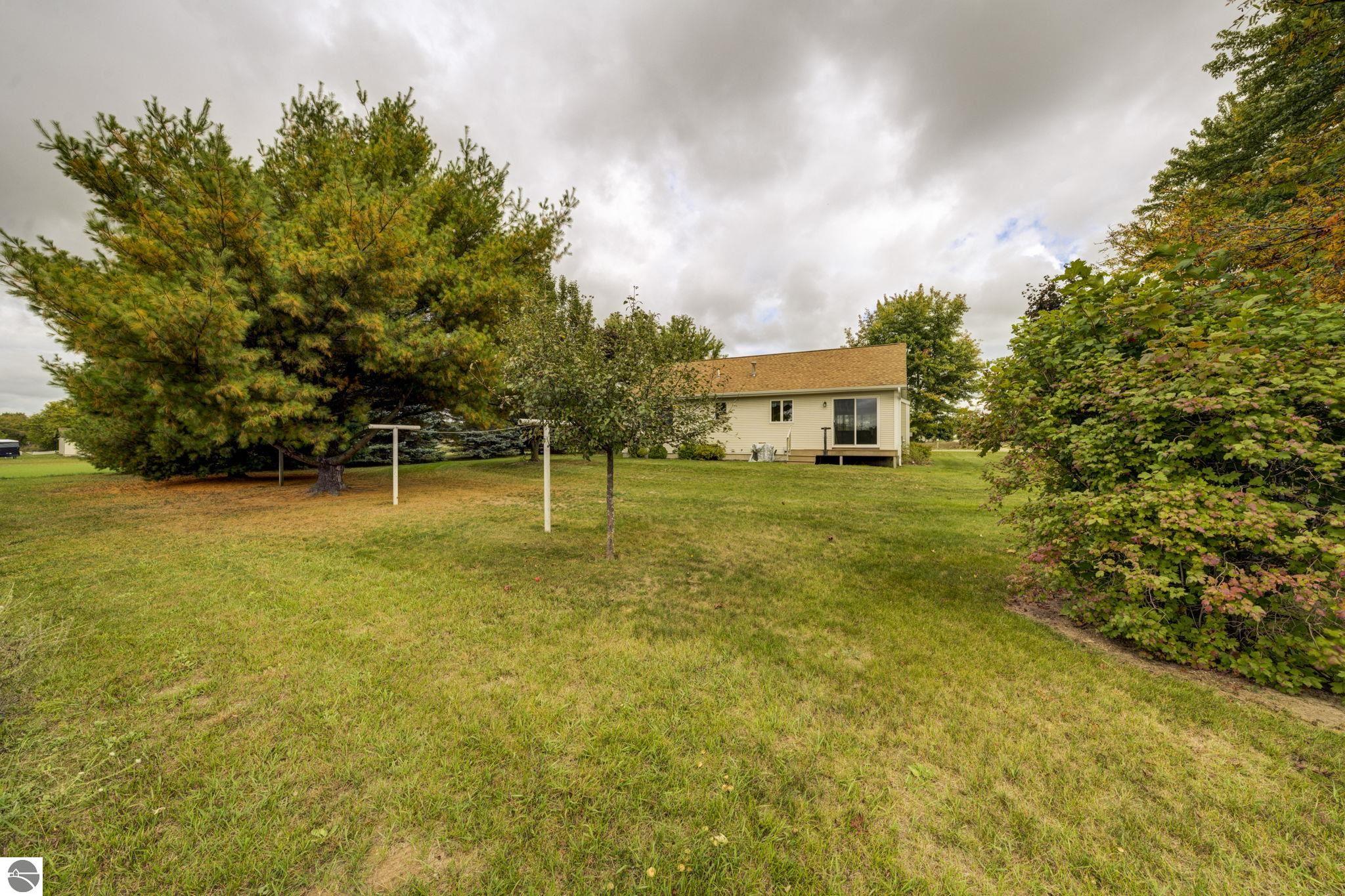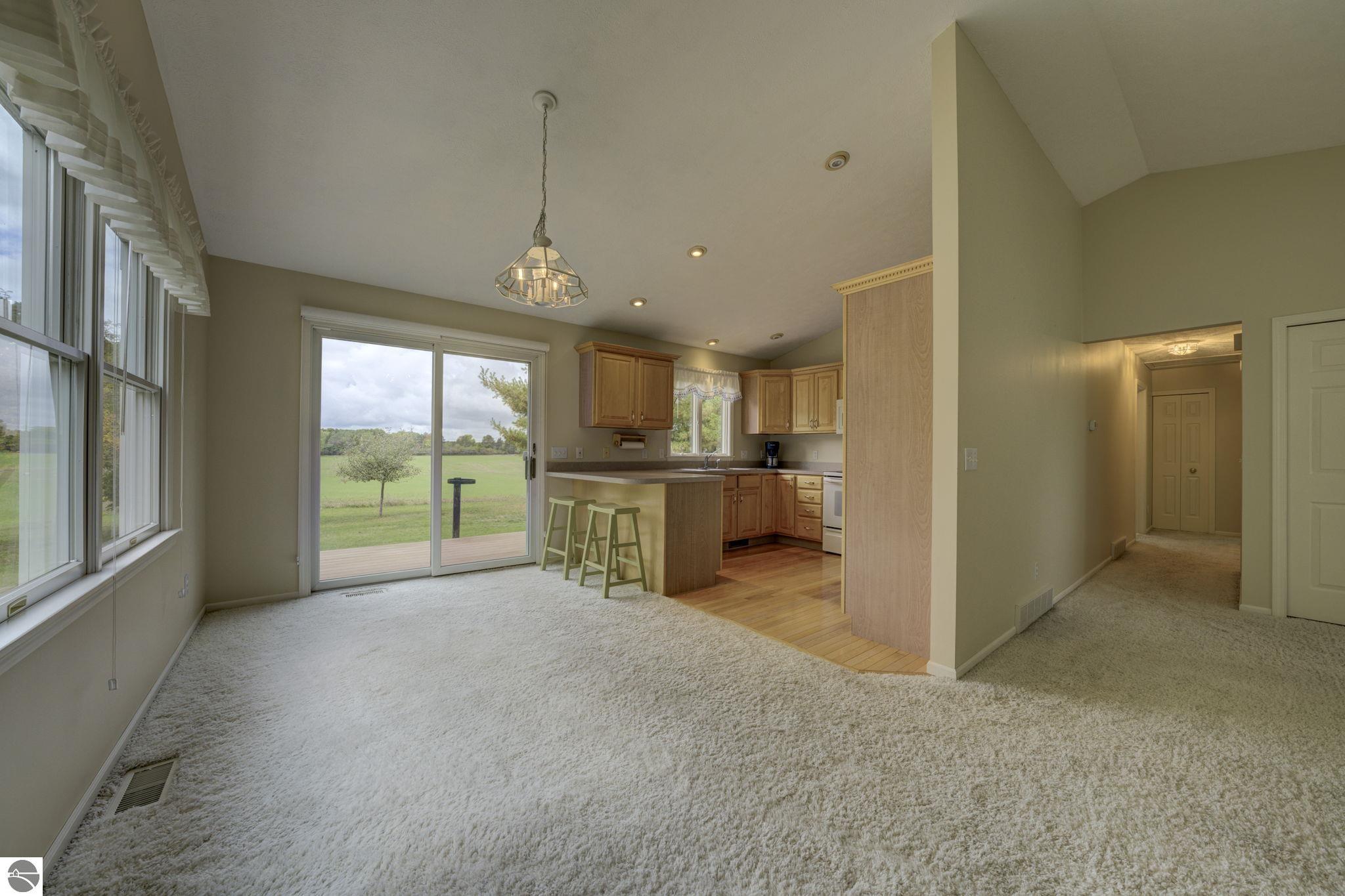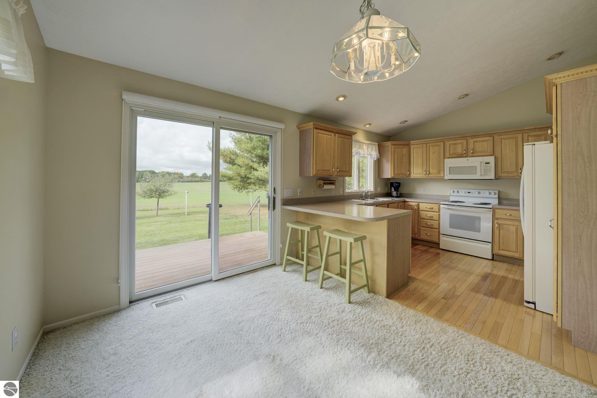 Well maintained ranch style home with all main floor living situated on 10 acres. The covered front porch greets you. Stepping into the home you will find a somewhat open floor plan with a nice sized living room offering plush white carpet, tiled gas fireplace and large daylight windows. You will appreciate the coat closet to keep all items put away and organized and the adjacent mudroom / laundry room with washtub and stackable washer & dryer. The kitchen overlooks the backyard and offers nice cabinetry with a pantry that has pull out drawers, two Lazy Susans, dishwasher and a breakfast bar. The dining area has a slider door that leads you out onto the back deck, facing west, for viewing those beautiful sunsets over the farm field. Walking down the hallway you will find a full bath and the 2nd bedroom along with the primary ensuite offering a TV nook, walk-in closet and a private 3/4 bath. Back out through the mudroom, there is a door that will lead you the stairs to the un-finished lower level where you can envision a future build out or continue to use as a storage room. Also from the mudroom, there is a door that leads you to the attached finished garage which has a side service door for convenience and a handicap ramp that can easily be removed.