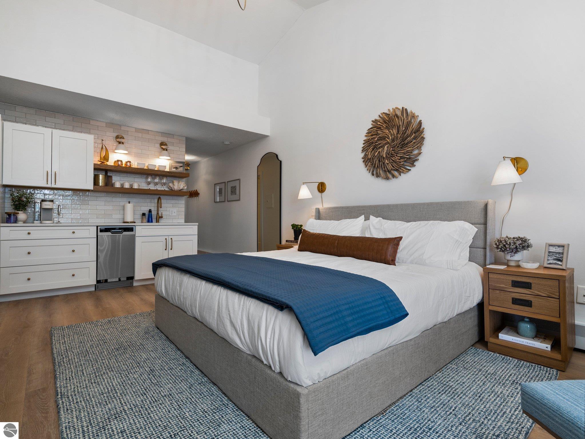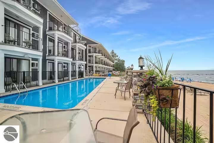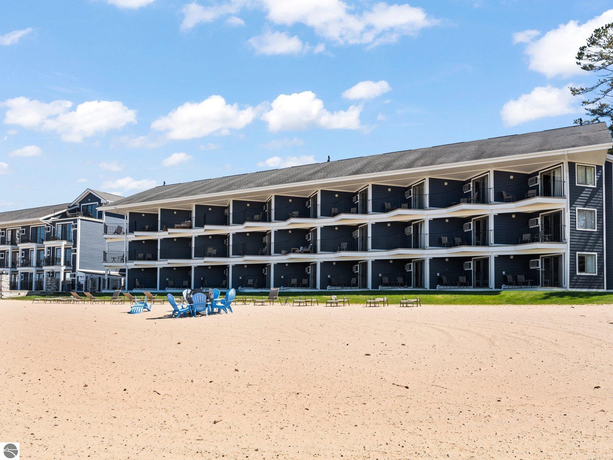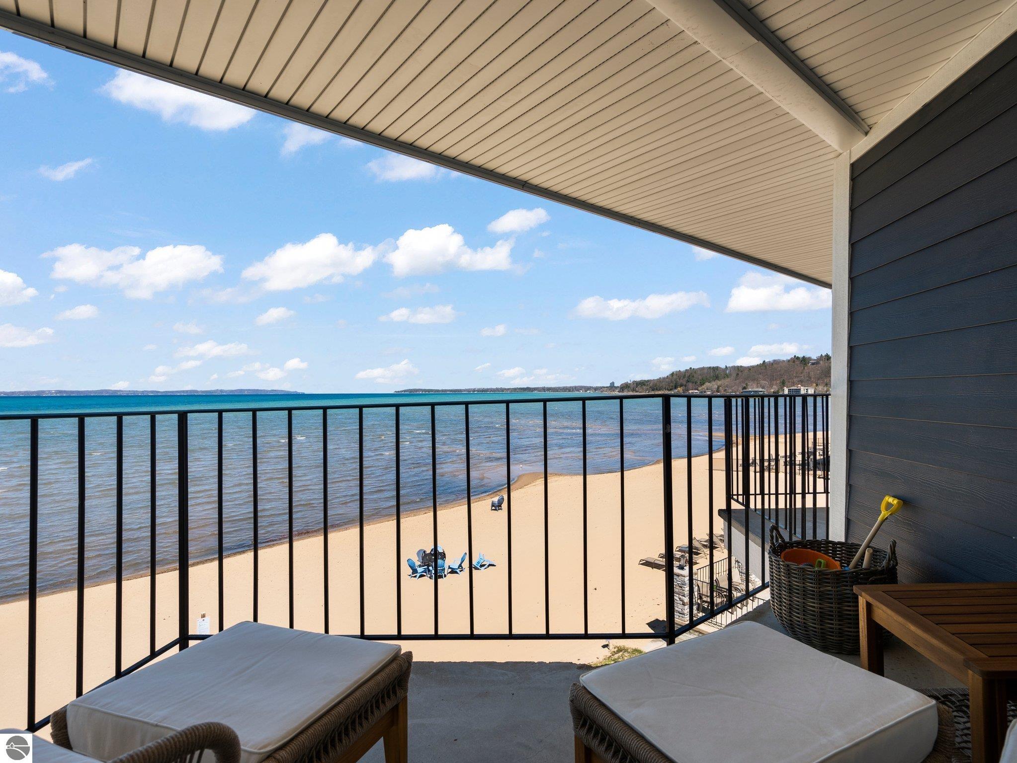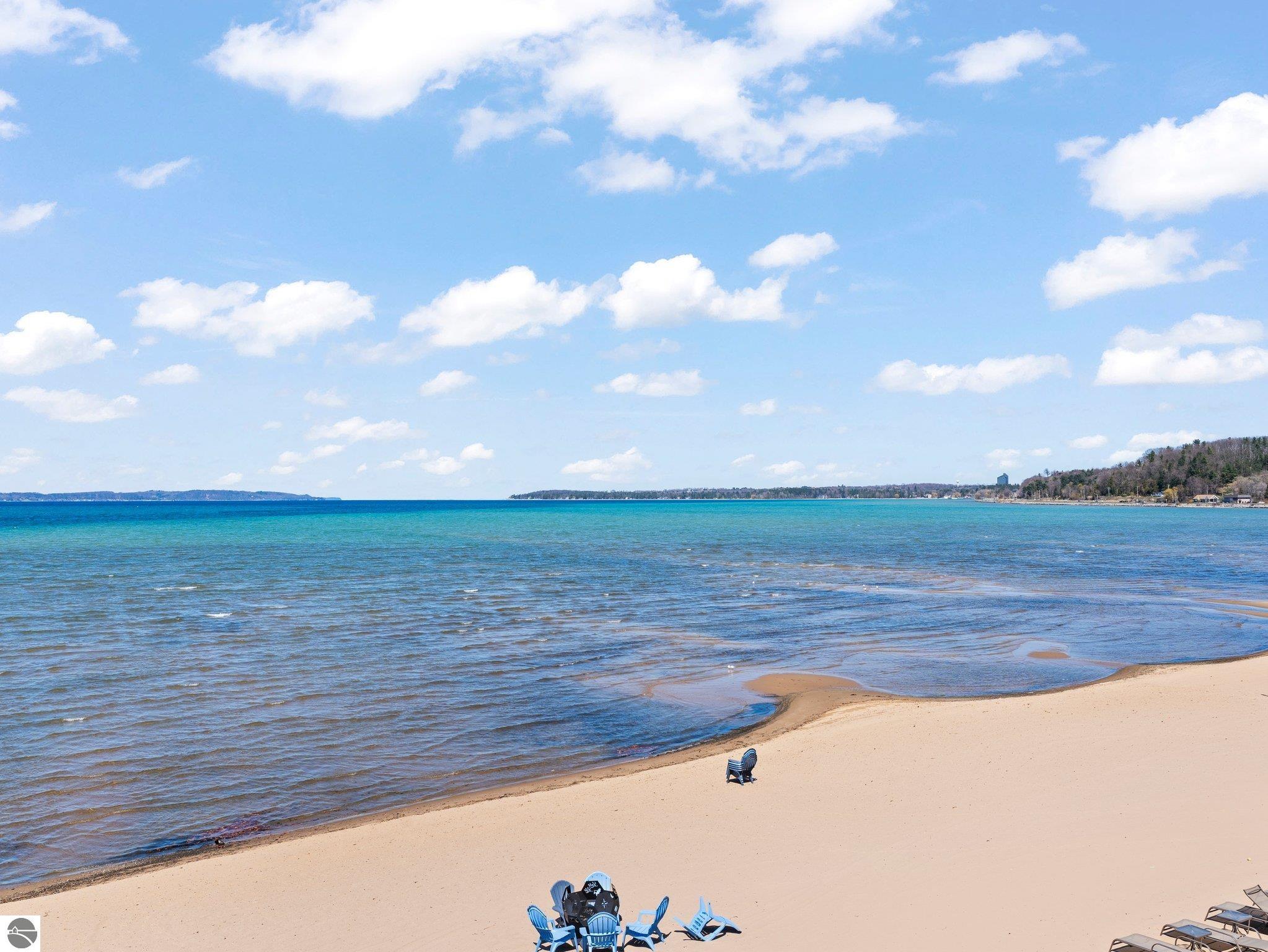 Nestled along the sought-after “Miracle Mile” of East Bay, this fully furnished beachfront condo offers the perfect balance of relaxation and investment potential. Step outside to enjoy a pristine sandy beach, breathtaking bay views, and immediate access to the very best of Traverse City. Inside, the condo has been thoughtfully updated within the last two years. A brand-new kitchenette with quartz countertops and modern finishes makes quick meals a breeze, while the refreshed bathroom adds a touch of spa-like comfort. Tasteful furnishings throughout create a turnkey opportunity—whether you’re seeking a private retreat or ready-to-go rental income. Practical features such as elevator access make the unit easily accessible, while the unbeatable location ensures you’re just minutes from restaurants, shopping, and recreation. Whether you’re looking for a vacation escape, a short-term rental investment, or both, this condo delivers the rare combination of convenience, style, and a premier beachfront setting