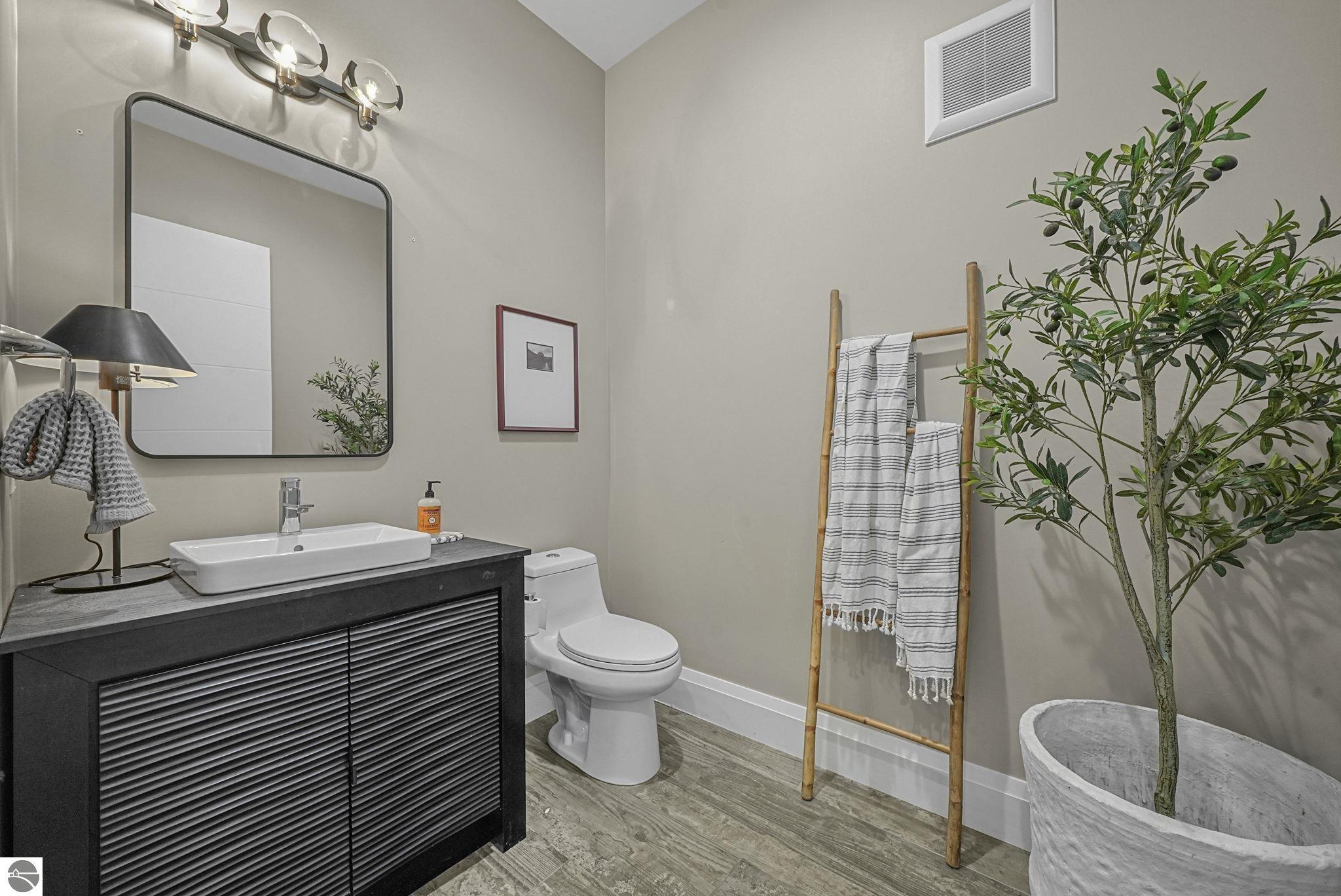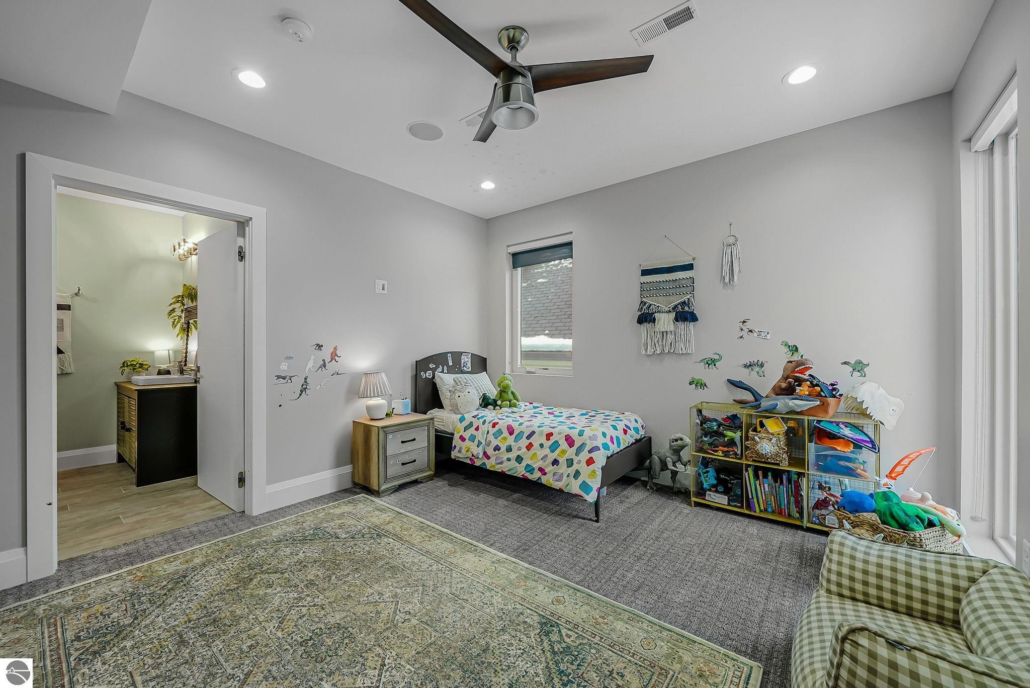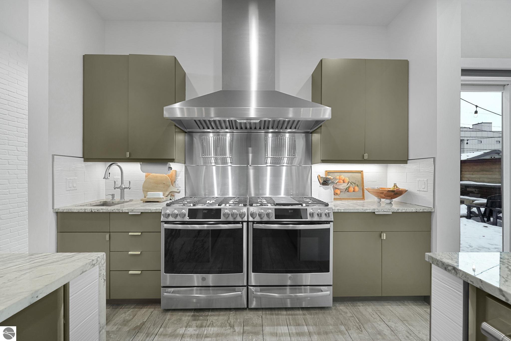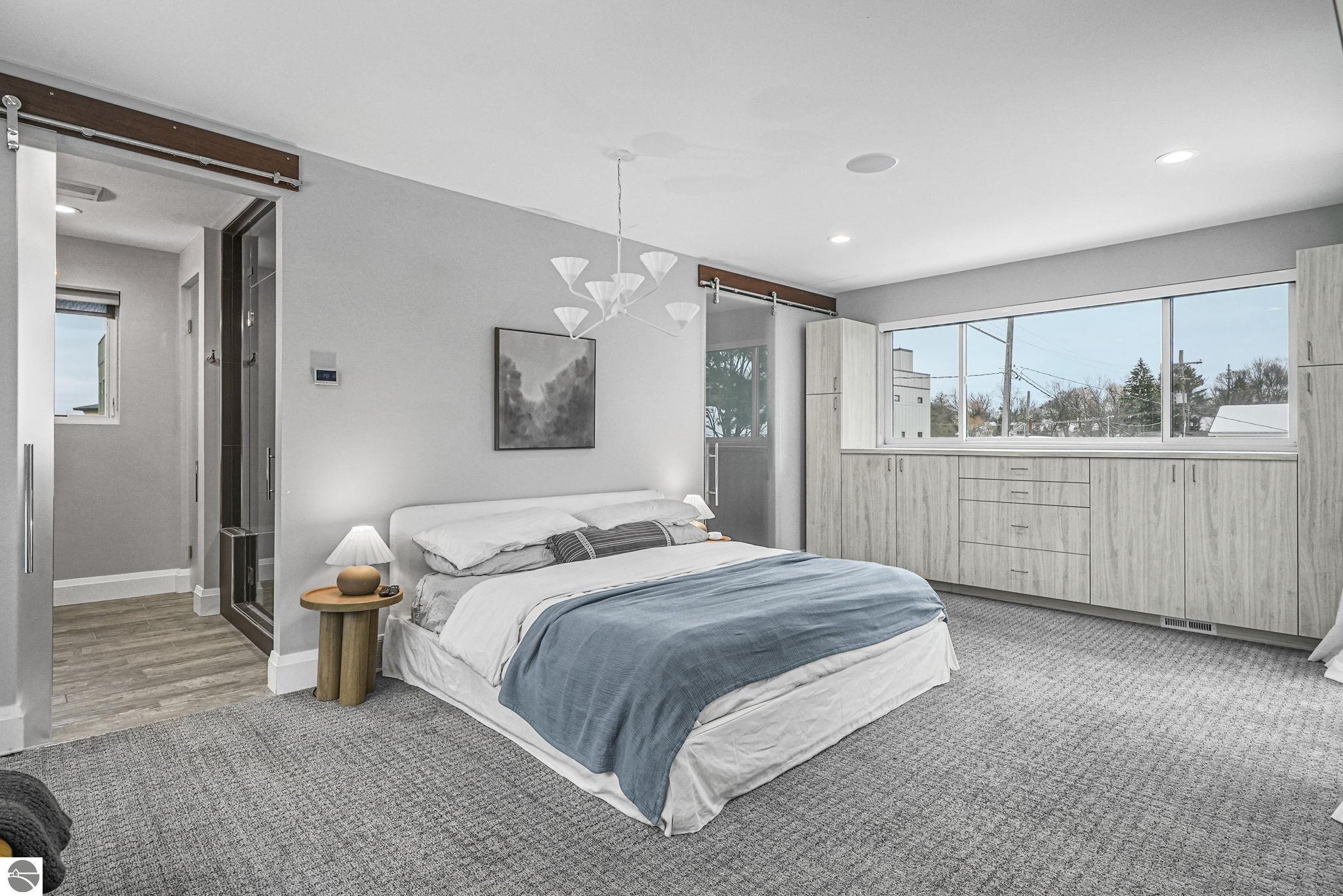 124 North Oak Street - A Premier Contemporary home in Downtown Traverse City. Step into one of Traverse City’s most extraordinary urban residences, perfectly situated on a premier walkable street in the heart of downtown. Meticulously designed and expansive in scale, this contemporary masterpiece offers over 8,000 square feet of refined living space with 8 bedrooms and 10 bathrooms, delivering a home that is as functional as it is striking. Architecturally compelling from façade to interior, the home features a bold blend of brick, warm mid-century wood, and sleek dark contemporary accents. Upon entry, a dramatic double-height living room framed by floor-to-ceiling windows welcomes you, bathing the space in natural light and showcasing thoughtful architectural detailing. Designed for both grand entertaining and comfortable everyday living, the chef-caliber kitchen boasts premium stainless-steel appliances, expansive center island, granite counters, and a walk-in Butler’s pantry. Elegant flow continues through the formal dining room with its dedicated wine chiller, multiple balconies, and generous social spaces on every level. Additional highlights include: A third-floor bar area with a fully equipped secondary kitchen — ideal for entertaining while taking in the expansive rooftop terrace with dramatic Bay views, extending living outdoors with striking panoramas, and the overhead garage door that opens to the outside is a showstopper. A lower level thoughtfully appointed with home office, fitness gym, and theatre / screening room with concessions bar — perfect for family down time. A private enclosed courtyard that serves as a serene space to host dinner parties or simply relax and unwind. This home is walking distance to the best of Traverse City’s dining, retail, arts, and waterfront access, this residence defines downtown luxury living with unrivaled scale, sophistication, and location. Don't miss an opportunity to own one of the premiere downtown homes.