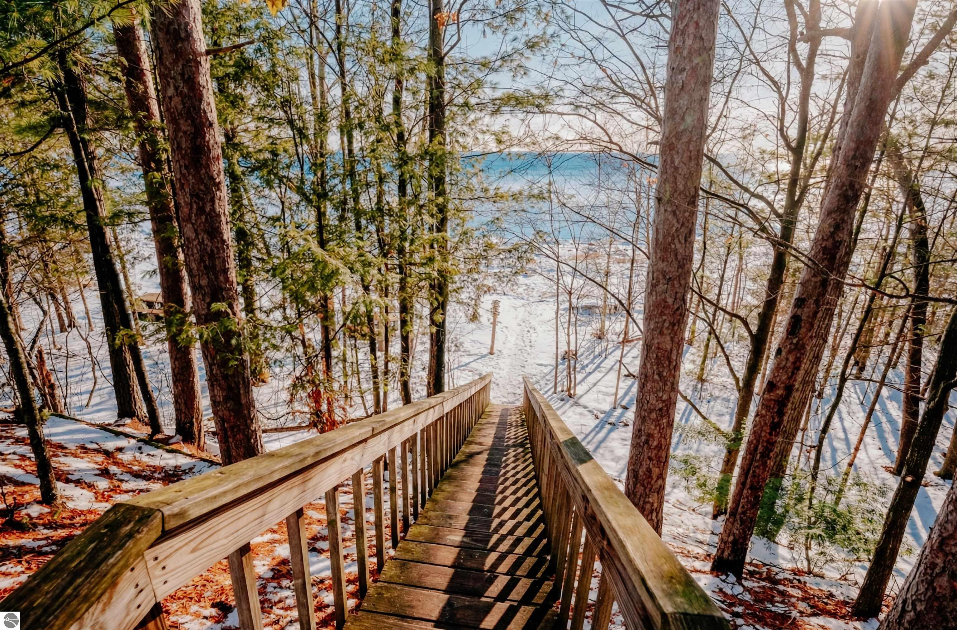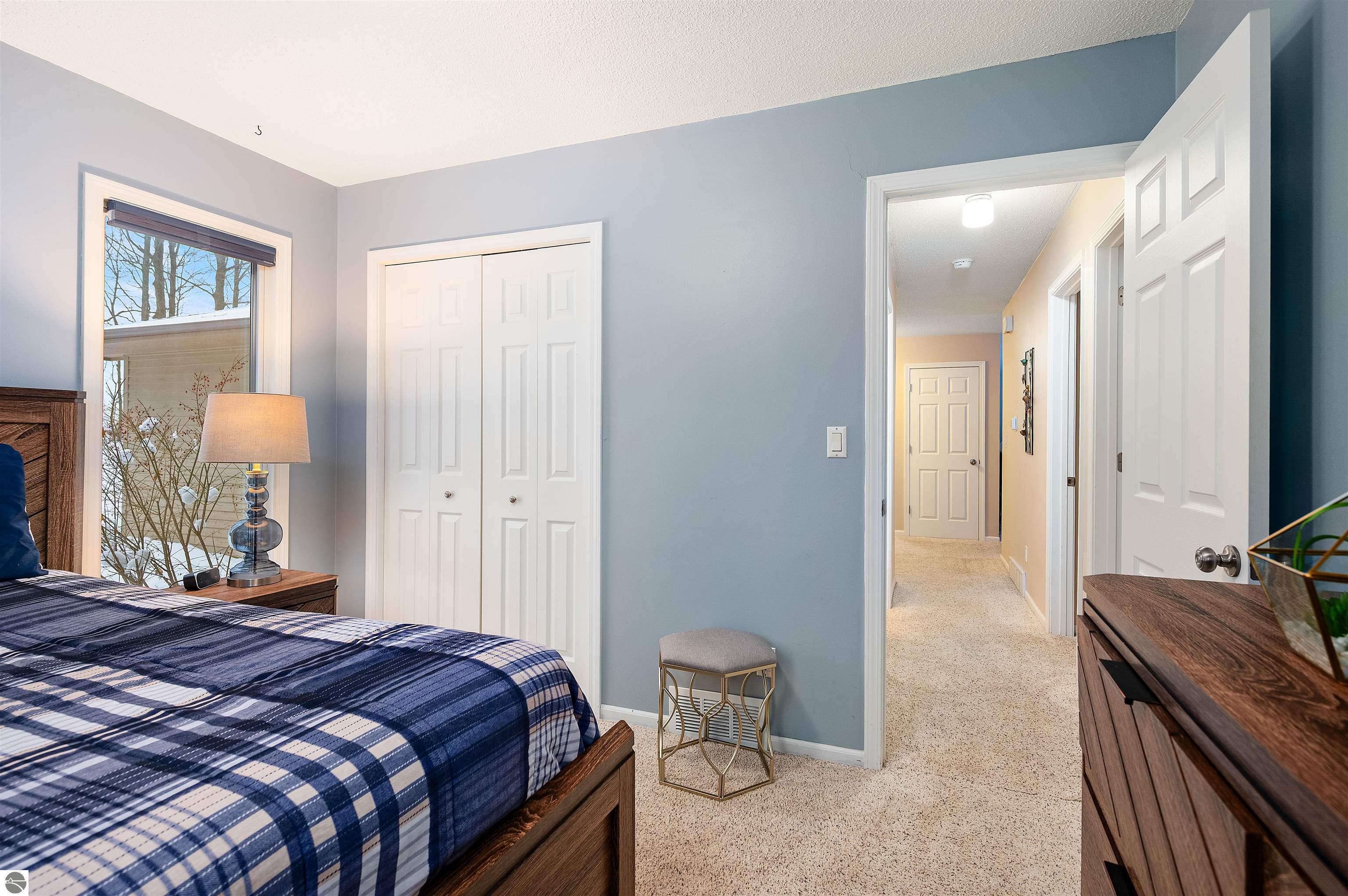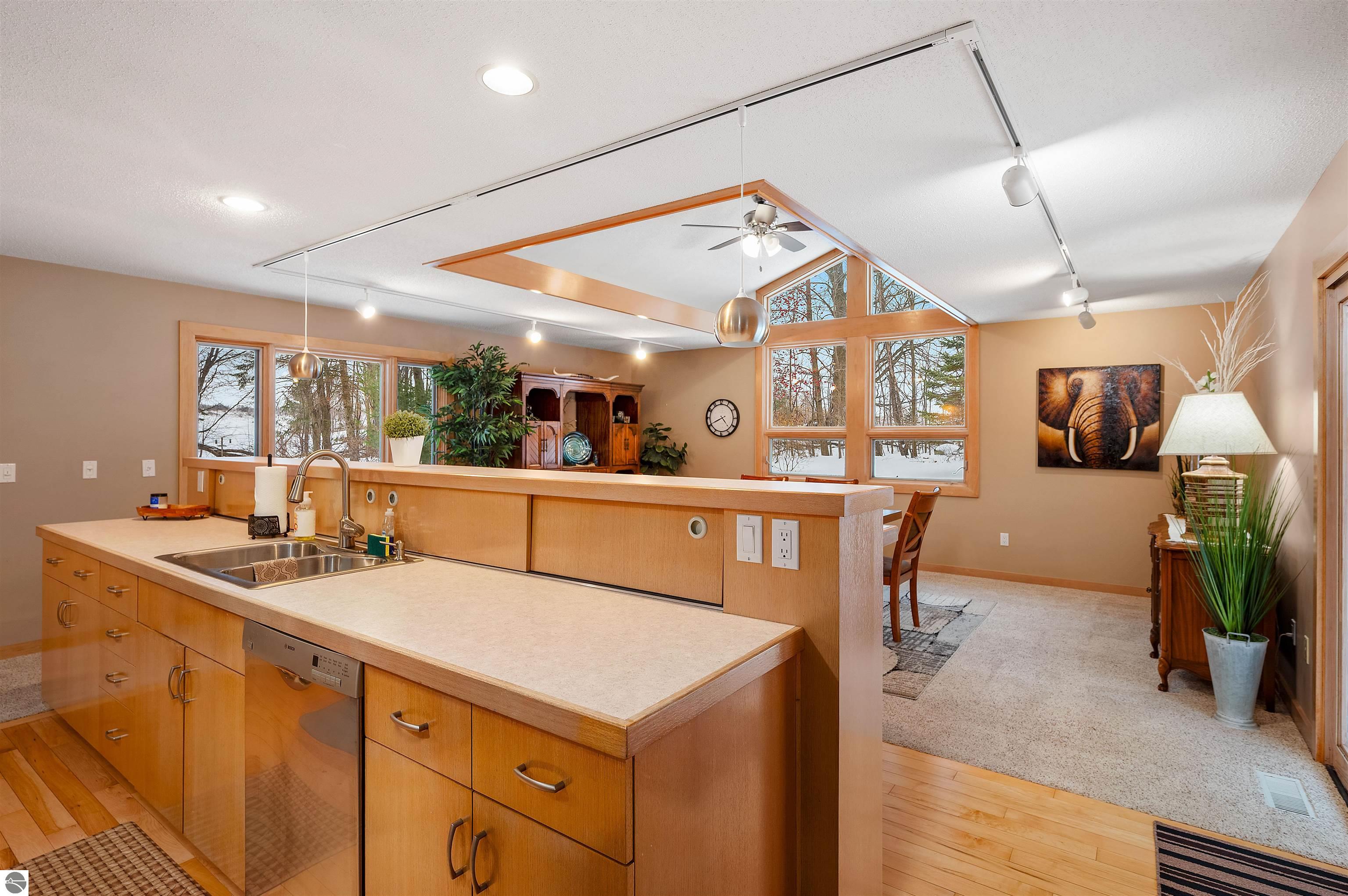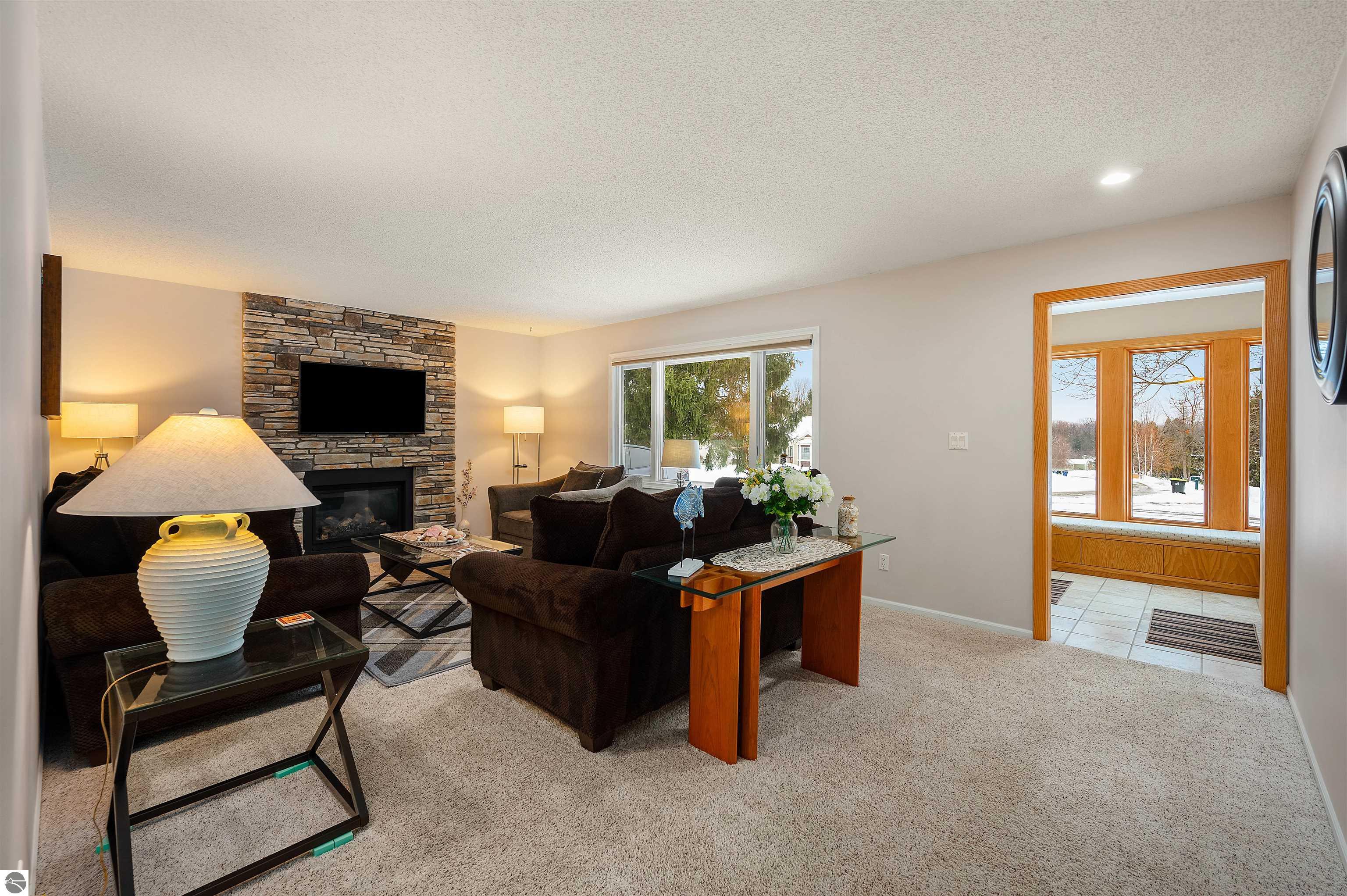Usually, you have to choose between a golf course setting, water access, or a home that is truly move-in ready. Here, you get all three! Located in Peaceful Valley, this home serves as a quiet retreat that is just minutes from the world-class amenities at Grand Traverse Resort and a short drive to everything Traverse City has to offer. The main floor feels expansive and intentionally designed thanks to additions by architect Robert Schwartz. The expanded entry, kitchen, and dining areas maximize natural light and flow, while a stacked stone gas fireplace brings warmth and character to the living room. Glass sliders open to a rear deck and patio that settle into the peaceful backdrop of Lochenheath Golf Course—a serene setting for morning coffee or relaxing by the newly created bonfire area. The lower level has been transformed into a fully functional extension of the home. It features a gym area for workouts and a rec room for unwinding, but the highlight is the spacious fourth bedroom suite. Distinct from the main living quarters and equipped with an ensuite bath, it serves perfectly as a secluded guest haven or a private primary suite. When you want to venture out, you have 88 feet of shared sandy frontage on East Bay just a short walk away. For more adventure, the VASA trail system is nearby for year-round recreation. This home is being sold fully furnished, making it the complete package in Williamsburg—just move in and enjoy!