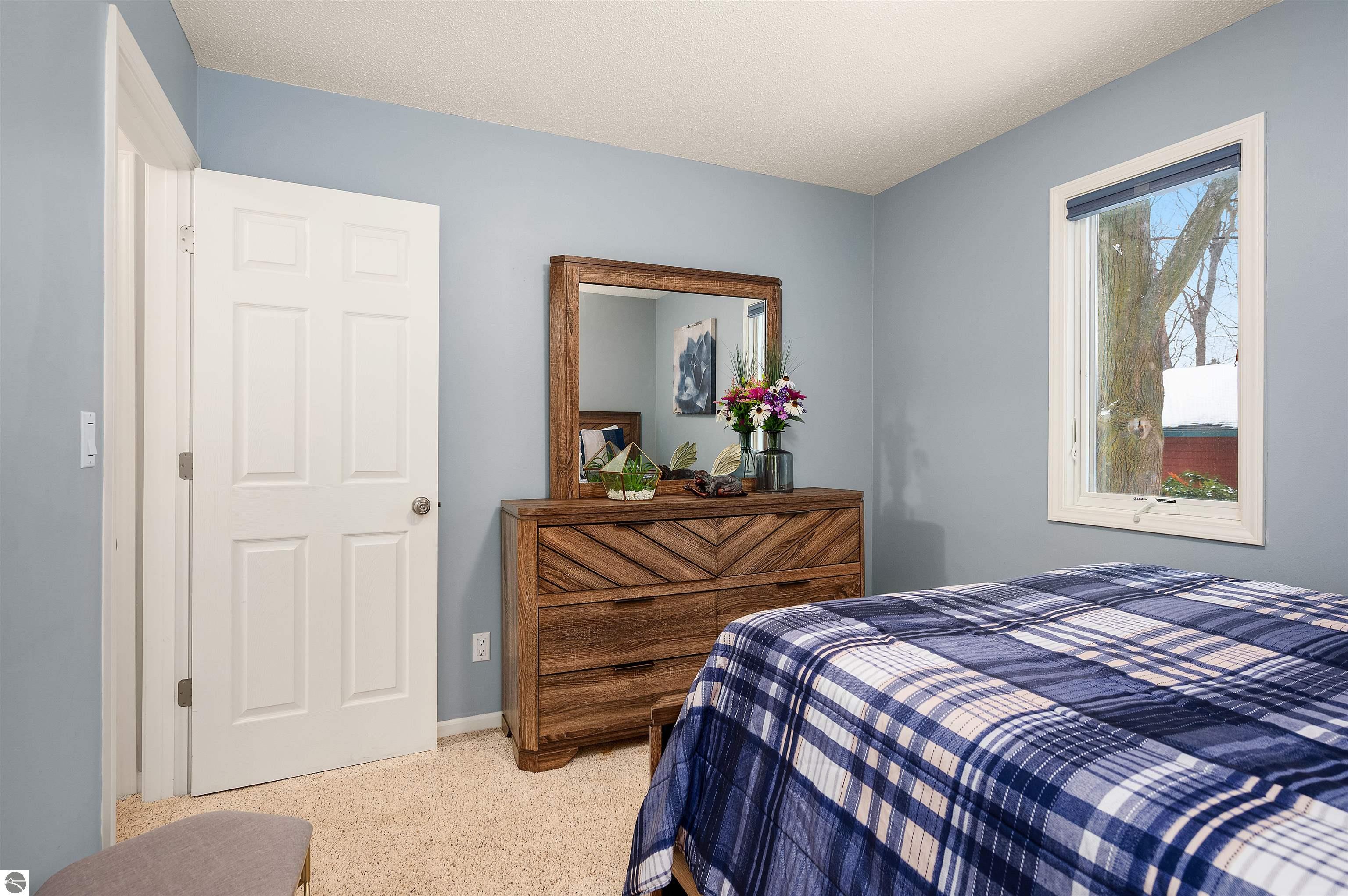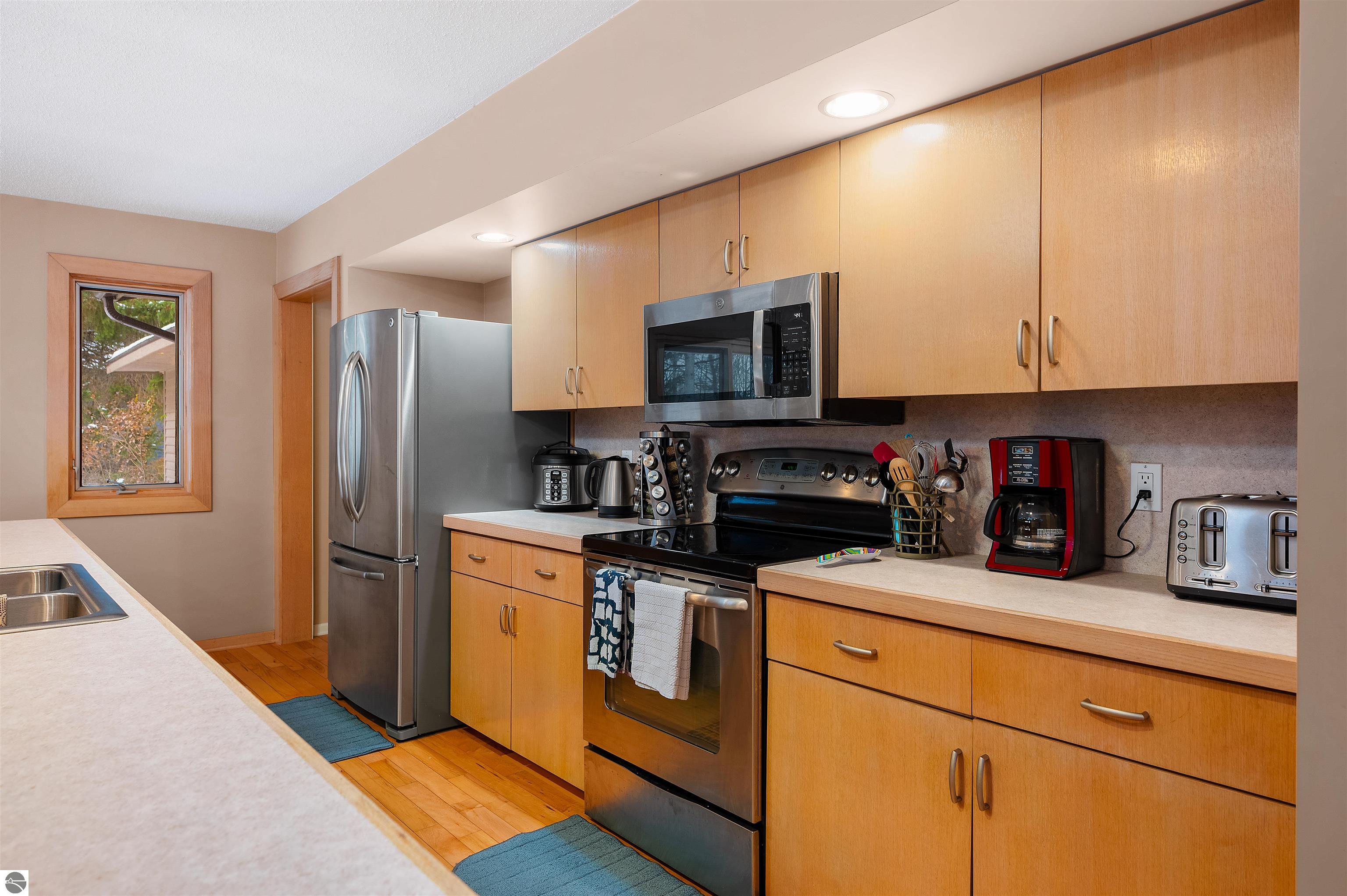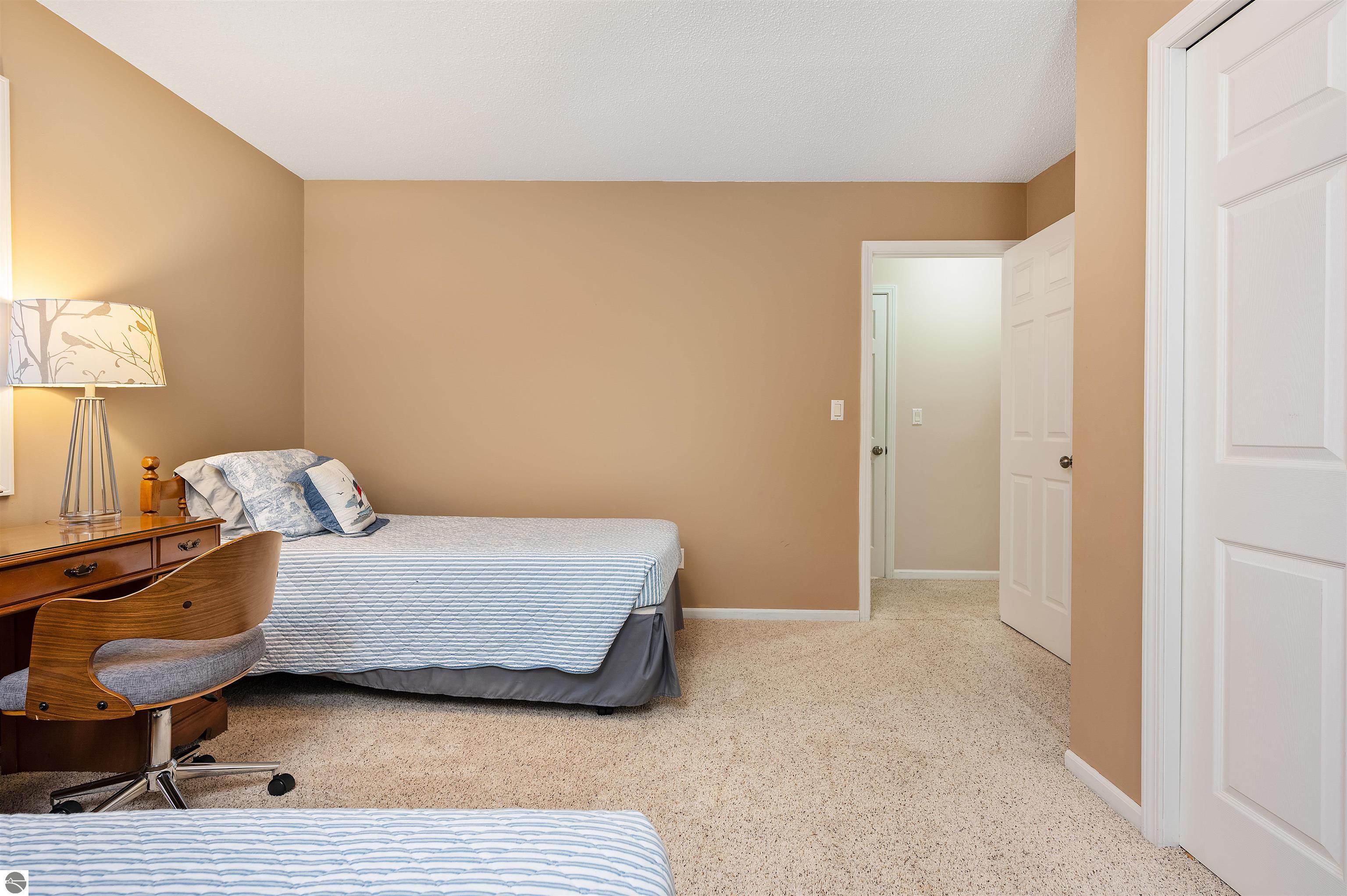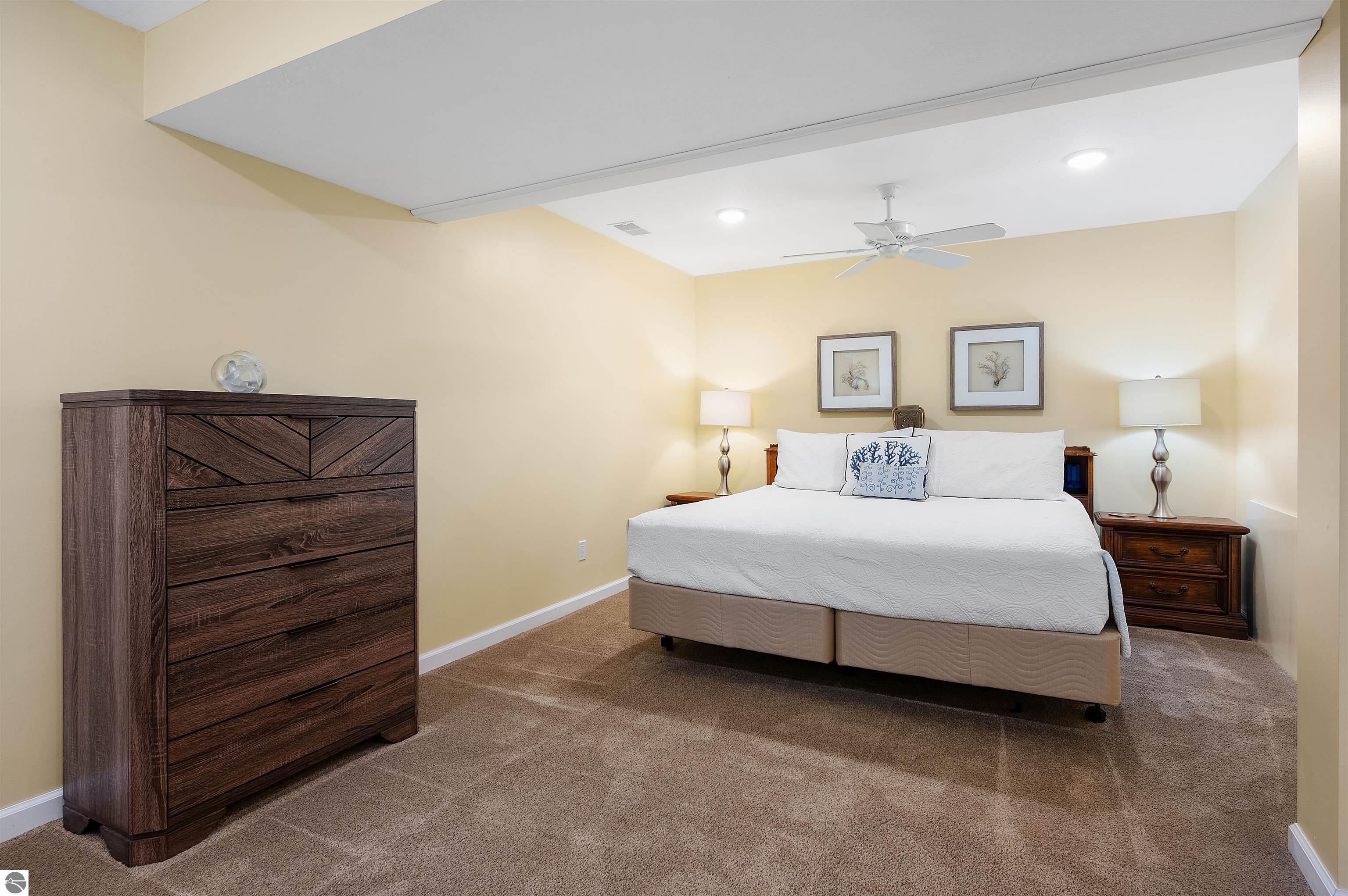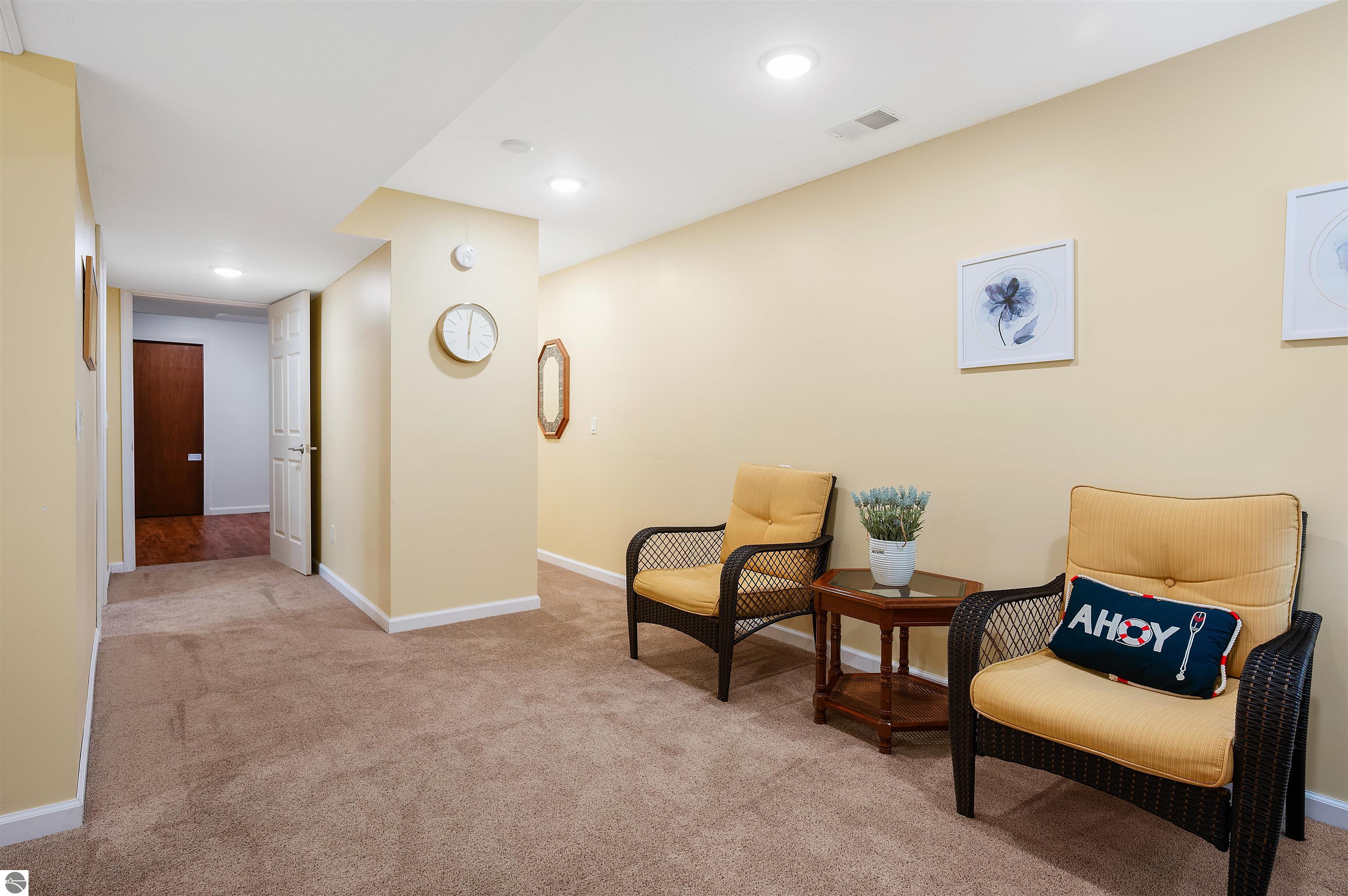 Usually, you have to choose between a golf course setting, water access, or a home that is truly move-in ready. Here, you get all three! Located in Peaceful Valley, this home serves as a quiet retreat that is just minutes from the world-class amenities at Grand Traverse Resort and a short drive to everything Traverse City has to offer. The main floor feels expansive and intentionally designed thanks to additions by architect Robert Schwartz. The expanded entry, kitchen, and dining areas maximize natural light and flow, while a stacked stone gas fireplace brings warmth and character to the living room. Glass sliders open to a rear deck and patio that settle into the peaceful backdrop of Lochenheath Golf Course—a serene setting for morning coffee or relaxing by the newly created bonfire area. The lower level has been transformed into a fully functional extension of the home. It features a gym area for workouts and a rec room for unwinding, but the highlight is the spacious fourth bedroom suite. Distinct from the main living quarters and equipped with an ensuite bath, it serves perfectly as a secluded guest haven or a private primary suite. When you want to venture out, you have 88 feet of shared sandy frontage on East Bay just a short walk away. For more adventure, the VASA trail system is nearby for year-round recreation. This home is being sold fully furnished, making it the complete package in Williamsburg—just move in and enjoy!