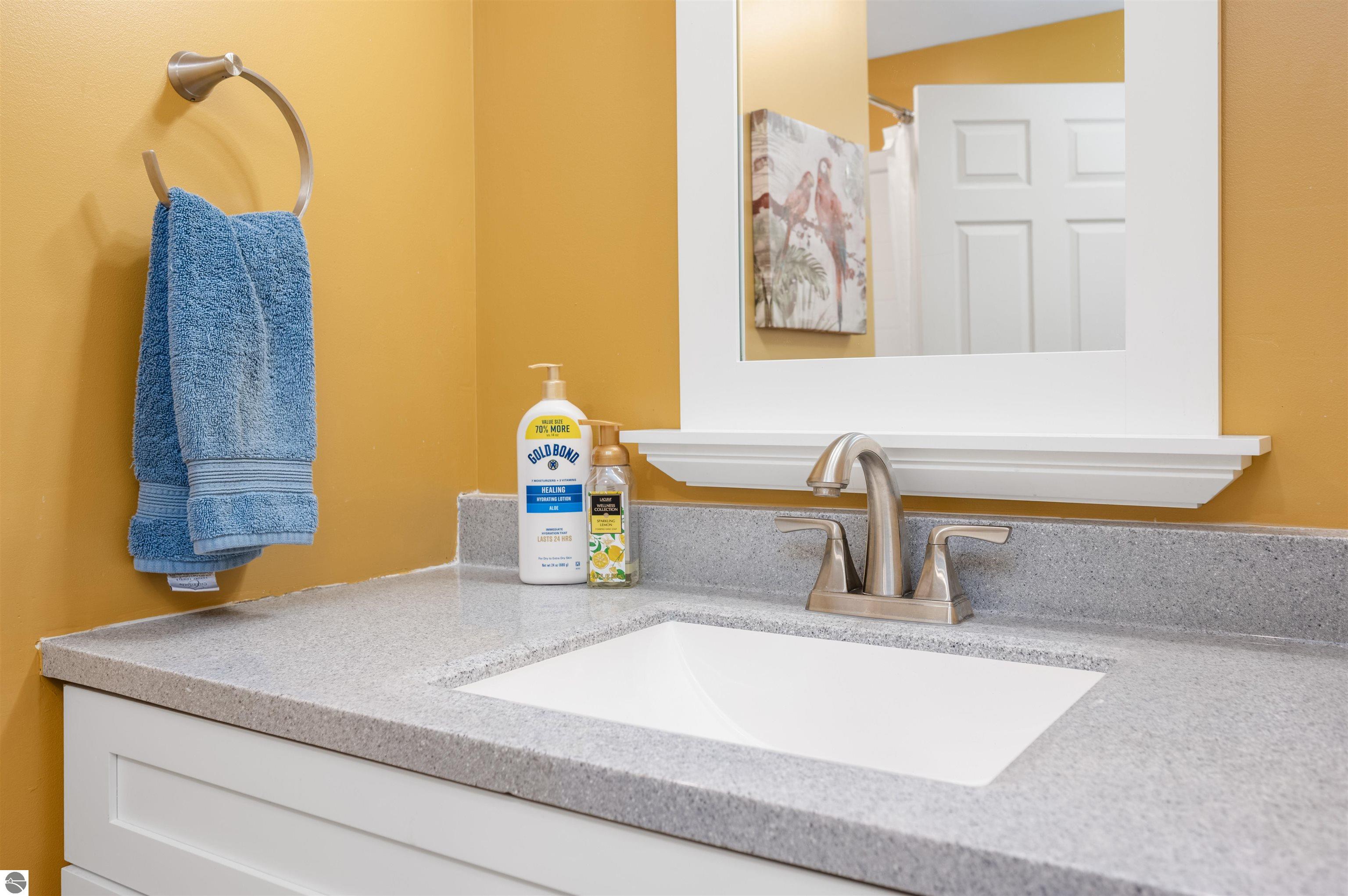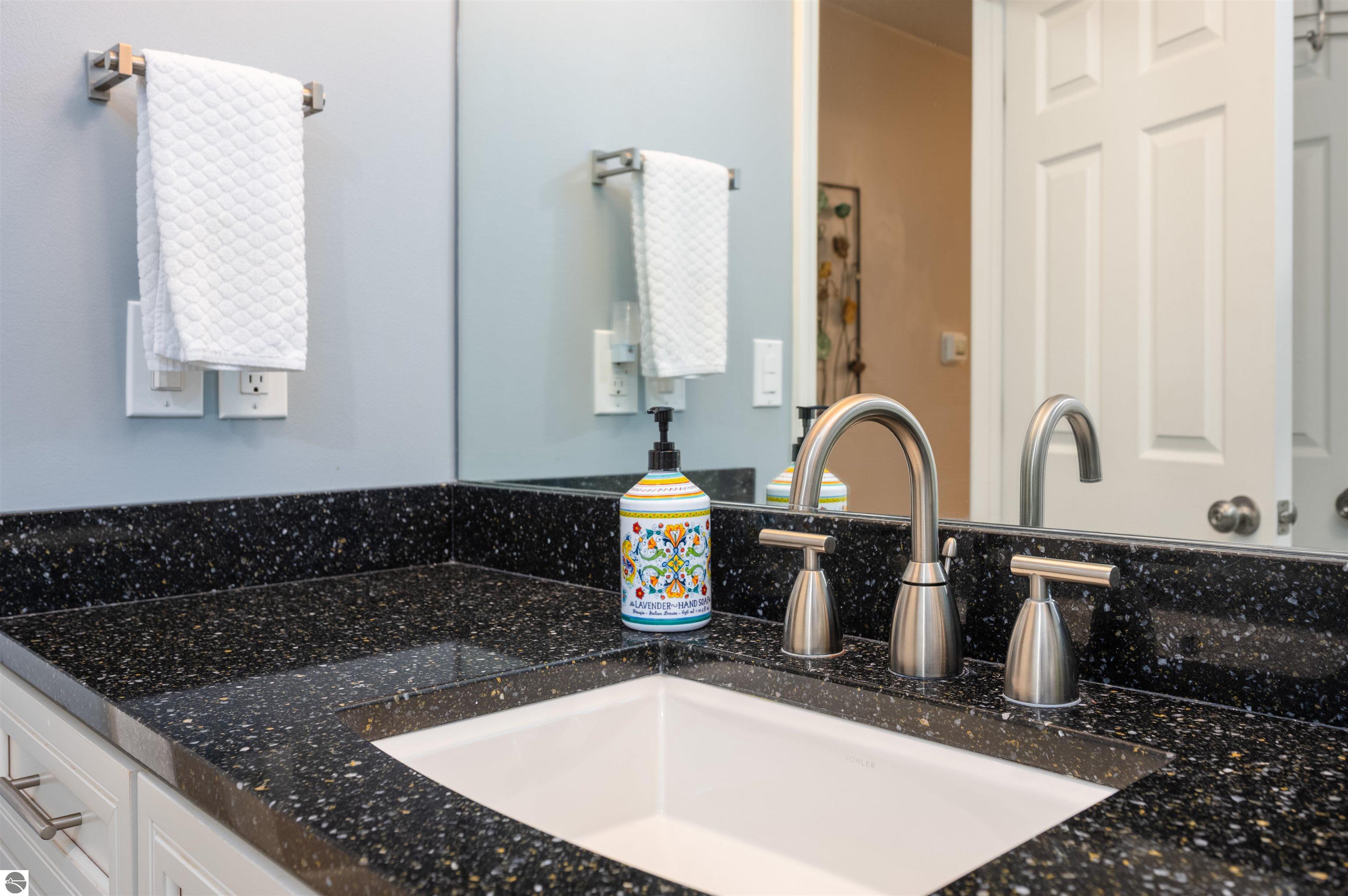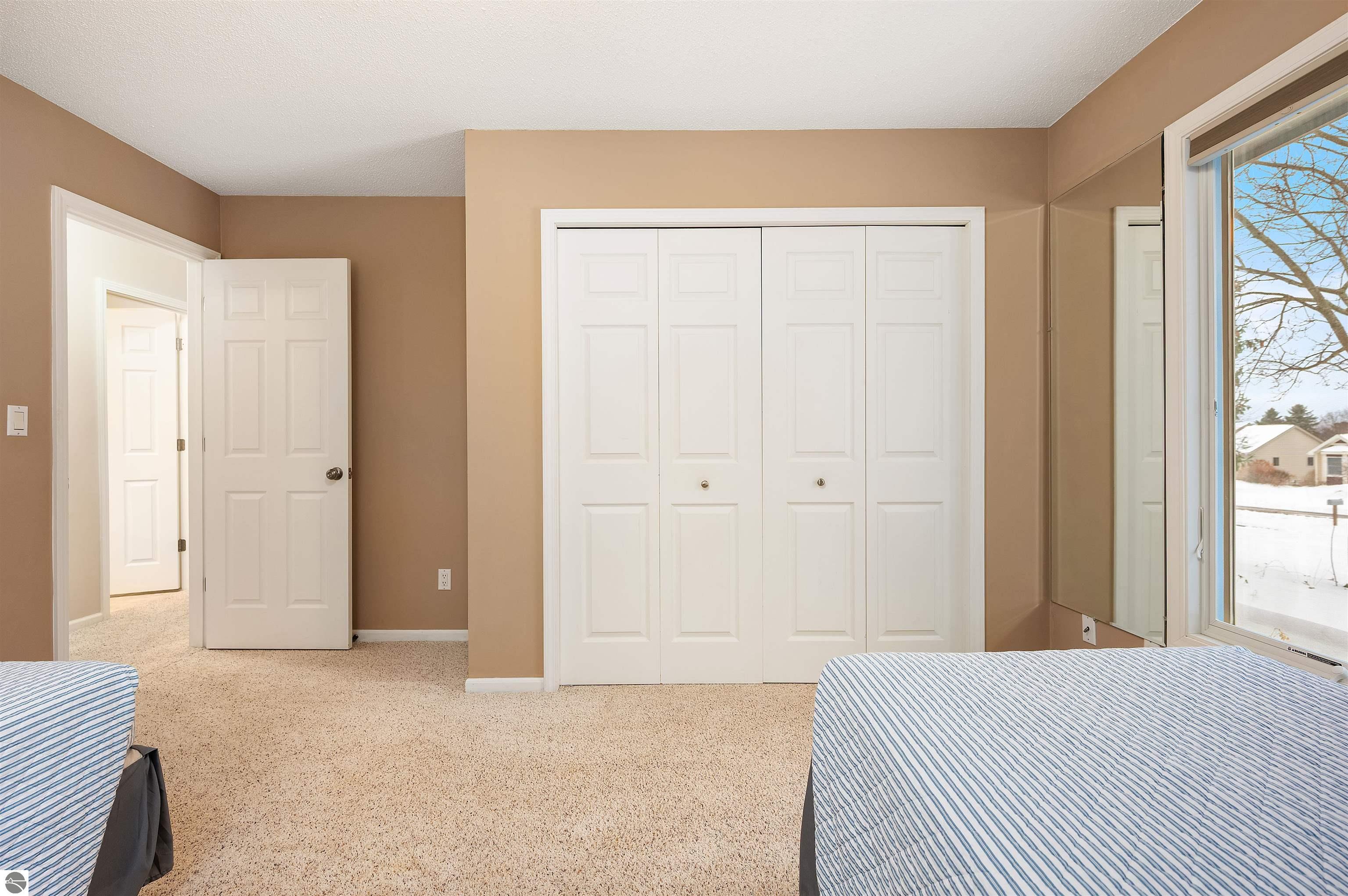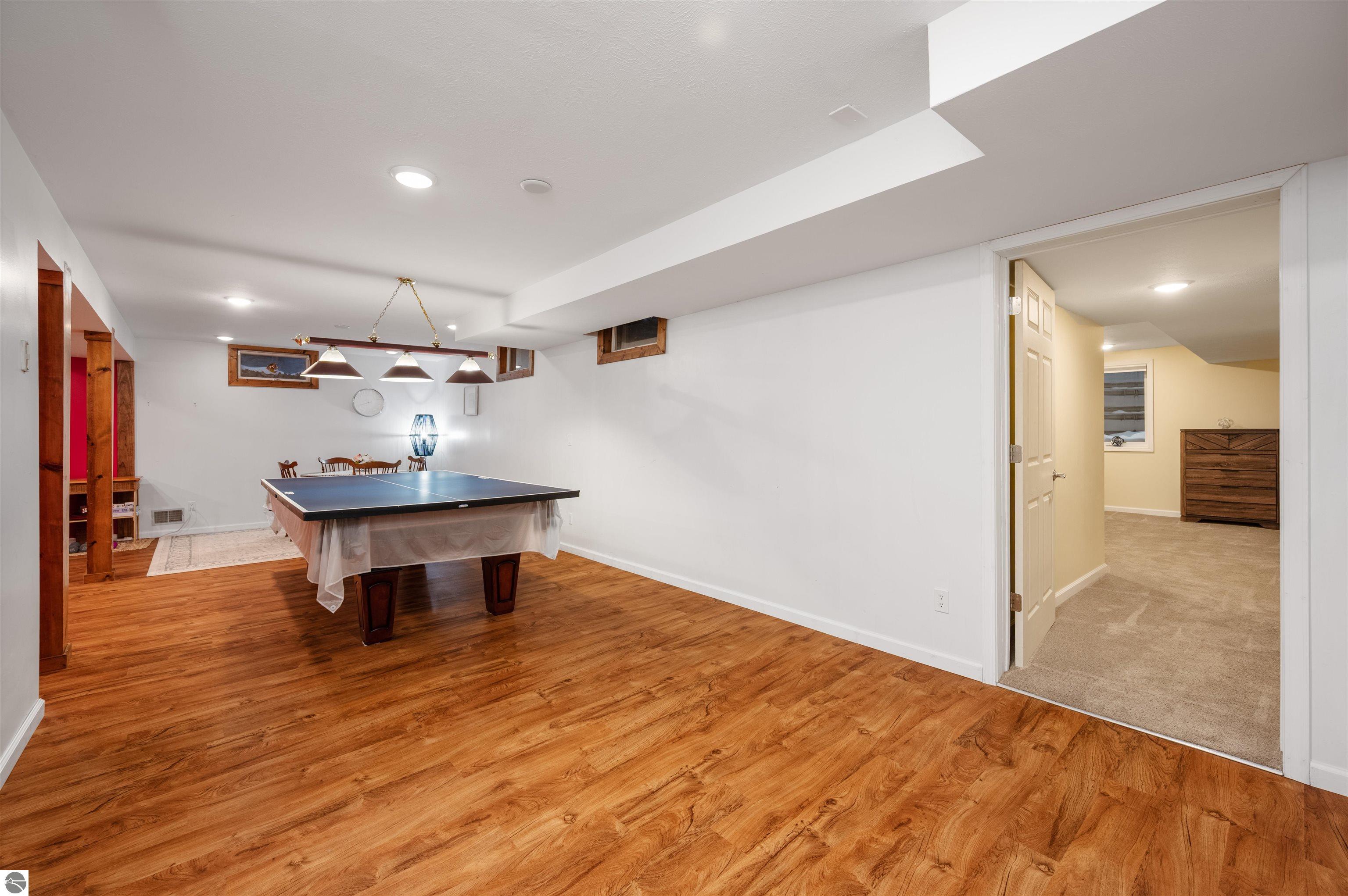 Usually, you have to choose between a golf course setting, water access, or a home that is truly move-in ready. Here, you get all three! Located in Peaceful Valley, this home serves as a quiet retreat that is just minutes from the world-class amenities at Grand Traverse Resort and a short drive to everything Traverse City has to offer. The main floor feels expansive and intentionally designed thanks to additions by architect Robert Schwartz. The expanded entry, kitchen, and dining areas maximize natural light and flow, while a stacked stone gas fireplace brings warmth and character to the living room. Glass sliders open to a rear deck and patio that settle into the peaceful backdrop of Lochenheath Golf Course—a serene setting for morning coffee or relaxing by the newly created bonfire area. The lower level has been transformed into a fully functional extension of the home. It features a gym area for workouts and a rec room for unwinding, but the highlight is the spacious fourth bedroom suite. Distinct from the main living quarters and equipped with an ensuite bath, it serves perfectly as a secluded guest haven or a private primary suite. When you want to venture out, you have 88 feet of shared sandy frontage on East Bay just a short walk away. For more adventure, the VASA trail system is nearby for year-round recreation. This home is being sold fully furnished, making it the complete package in Williamsburg—just move in and enjoy!