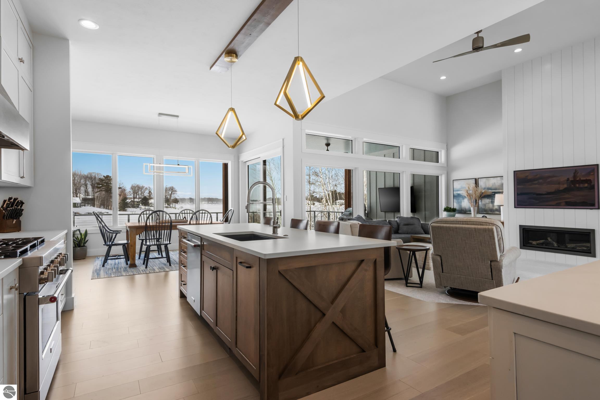 Set on 1.47 acres with 162 feet of private Silver Lake frontage, this Traverse City lake home delivers that rare combo of a true waterfront setting and an easy hop into downtown TC for dinner, shopping, and year-round fun. The large lakefront lawn is the kind of space you actually use, perfect for summer games, big gatherings, and evening bonfires by the water. Silver Lake locals are proud of their little piece of paradise. It is a beautiful 600-acre lake known for wildlife, gorgeous sunsets, and clear, inviting water, with an active preservation association that helps keep it that way. You will also love the way the shoreline breaks up into islands, coves, and inlets, offering plenty to explore for fishing, paddling, and relaxed cruising. Inside, the layout is built for everyday comfort and easy hosting, anchored by an award-winning kitchen recognized as the 2023 Parade of Homes Best Kitchen, plus engineered white oak floors and a bright, open main level that keeps the lake in view. The primary suite and laundry are on the main floor, and the finished walkout lower level adds extra bedrooms and a large living area for guests or game days. When you want the home to work with you, it does. Control4 allows you to adjust lighting, audio, TVs, and more from an easy-to-use app—whether you’re home or away. With whole-home audio and a theater setup, everything feels seamless and dialed in without ever feeling complicated. This is the kind of home that makes weekdays feel like weekends. Take your boat out after work, catch sunset from the deck, then be downtown in minutes for a late dinner or a quick stroll through your favorite spots. It is waterfront living with Traverse City right there when you want it.