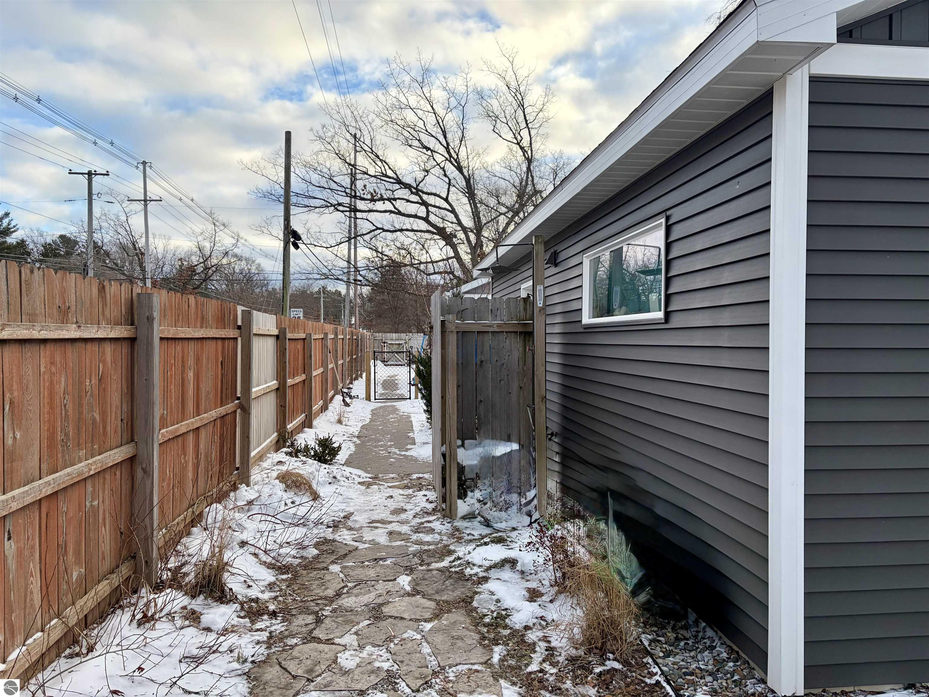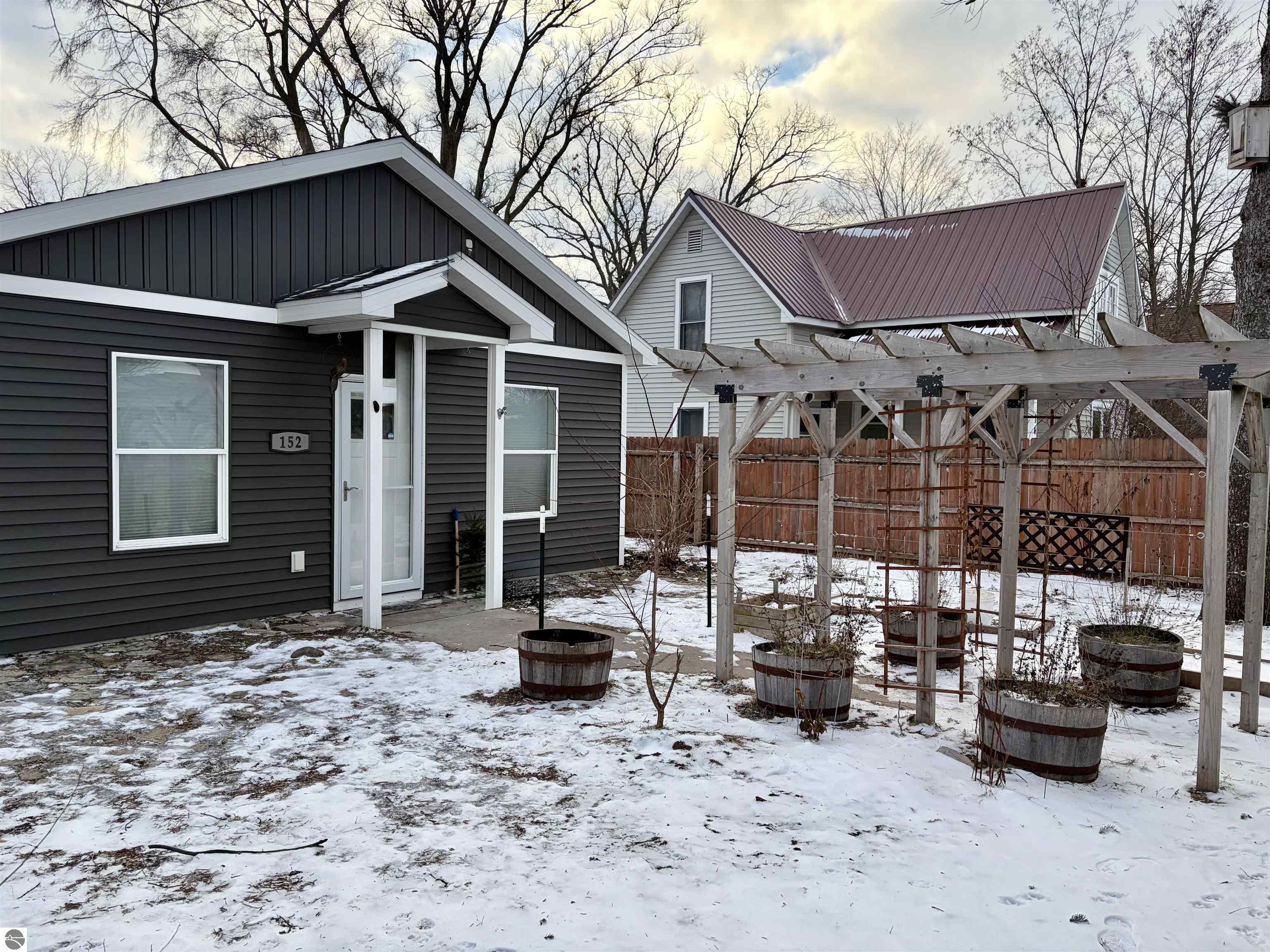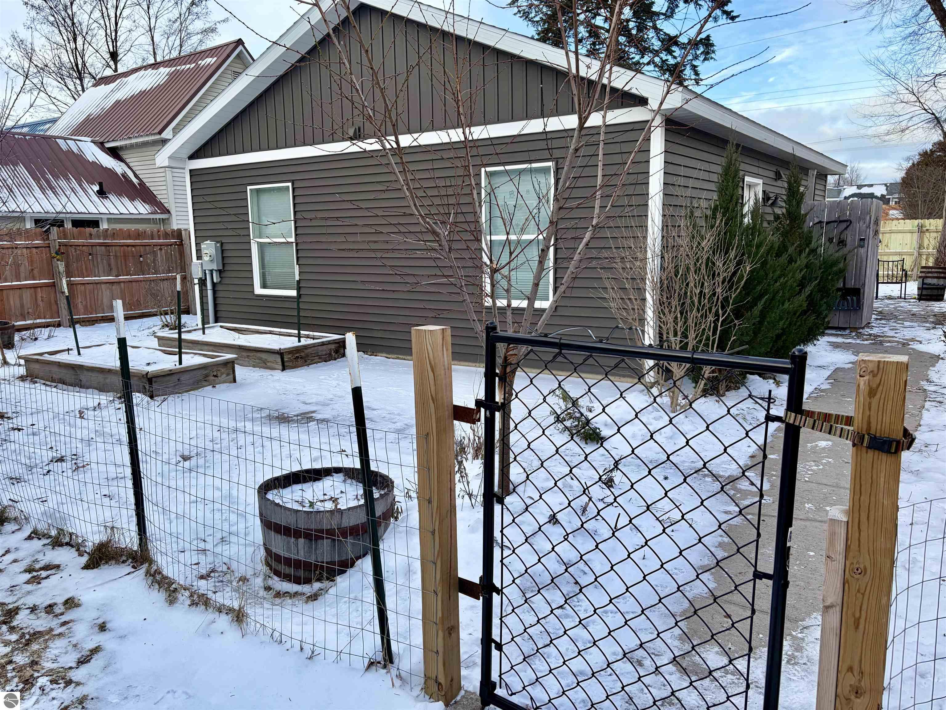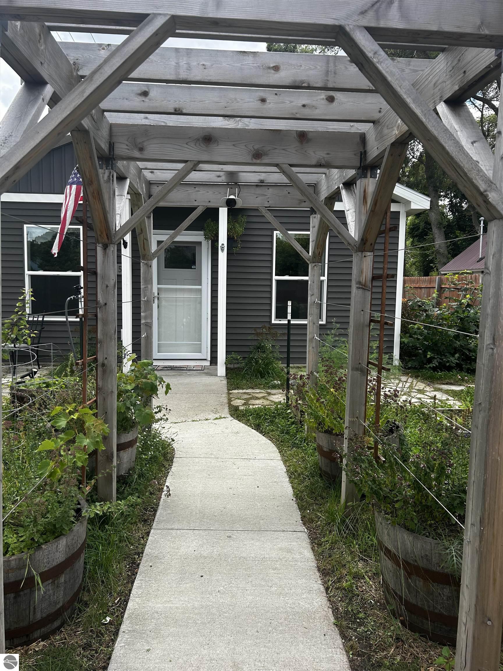 Discover downtown Traverse City living at its best! This charming 2-bed, 1-bath residence features an open floor plan with modern touches and direct access to a private outdoor oasis — perfect for entertaining or relaxing. Enjoy beautifully landscaped edible gardens including berries, fruit trees, and herbs, plus multiple patio areas, firepit, and a fenced-in yard offering peaceful privacy right in the heart of the city. With two dedicated parking spaces, storage shed, and thoughtful outdoor amenities like an outdoor shower and sustainable living features, this home blends comfort and functionality. Ideally located within walking/biking distance of Boardman Lake, Grand Traverse Bay, local parks, restaurants, shops, and top schools, this property offers the perfect balance of urban convenience and tranquil outdoor space. The HOA owns the property in common which includes the fence and circulation paths that provide access within the property.
