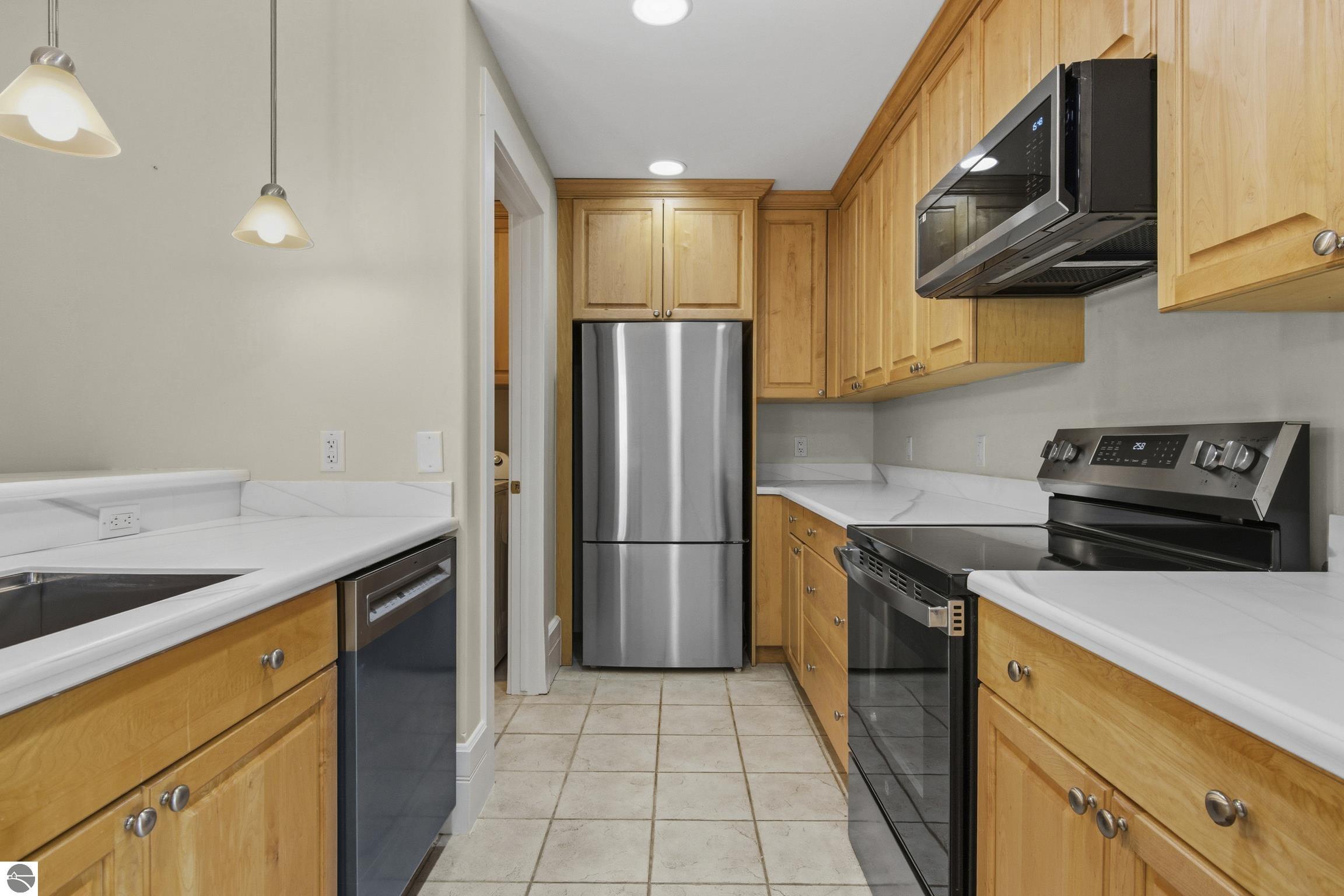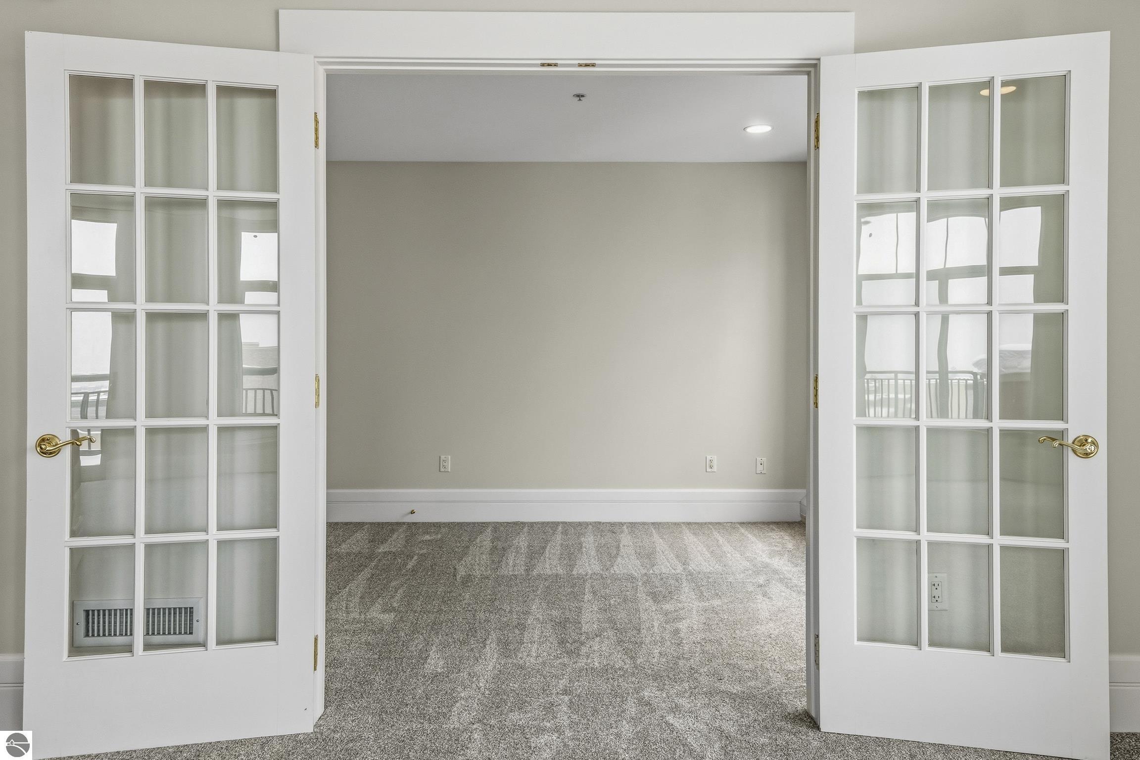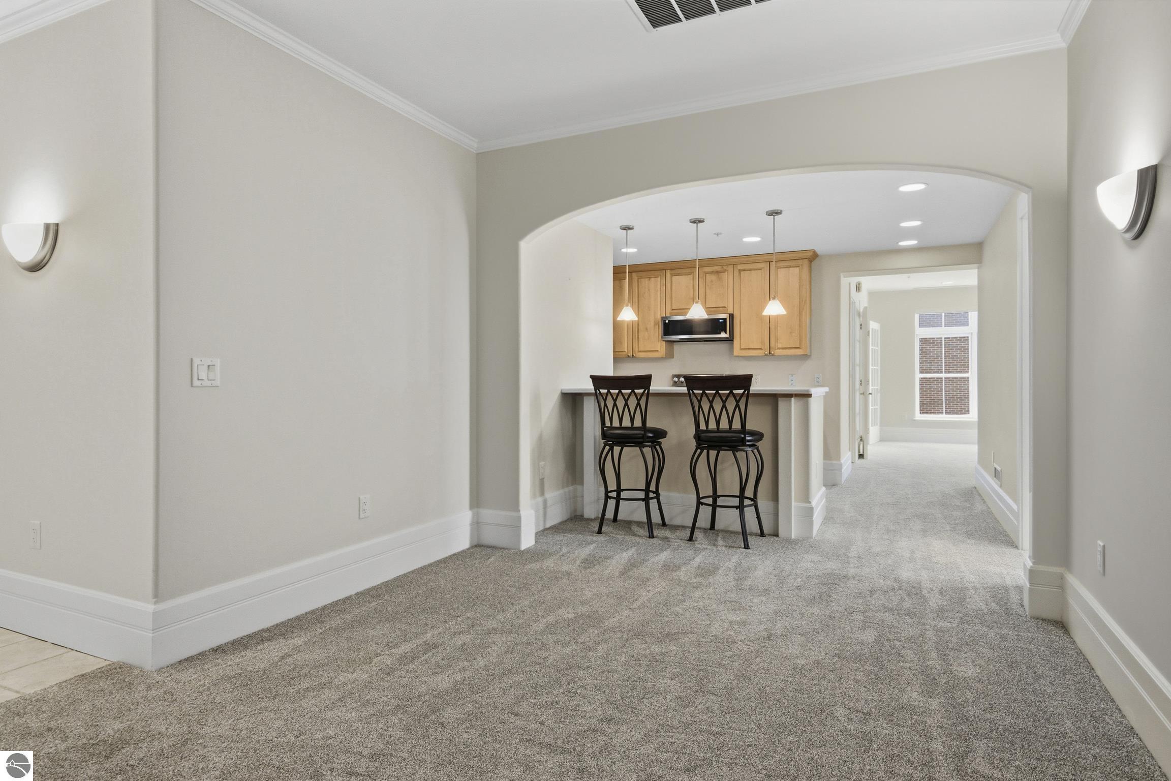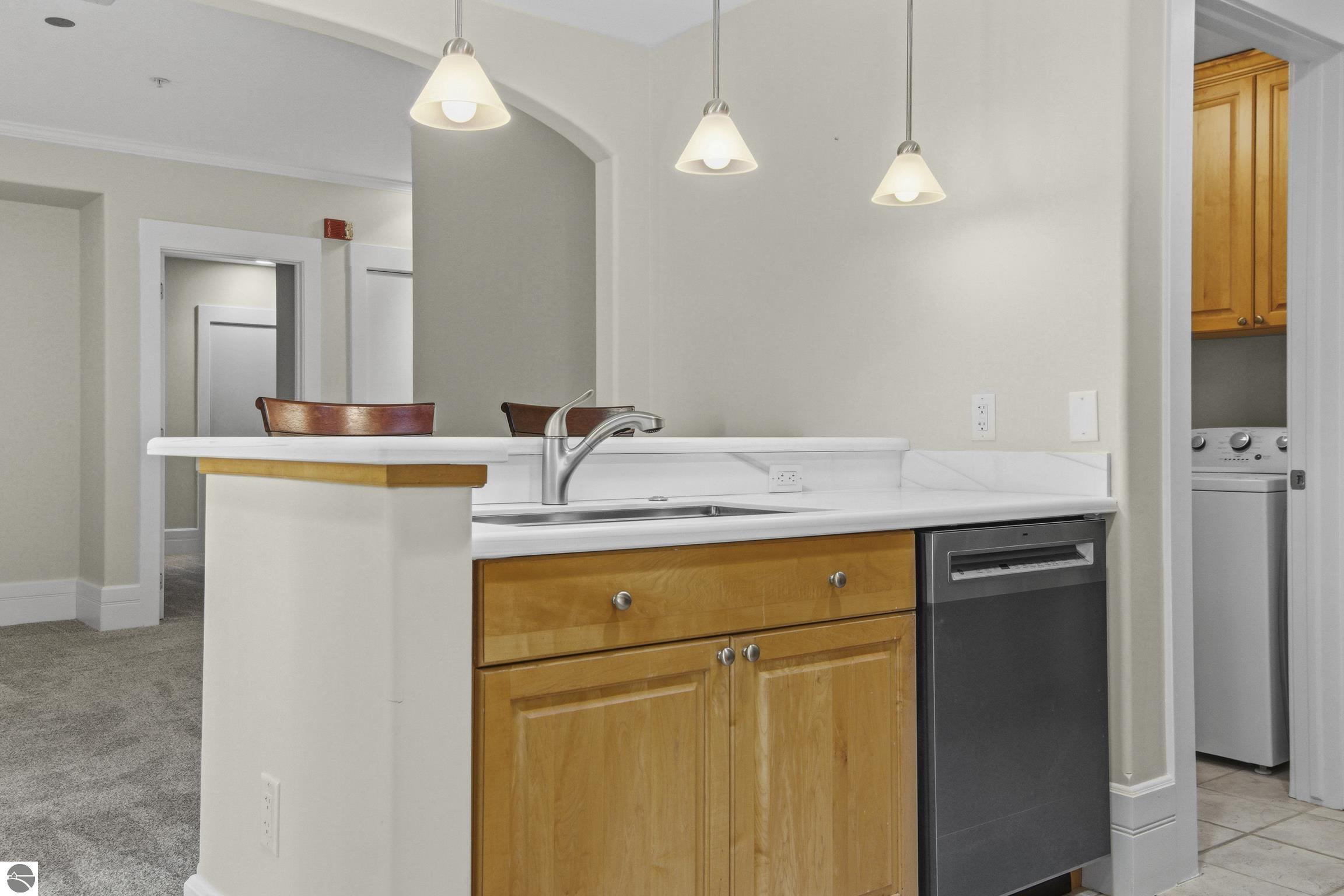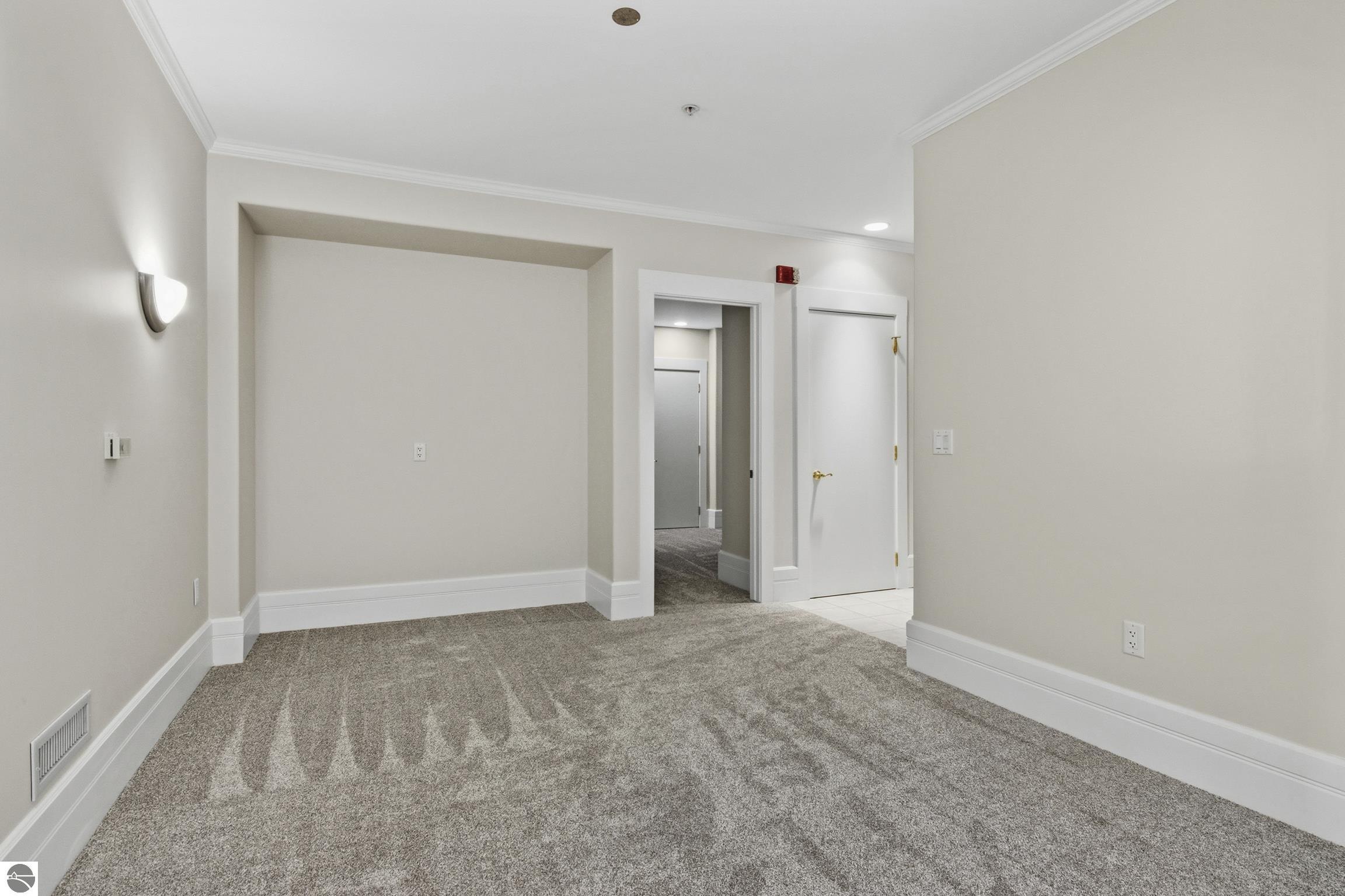 Take advantage of condo living at its very best, plus a fantastic location in the heart of downtown Traverse City. This 4th floor unit offers wonderful views of Grand Traverse Bay, the Boardman River and downtown Traverse City, the private balcony runs the length of the unit for maximum enjoyment of the outdoor space. This end unit has gorgeous natural light streaming in. The spacious living room has a gas burning fireplace and amazing views. The primary suite also takes full advantage of the view and has a private bath and walk in closet. Kitchen has new easy care counter tops and stainless steel appliances with a very efficient use of space and casual counter dining. Additional office and guest room both have their own bathrooms. The association also has a waterside community patio area, secure underground parking with elevator to unit. Association dues cover, basic cable, water, gas, heat/cooling, trash/recycling, snow removal, parking area maintenance and window cleaning.