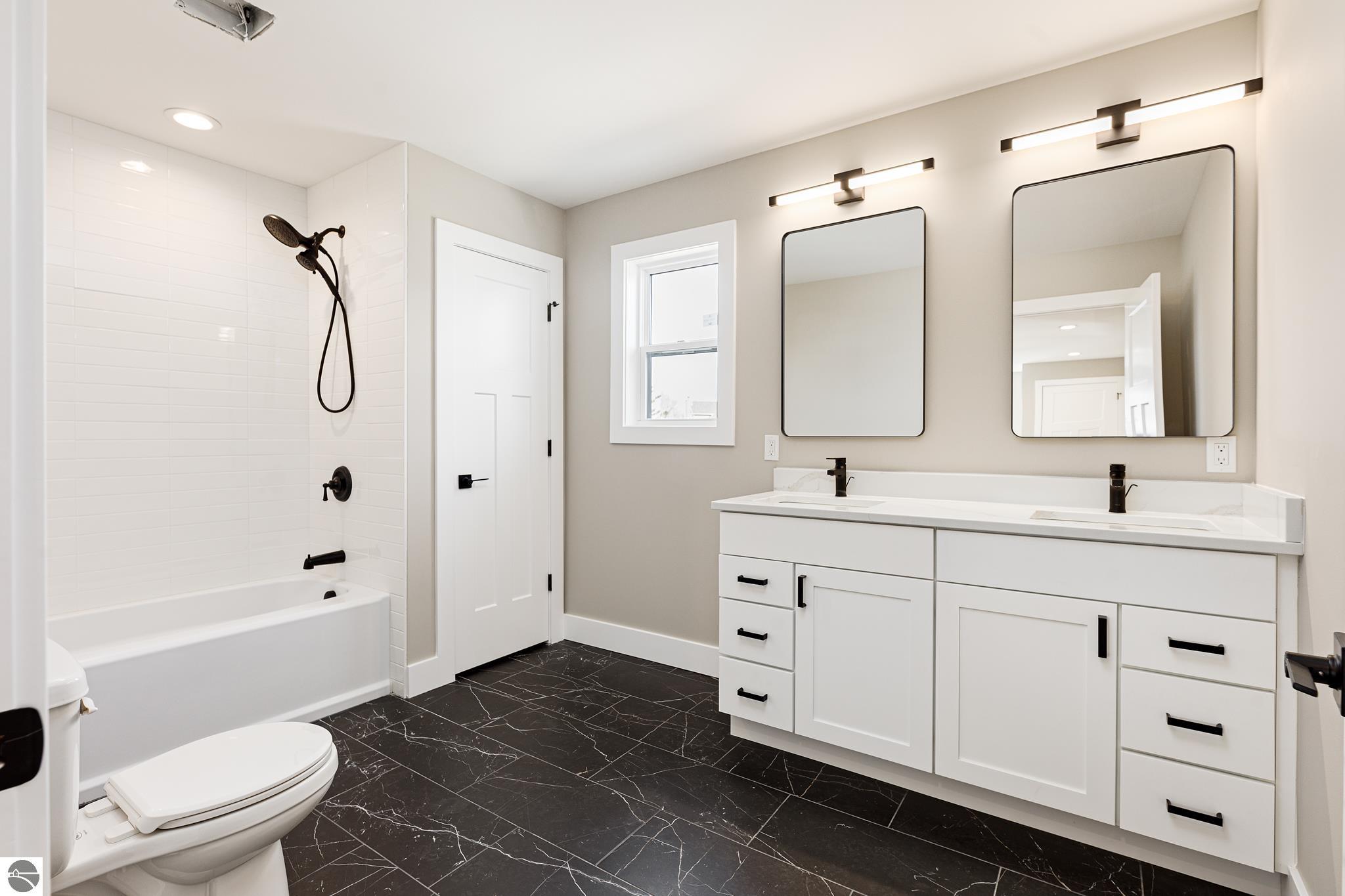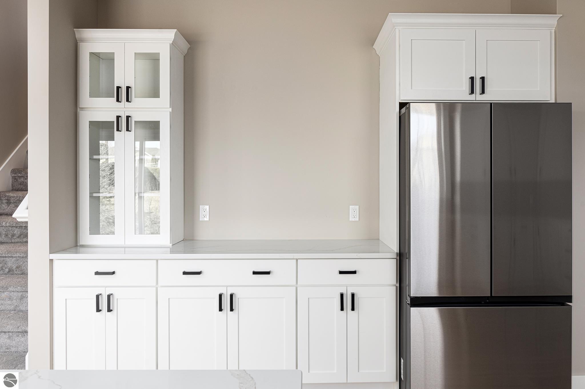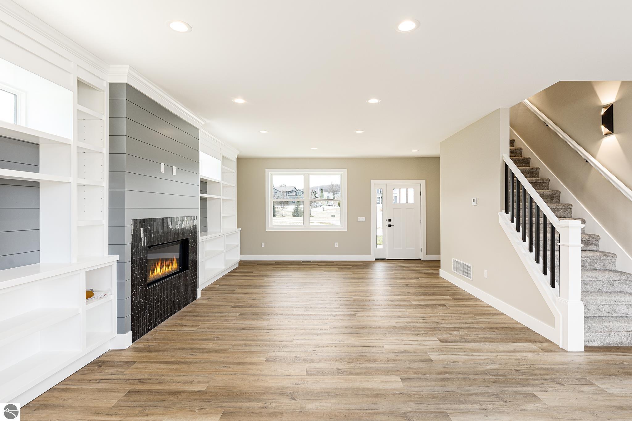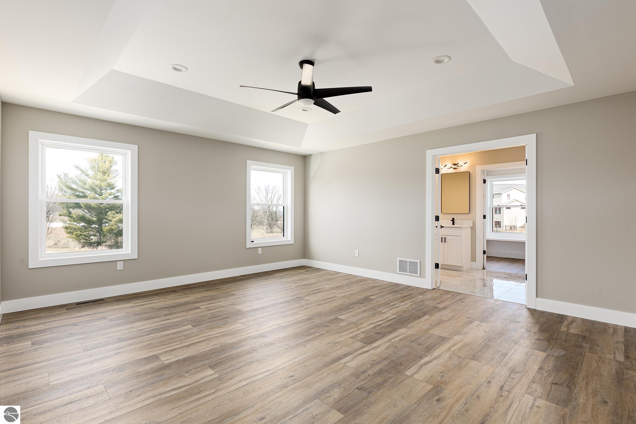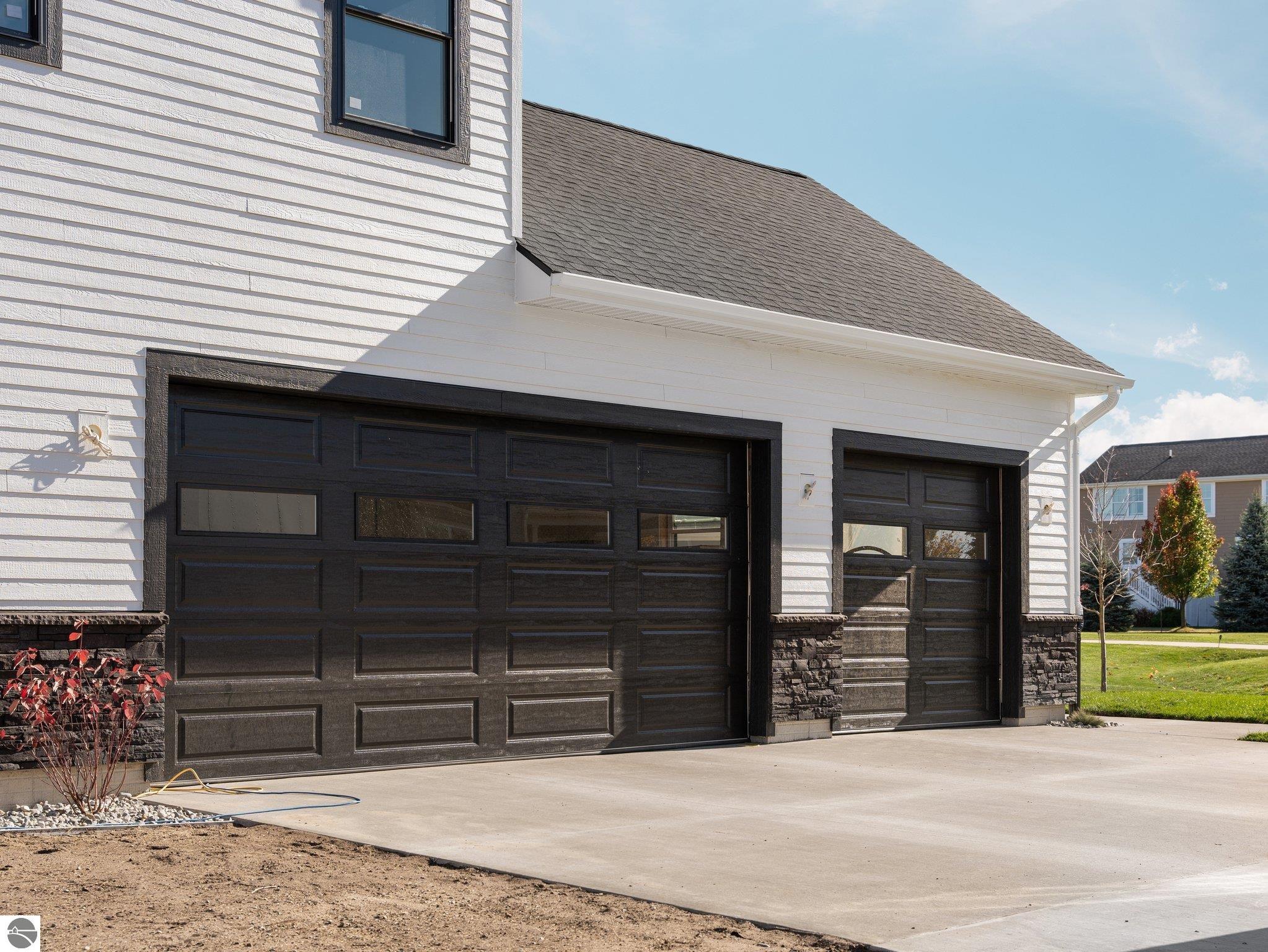 Tucked at the end of a quiet cul-de-sac in Verndale Estates, 872 Vienna Way delivers clean lines and livable design. Completed in 2025, its crisp white façade, bold black detailing, and three-car garage make a striking first impression. The generous lot opens to rolling hill views that glow with autumn color, offering privacy while still feeling connected to the neighborhood. Inside, natural light anchors an open layout that links the kitchen, dining, and living areas—easy for everyday life and effortless for entertaining. The kitchen stands out with sleek cabinetry, durable countertops, stylish flooring, and a full suite of included, state-of-the-art appliances. Well-placed windows frame the landscape and keep the main level bright from morning to evening. All-tile bathrooms bring a refined, timeless look with clean fixtures and spa-like simplicity. Bedrooms are comfortably scaled; the private primary suite adds a calm retreat with an elegant en-suite bath. Step outside to a professionally designed patio that extends your living space. The deep backyard invites gardens, play, or future amenities—bring your vision. Minutes to downtown Traverse City, nearby schools, golf, and waterfront recreation, this address pairs modern style with day-to-day convenience. A member of the selling LLC is a licensed real estate agent in the state of Michigan.