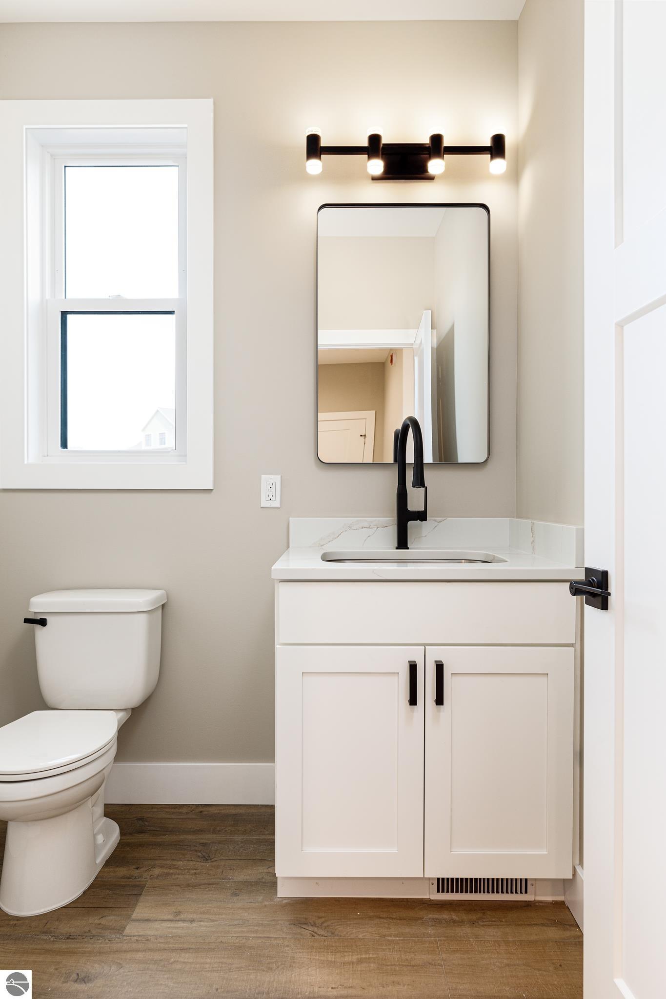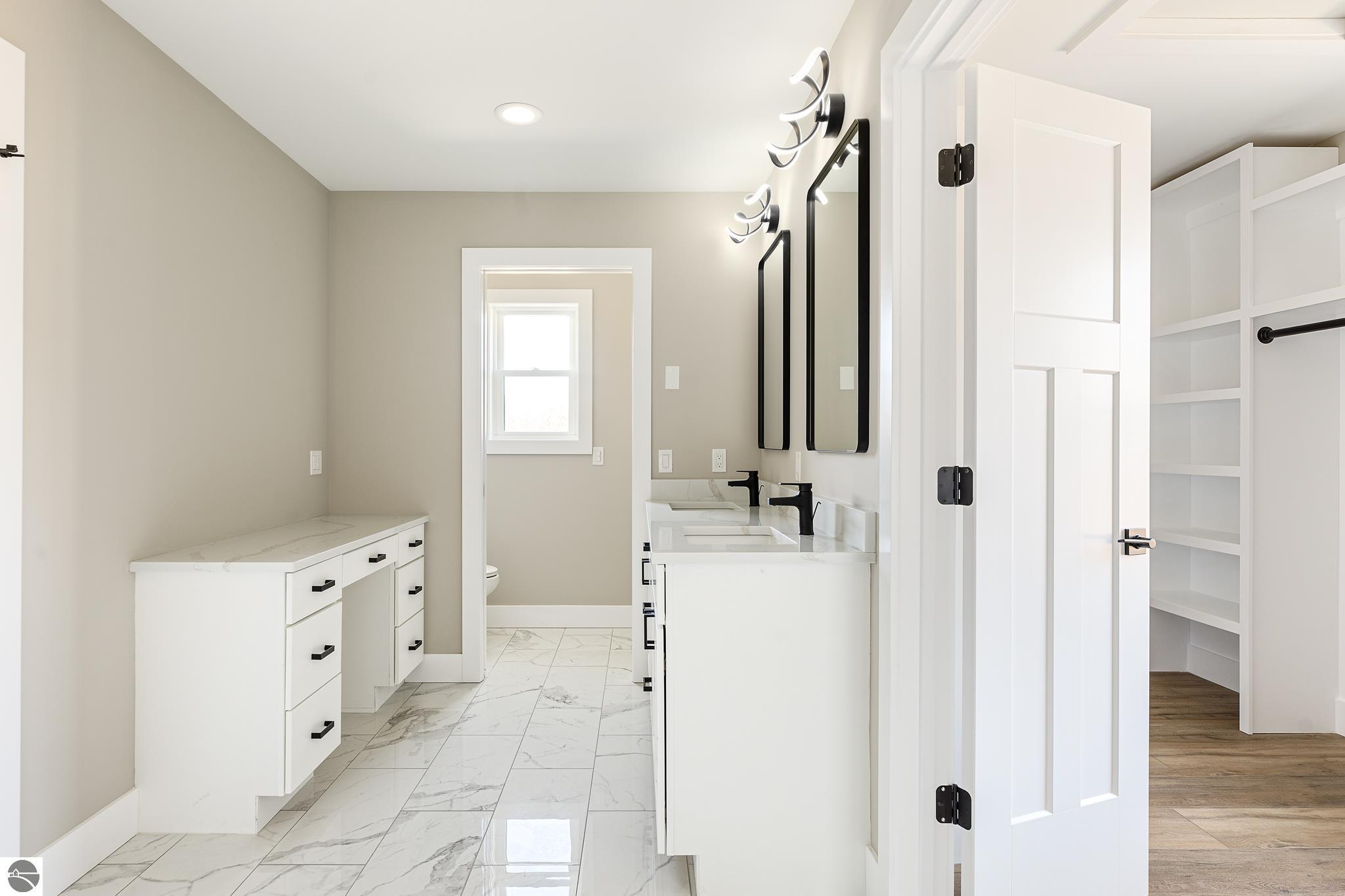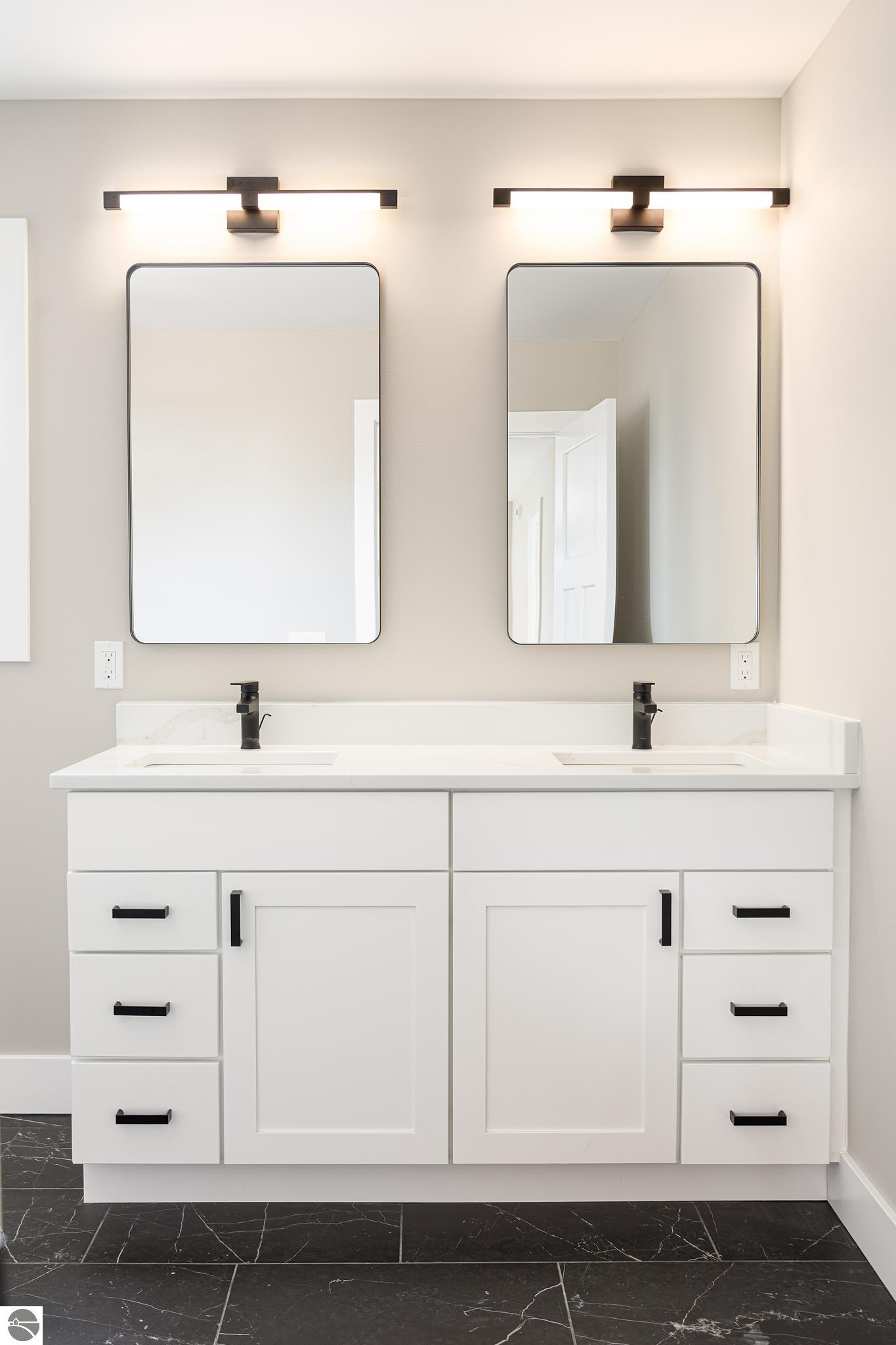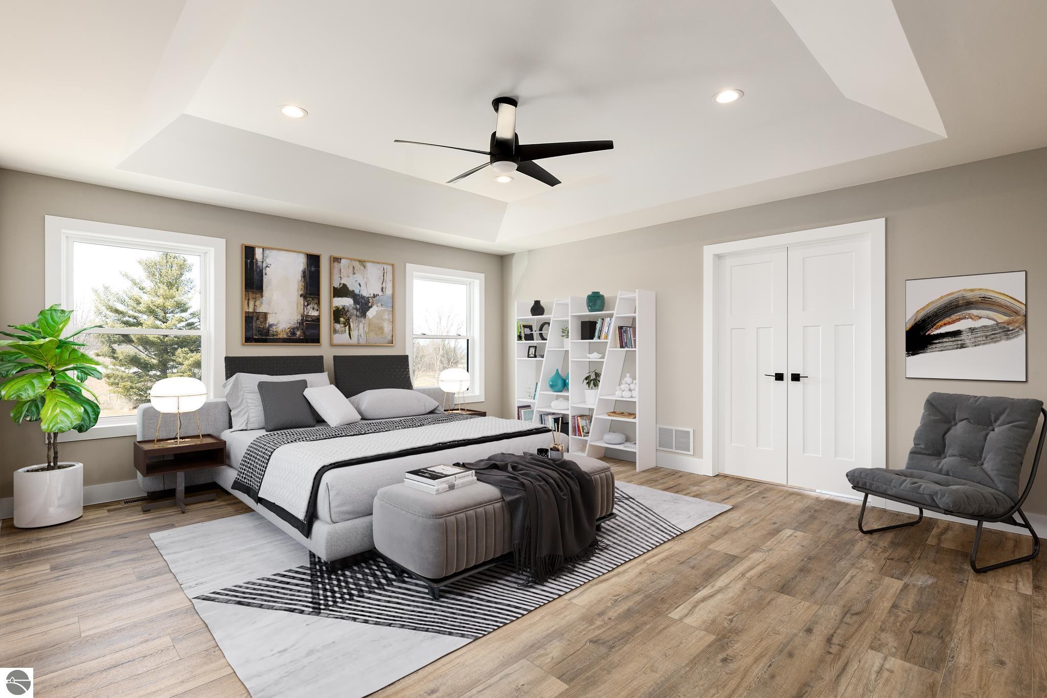 Tucked at the end of a quiet cul-de-sac in Verndale Estates, 872 Vienna Way delivers clean lines and livable design. Completed in 2025, its crisp white façade, bold black detailing, and three-car garage make a striking first impression. The generous lot opens to rolling hill views that glow with autumn color, offering privacy while still feeling connected to the neighborhood. Inside, natural light anchors an open layout that links the kitchen, dining, and living areas—easy for everyday life and effortless for entertaining. The kitchen stands out with sleek cabinetry, durable countertops, stylish flooring, and a full suite of included, state-of-the-art appliances. Well-placed windows frame the landscape and keep the main level bright from morning to evening. All-tile bathrooms bring a refined, timeless look with clean fixtures and spa-like simplicity. Bedrooms are comfortably scaled; the private primary suite adds a calm retreat with an elegant en-suite bath. Step outside to a professionally designed patio that extends your living space. The deep backyard invites gardens, play, or future amenities—bring your vision. Minutes to downtown Traverse City, nearby schools, golf, and waterfront recreation, this address pairs modern style with day-to-day convenience. A member of the selling LLC is a licensed real estate agent in the state of Michigan.