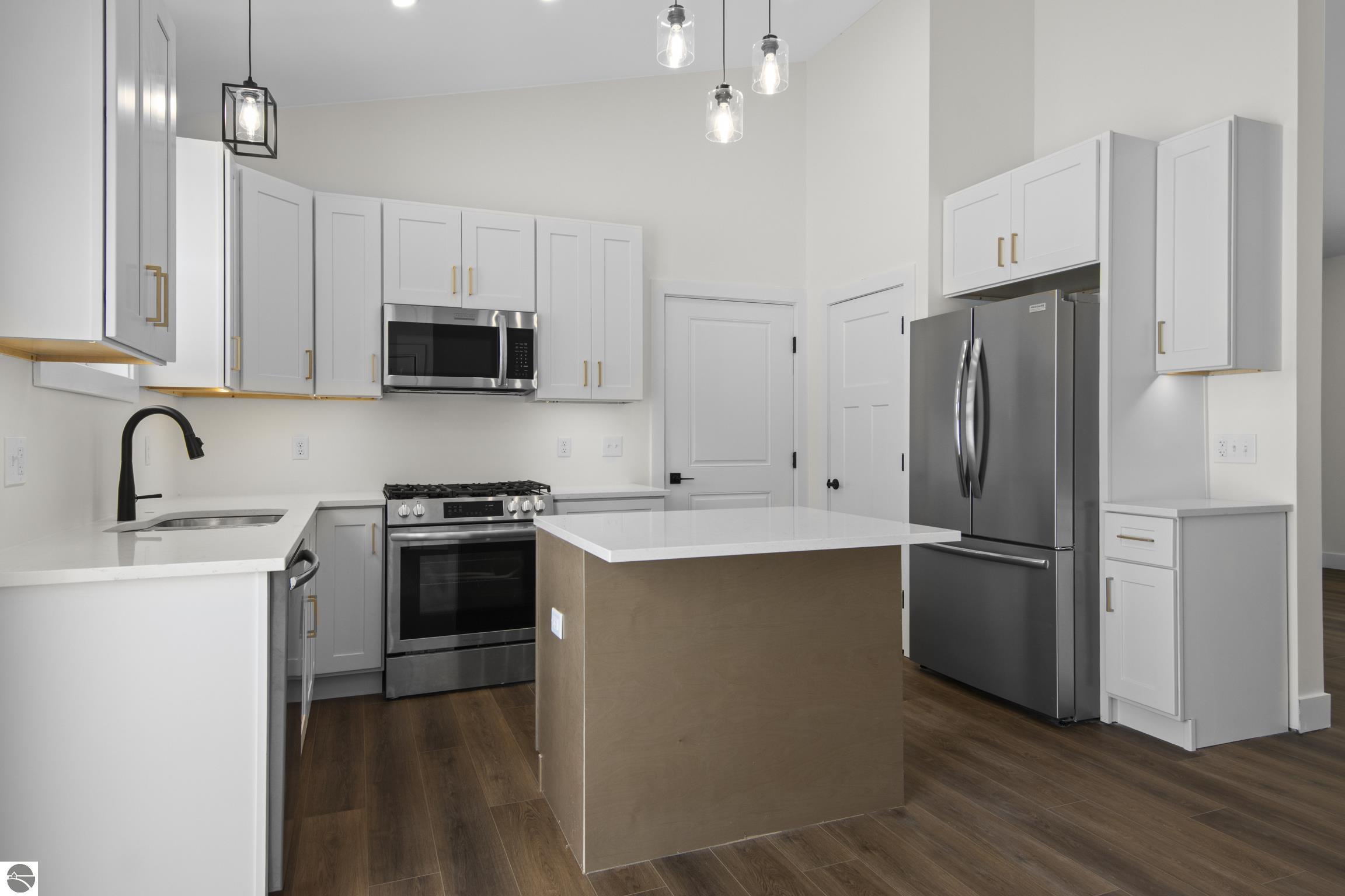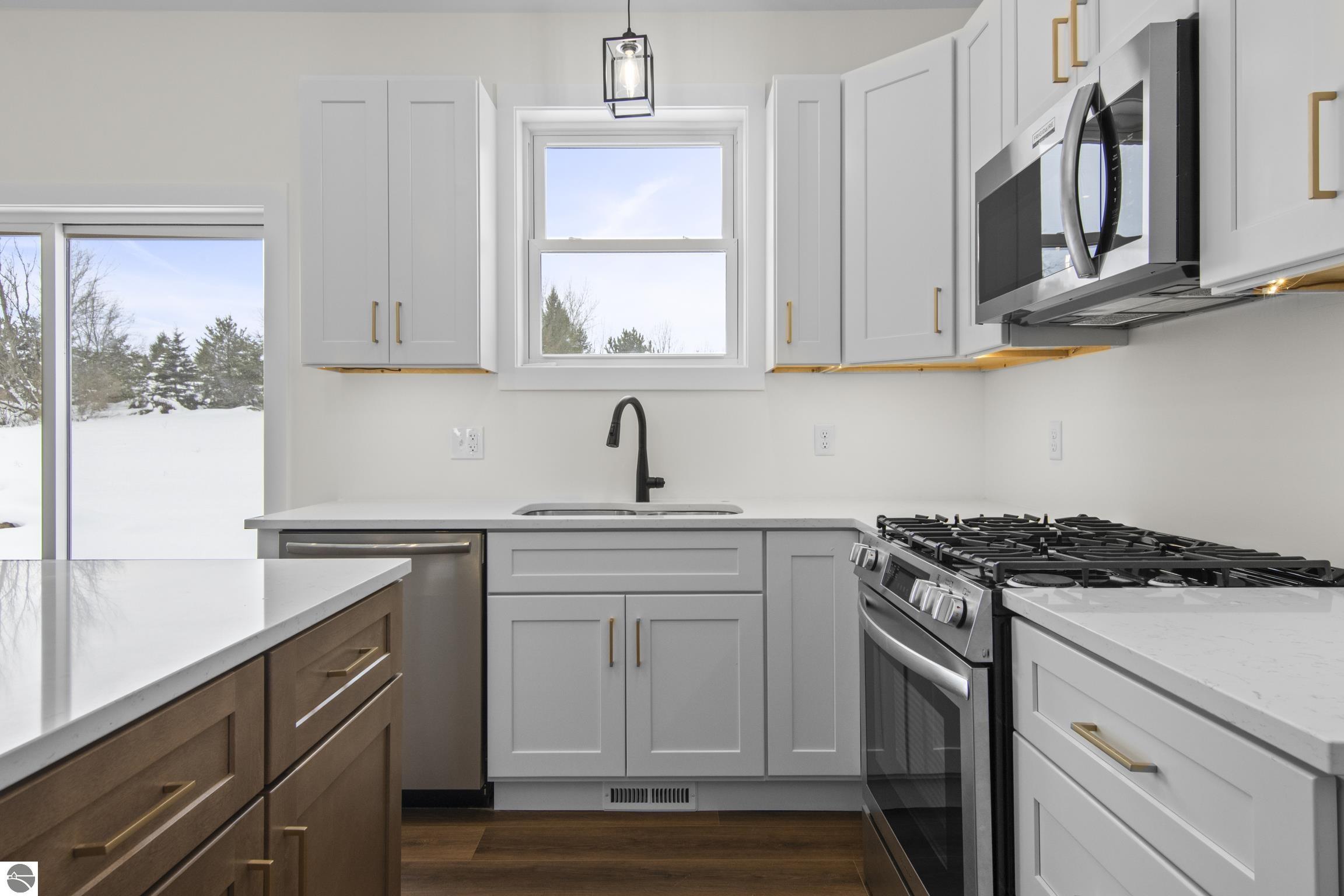 Thoughtfully designed and full of charm, this new construction home in Maplewood Commons proves that modest square footage can still live large. The open floor plan is bright, welcoming, and intentionally laid out to maximize comfort and functionality. The kitchen serves as the heart of the home, featuring quartz countertops, a spacious island, and stainless steel appliances that blend style with everyday practicality. Vaulted ceilings in the main living area, paired with large windows, flood the space with light and create an airy, expansive feel. The primary suite offers a private retreat with its own bathroom and a walk-in closet. Downstairs, the full unfinished lower level presents a blank canvas—perfect for future living space, storage, or a growing household. From the moment you arrive, the home makes a statement. A beautiful cedar-finished front porch sets it apart from neighboring homes and adds warmth and character. Out back, the yard is bordered by a common area, and the natural incline of the landscape creates a sense of privacy. Whether you envision a firepit, garden, or outdoor gathering space, the backyard is ready to reflect its new owner’s vision. A nearby communal boat and RV storage area adds convenience for those looking to take full advantage of the Up North outdoor lifestyle. Remaining excavation and the asphalt driveway will be completed in the spring, and the lawn will be seeded, allowing the exterior to fully take shape. Located within the Glen Lake School District and just minutes from Traverse City, numerous inland lakes, beaches, trails, and the countless amenities Leelanau County has to offer, Maplewood Commons is a quaint, peaceful development that offers a true sense of community. Whether you’re a first-time homebuyer, someone seeking a smaller, low-maintenance home, or looking to downsize without sacrificing quality, this home is ready for it's new owner to make it their own. (At least one seller is a licensed realtor in State of MI.)