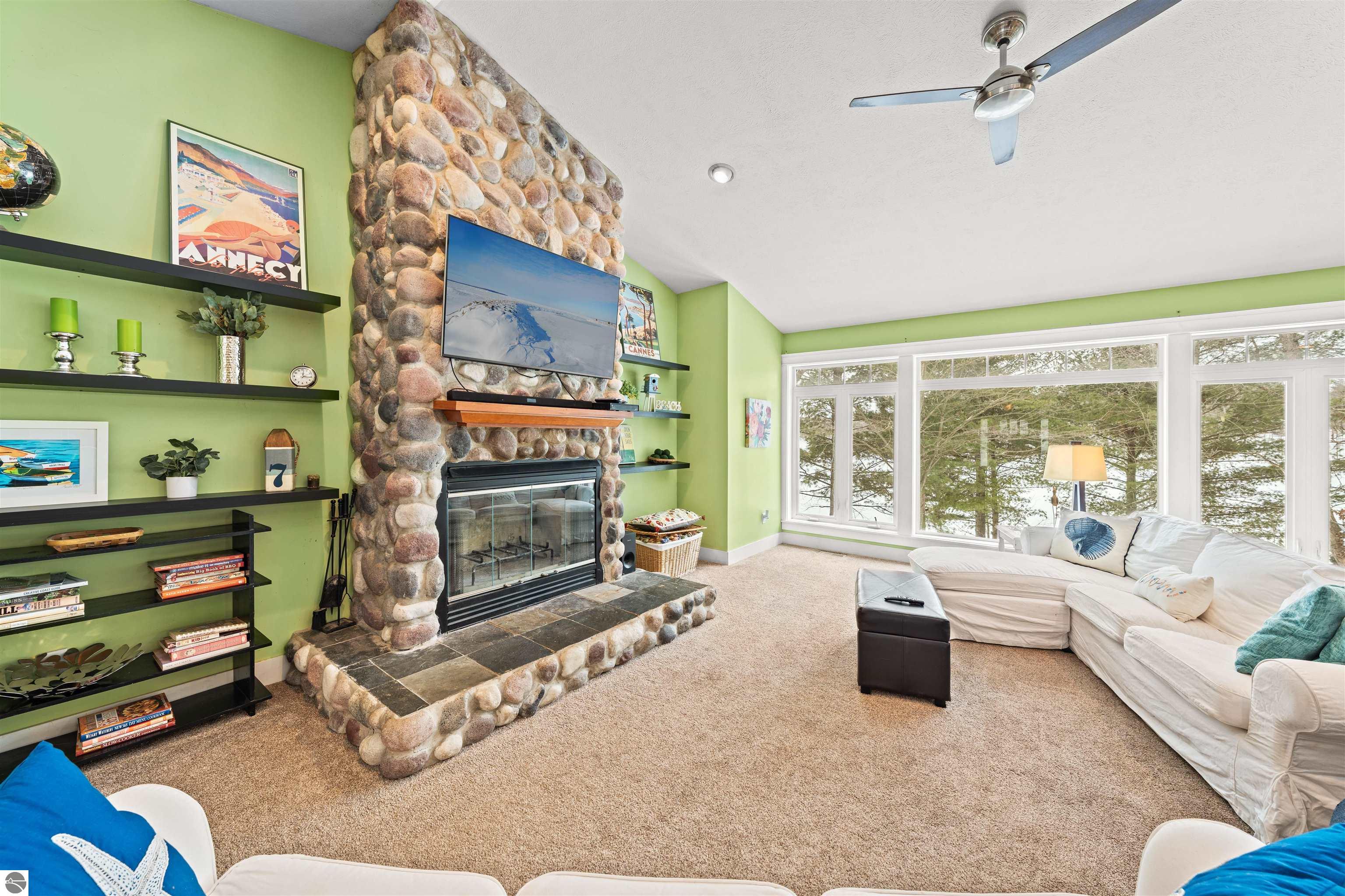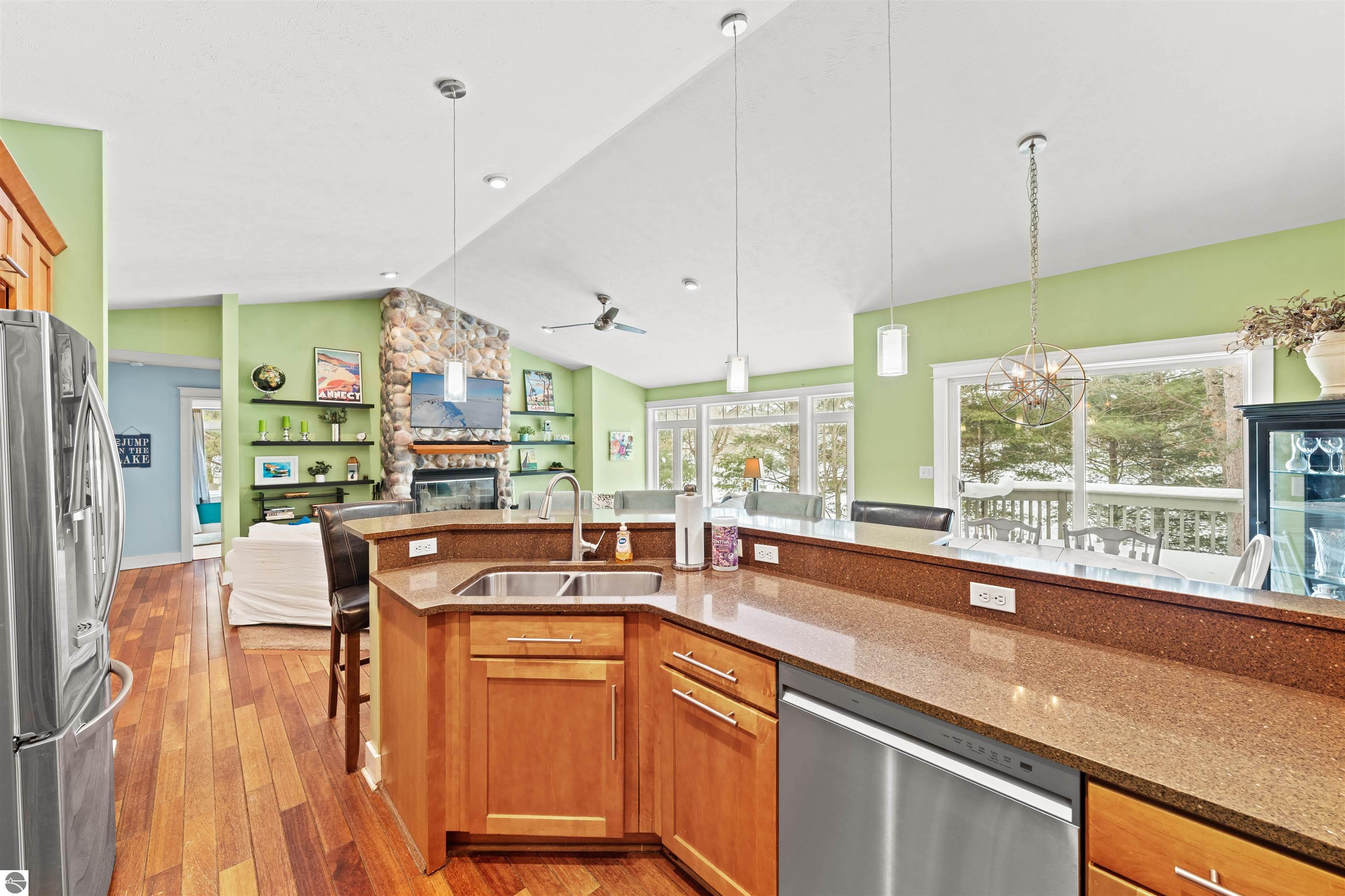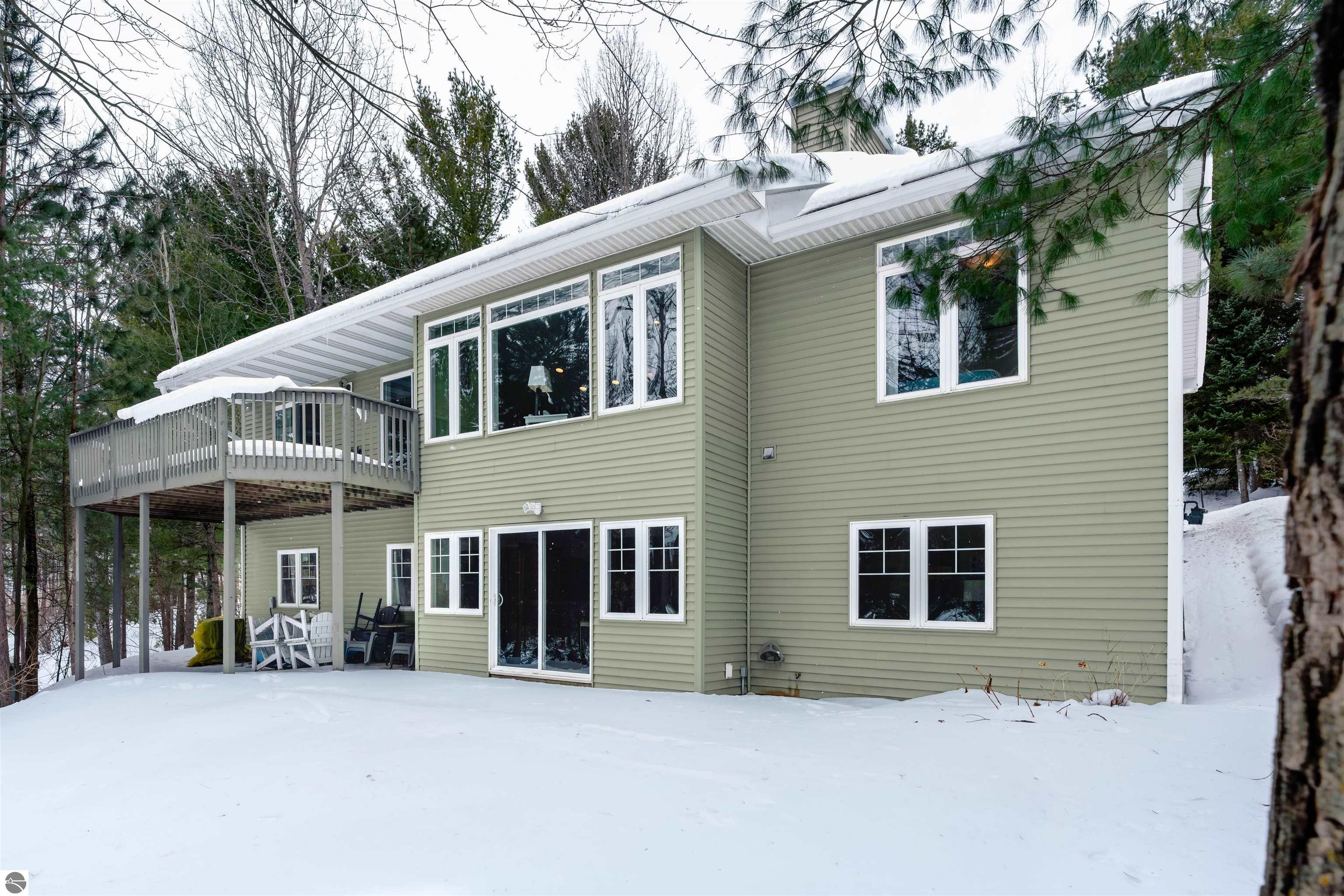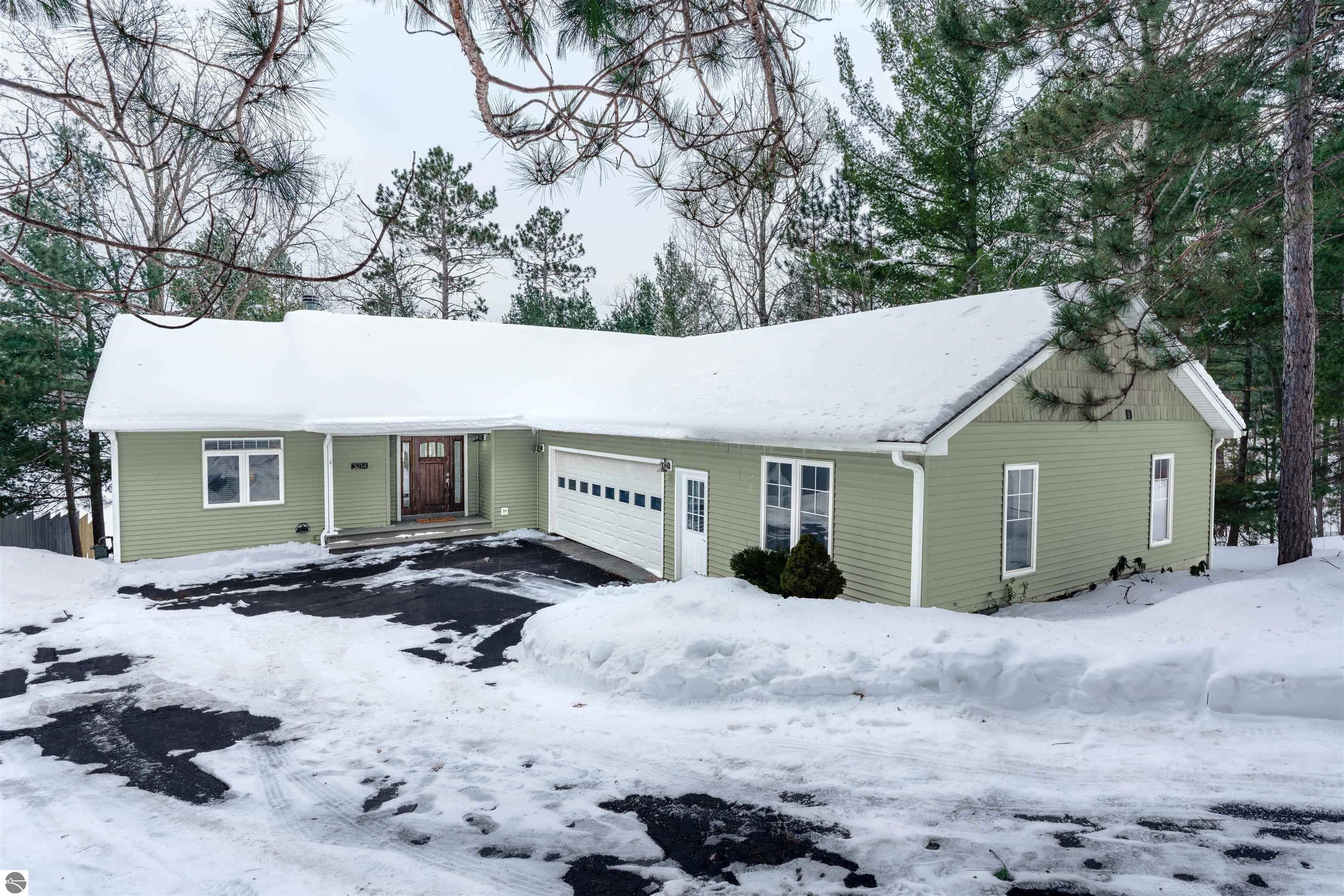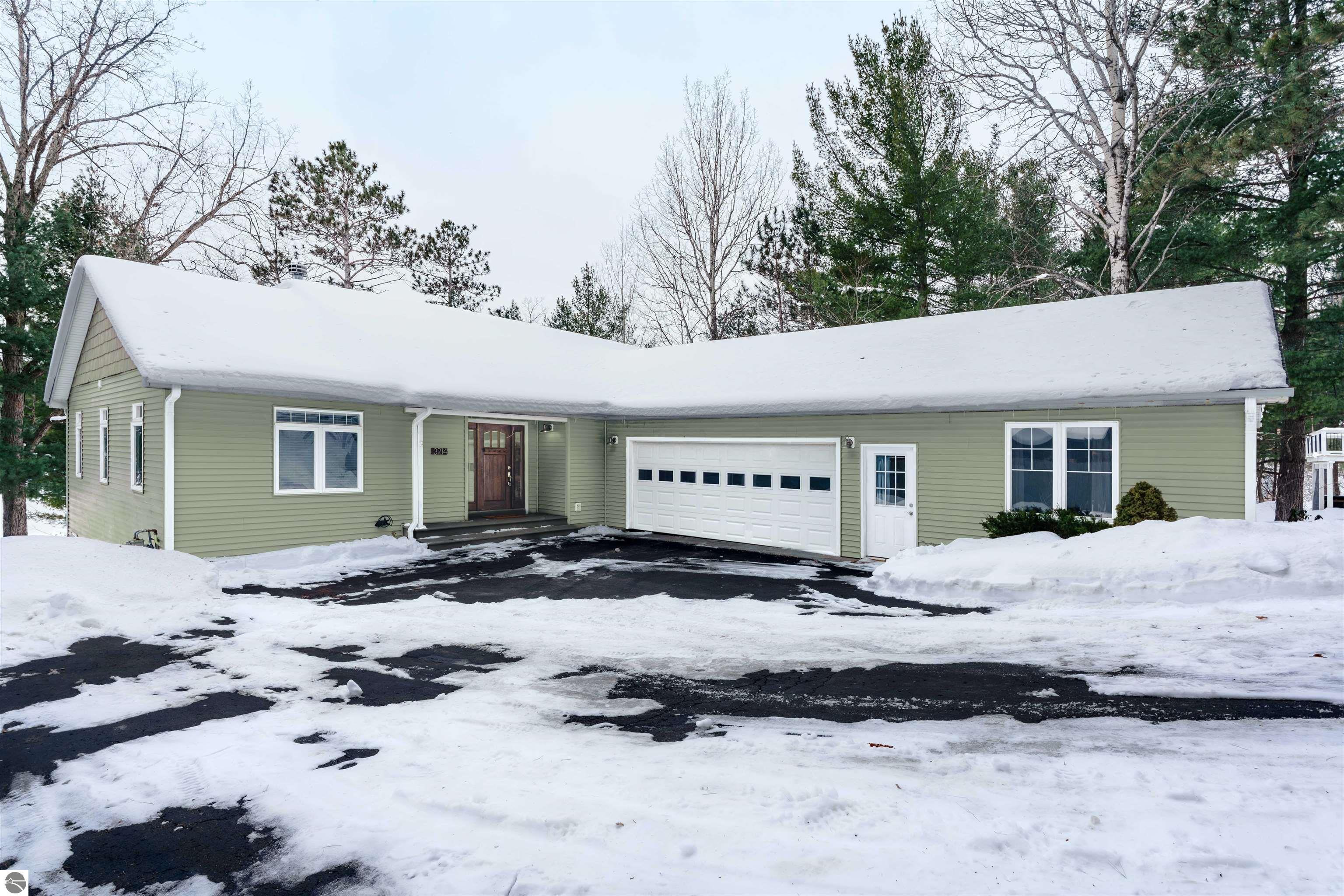 Set on the peaceful shores of no-wake Tibbets Lake, just minutes from Traverse City, this spacious waterfront home is designed for year-round enjoyment and effortless entertaining. Large windows throughout capture beautiful lake views and fill the home with natural light. The main level offers a desirable split floor plan featuring a private primary suite overlooking the water with double sinks and a generous closet, along with main-floor laundry and ample pantry storage. The walkout lower level expands the living space with two bedrooms, an office, kitchenette, two comfortable living areas, and a workout space—each with oversized windows showcasing the lakefront setting. Just beyond the attached two-car garage, a versatile bonus area provides flexible use as a guest suite, studio, home office, or hangout space. Outdoor recreation is right at your doorstep with easy access to snowmobile, bike, hiking, cross-country ski, and ORV trails, including the nearby Vasa Pathway and the Boardman Valley Trail System. Minutes away, Grace McDonald Park offers extensive amenities for all ages. Tibbets Lake is known for excellent fishing, kayaking, paddleboarding, and winter ice fishing. Relax on the large deck or by the fireplace with hot cocoa and take in the best of Traverse City and Northern Michigan living.