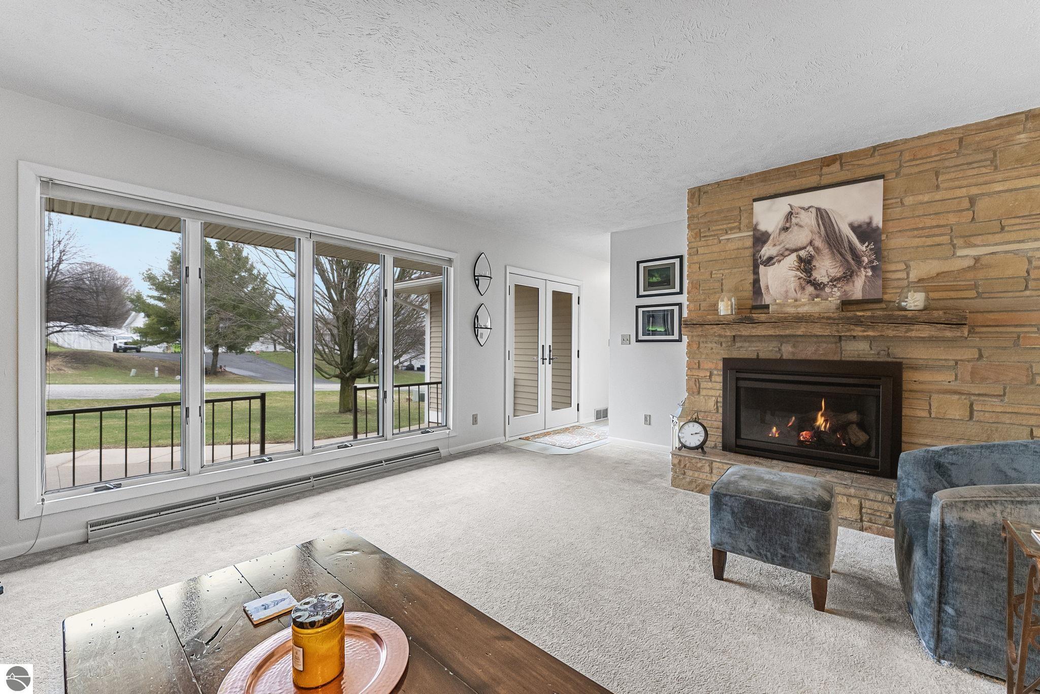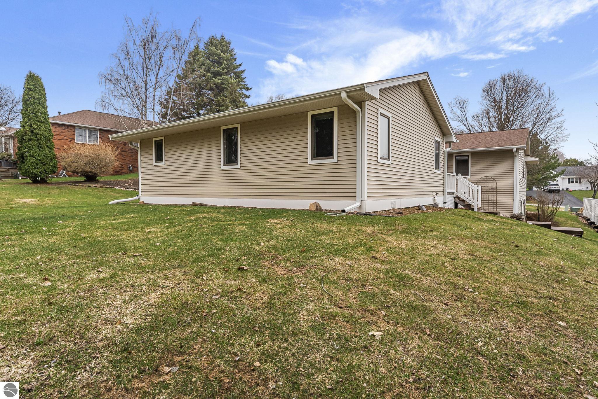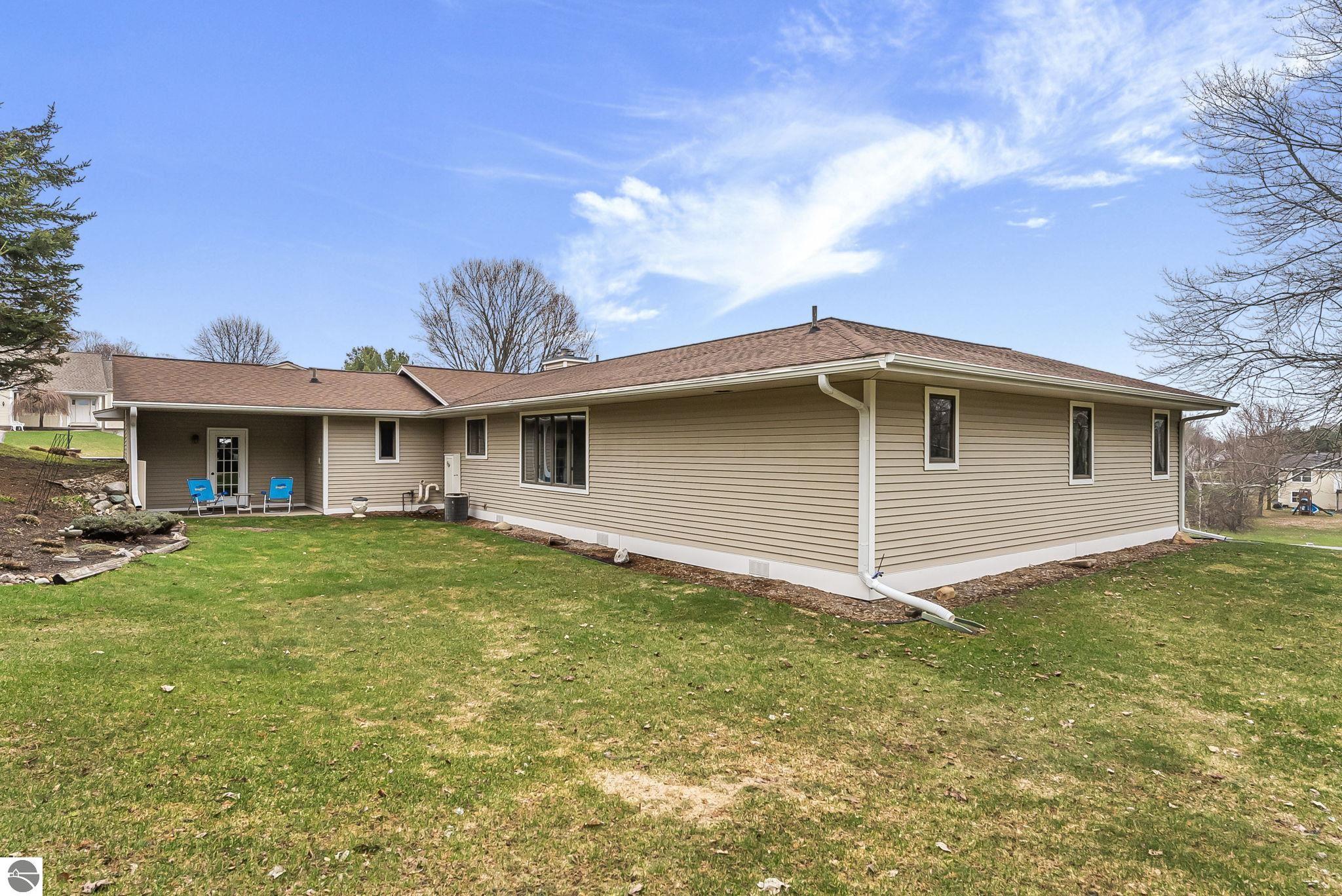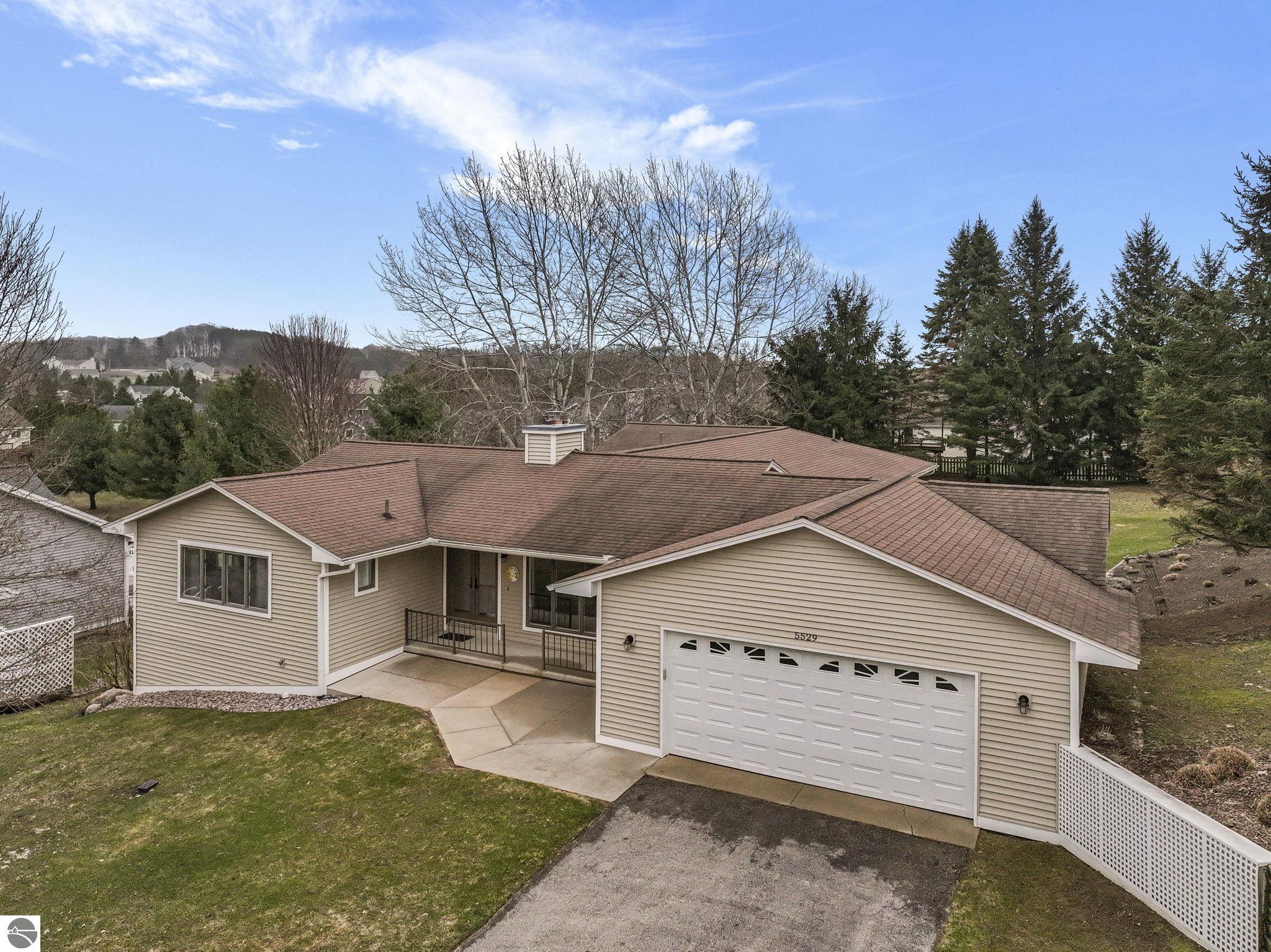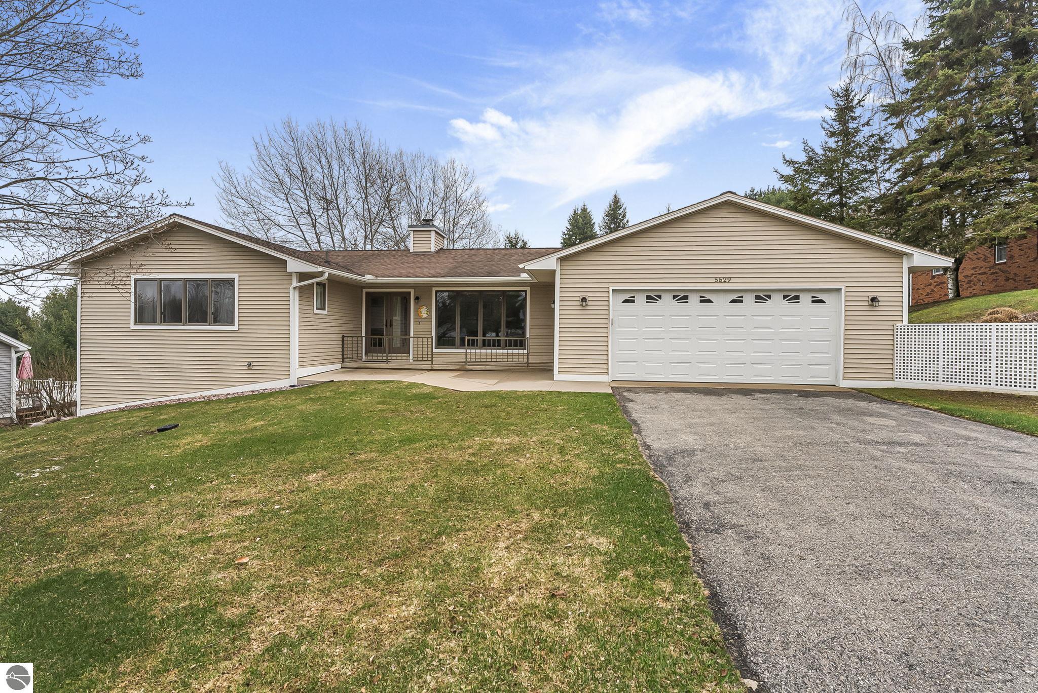 Welcome to this impeccably maintained home in the highly sought-after Heritage Estates neighborhood, just west of downtown Traverse City. This charming 4-bedroom, 2.5-bathroom home offers a warm and inviting atmosphere from the moment you arrive. Step inside to a floor plan that flows effortlessly, anchored by 2 spacious living areas, 1 boasting a gas fireplace—perfect for cozy evenings and relaxed gatherings. The updated kitchen is both functional and inviting, offering ample space for cooking and everyday living. The generously sized primary suite provides a peaceful retreat with its own private ensuite, while three additional main-floor bedrooms offer comfort and flexibility for family or guests. The unfinished basement presents endless possibilities—create a home gym, office, or additional living space tailored to your needs. Step outside to enjoy the beautifully maintained grounds, complete with an irrigation system and a spacious covered deck —ideal for entertaining or unwinding. Ideally located just 2 miles from TC West Middle and High School and the YMCA, and only 4 miles from downtown Traverse City, this home blends peaceful suburban living with everyday convenience—a rare opportunity to enjoy comfort, charm, and location—all in one exceptional property.