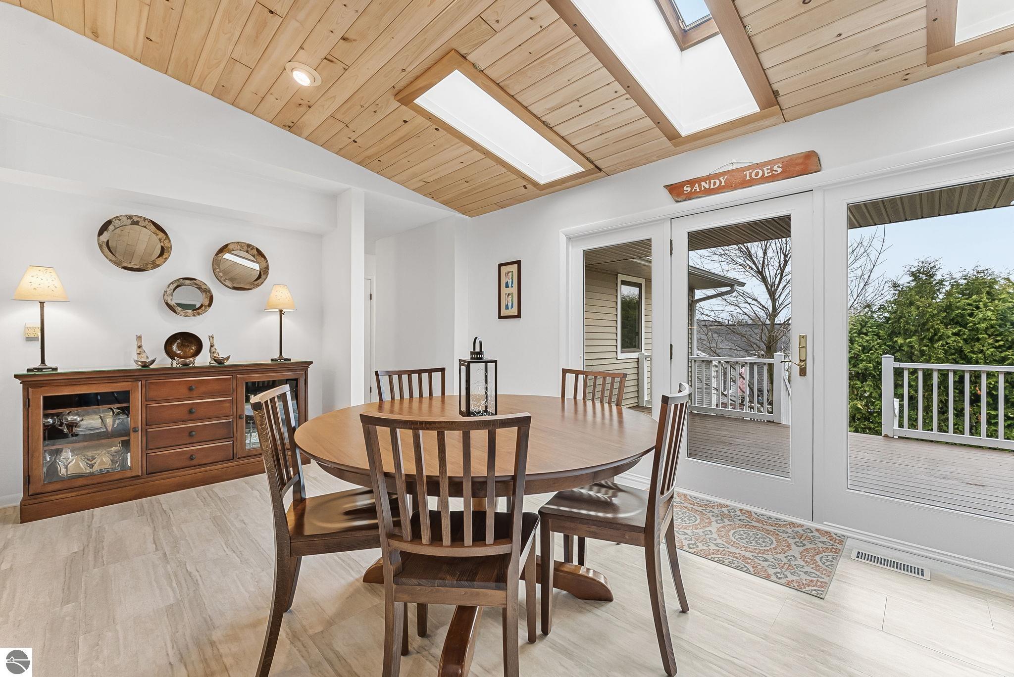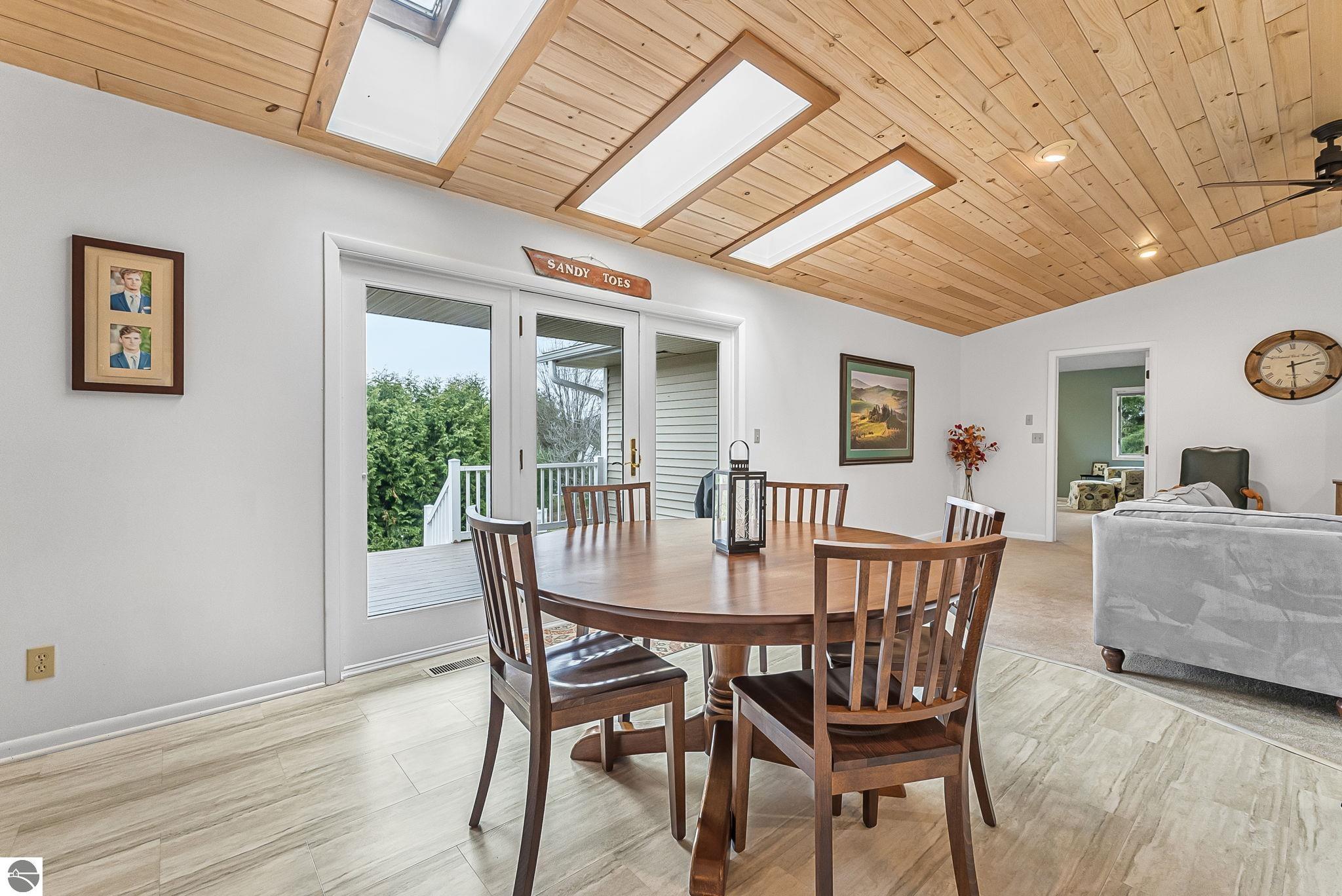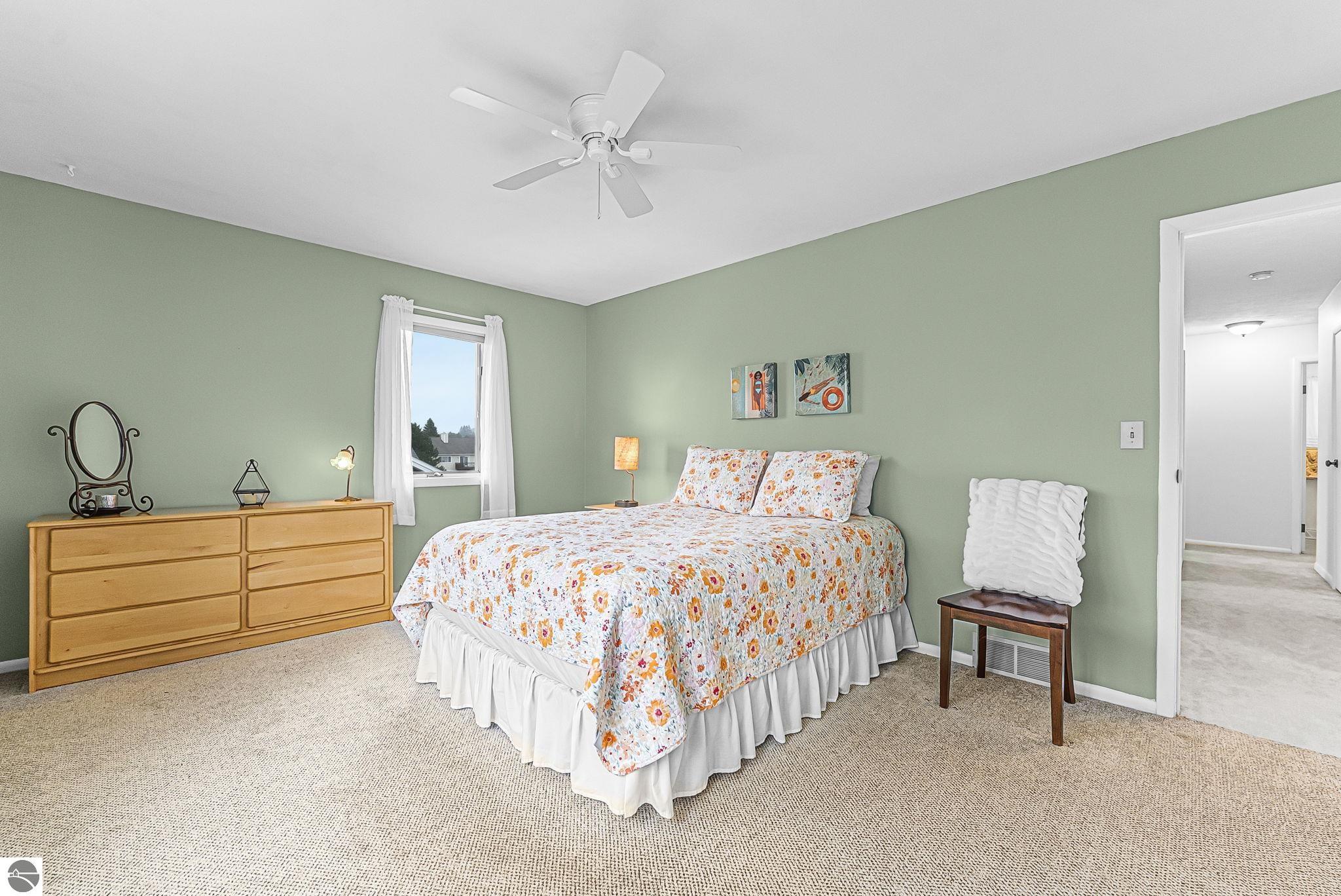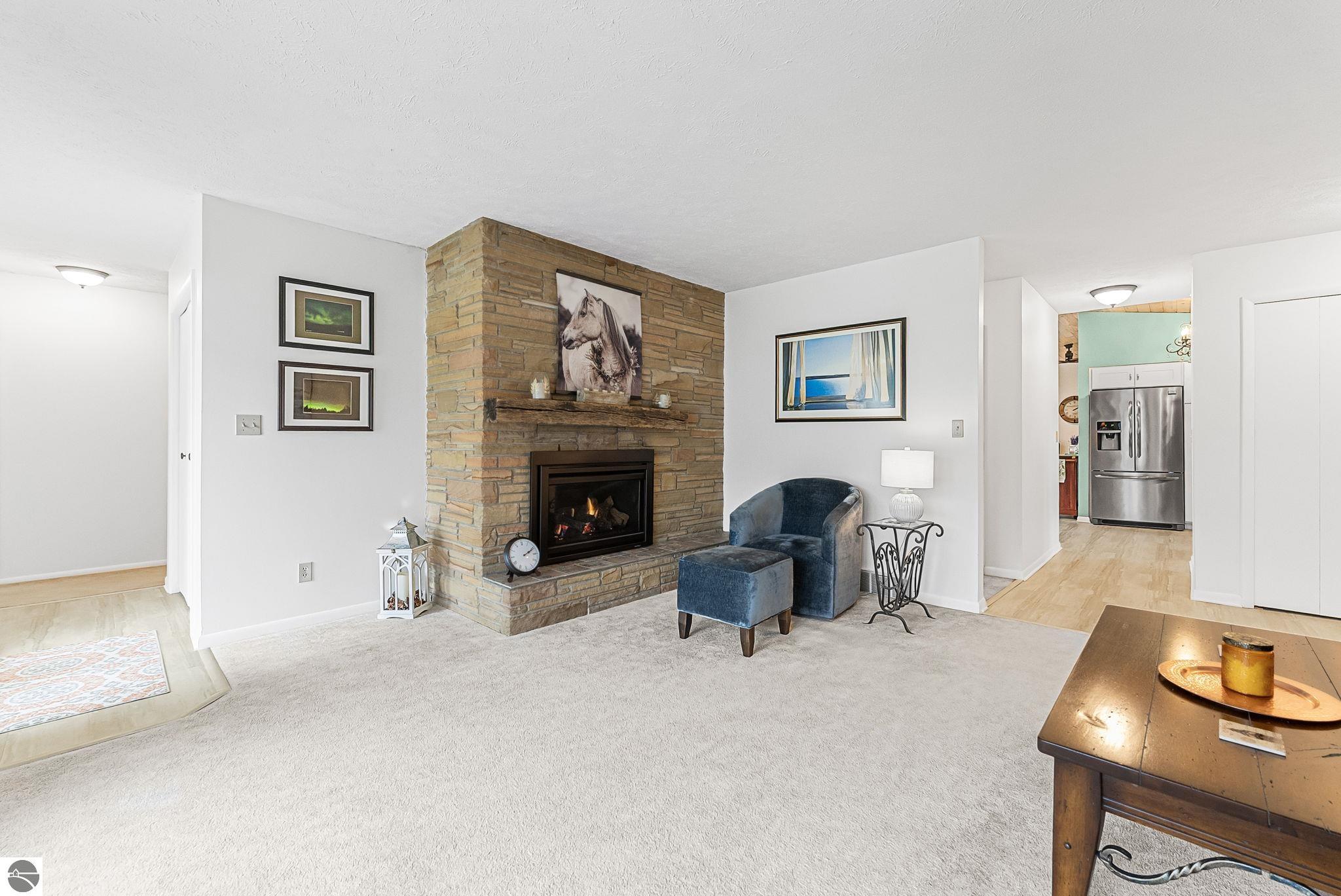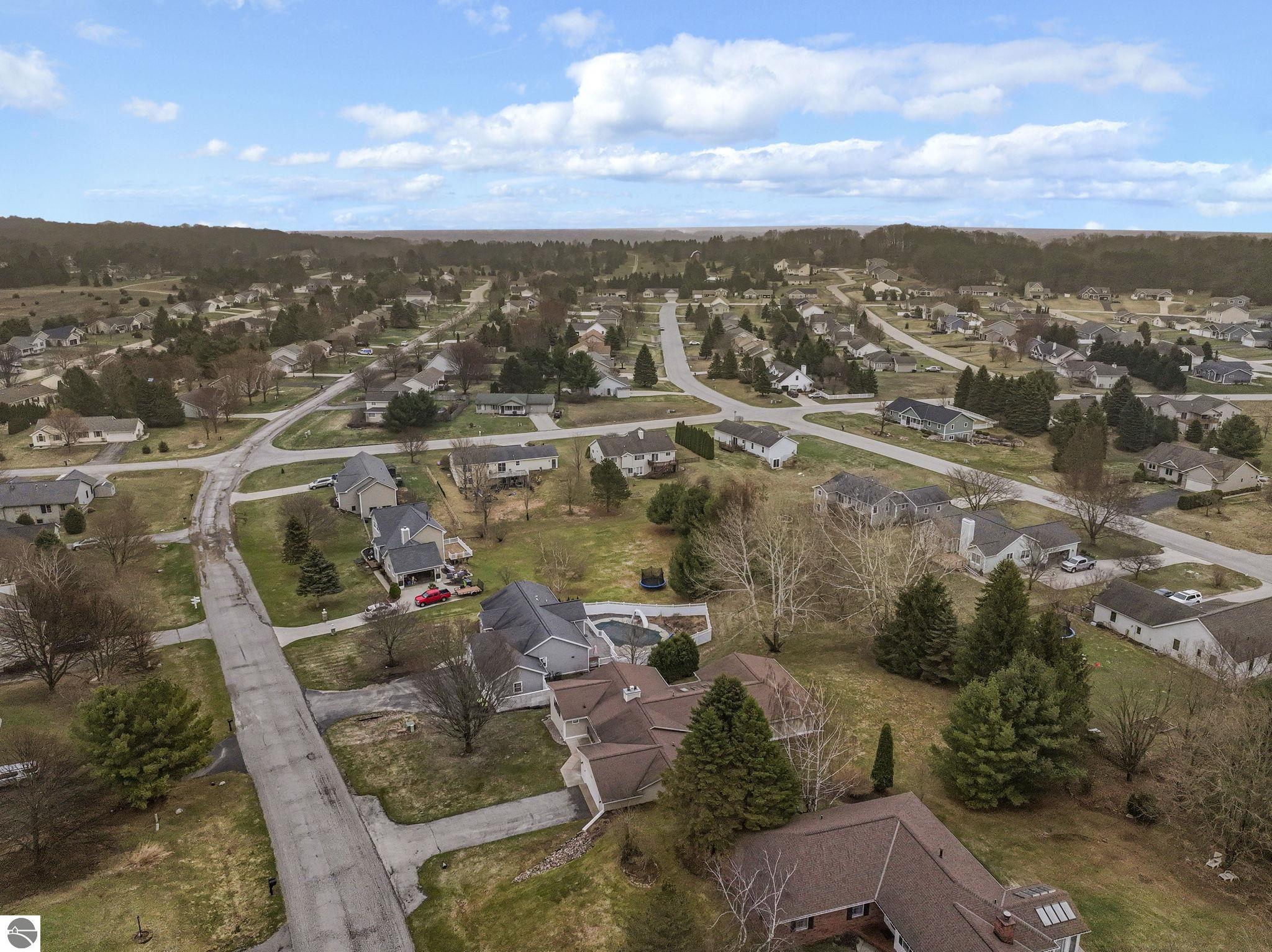 Welcome to this impeccably maintained home in the highly sought-after Heritage Estates neighborhood, just west of downtown Traverse City. This charming 4-bedroom, 2.5-bathroom home offers a warm and inviting atmosphere from the moment you arrive. Step inside to a floor plan that flows effortlessly, anchored by 2 spacious living areas, 1 boasting a gas fireplace—perfect for cozy evenings and relaxed gatherings. The updated kitchen is both functional and inviting, offering ample space for cooking and everyday living. The generously sized primary suite provides a peaceful retreat with its own private ensuite, while three additional main-floor bedrooms offer comfort and flexibility for family or guests. The unfinished basement presents endless possibilities—create a home gym, office, or additional living space tailored to your needs. Step outside to enjoy the beautifully maintained grounds, complete with an irrigation system and a spacious covered deck —ideal for entertaining or unwinding. Ideally located just 2 miles from TC West Middle and High School and the YMCA, and only 4 miles from downtown Traverse City, this home blends peaceful suburban living with everyday convenience—a rare opportunity to enjoy comfort, charm, and location—all in one exceptional property.