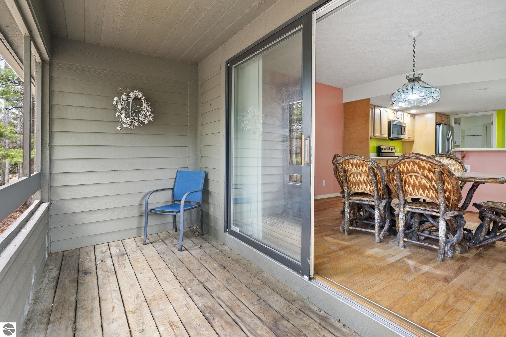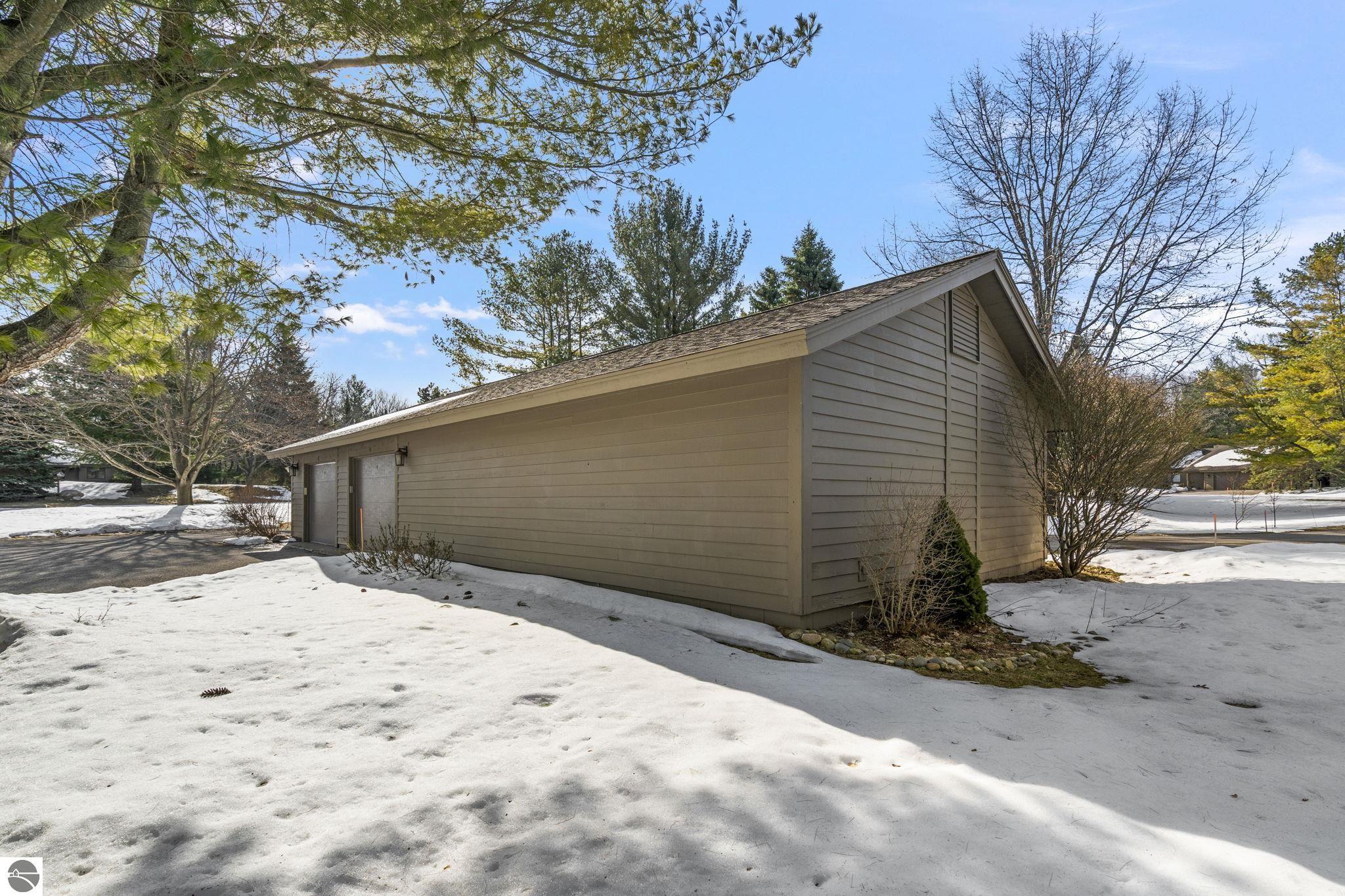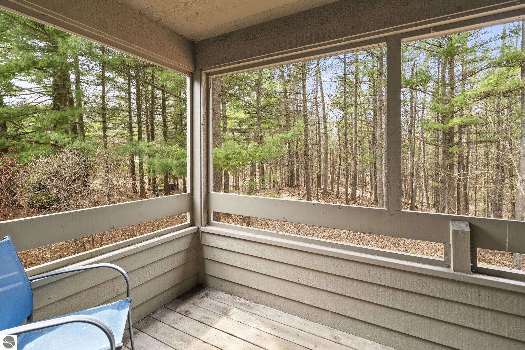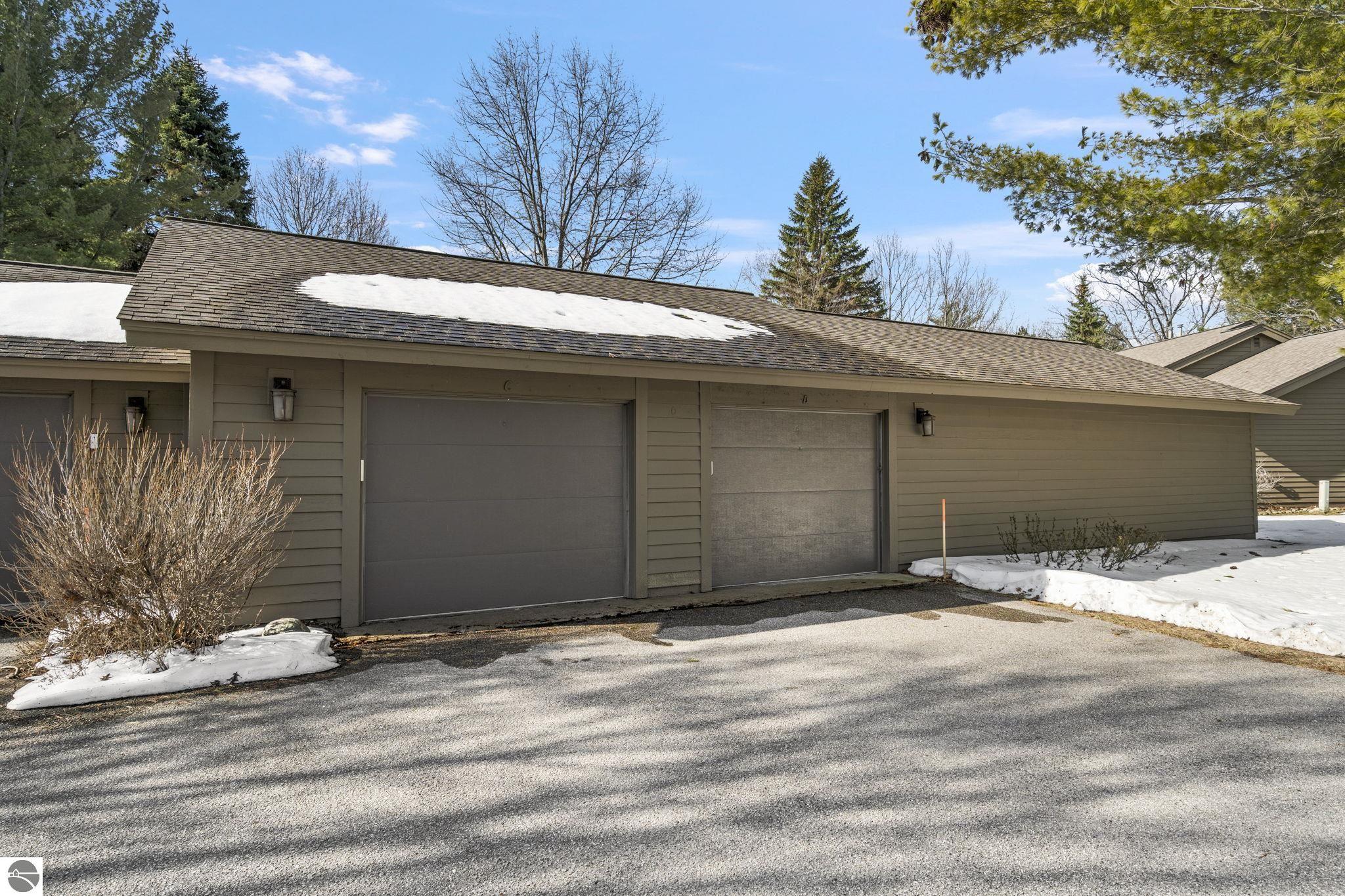 Opportunity awaits in this ideally located Port of Old Mission condo offering privacy, wooded views, and incredible potential to make it your own. With a desirable main-floor living layout, this home features a spacious living room with vaulted ceilings, a cozy gas fireplace, and an open-concept design that flows seamlessly into the dining area and enclosed three-season room—perfect for enjoying the peaceful natural setting year-round. The primary bedroom offers wood floors, a walk-in closet, and an ensuite bath, while convenient main-floor laundry adds to the ease of everyday living. The walkout lower level provides excellent additional space with a bedroom, full bath, office, abundant storage, and plenty of natural light—ideal for guests, hobbies, or a home workspace. An attached one-car garage plus a separate detached one-car garage offer rare and valuable extra storage. While the condo would benefit from updating and renovation, the location and layout make it a standout opportunity. Enjoy low-maintenance living in a walkable community where exterior maintenance and snow removal are handled for you—giving you more time to take advantage of all that Traverse City has to offer. Just minutes from downtown dining, shopping, entertainment, the farmers market, Old Mission wineries, and Bryant Park.