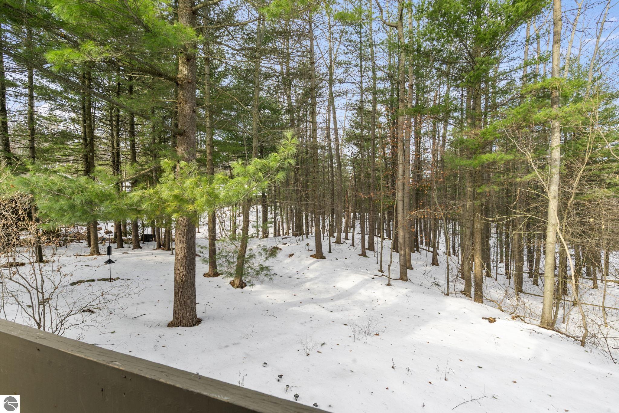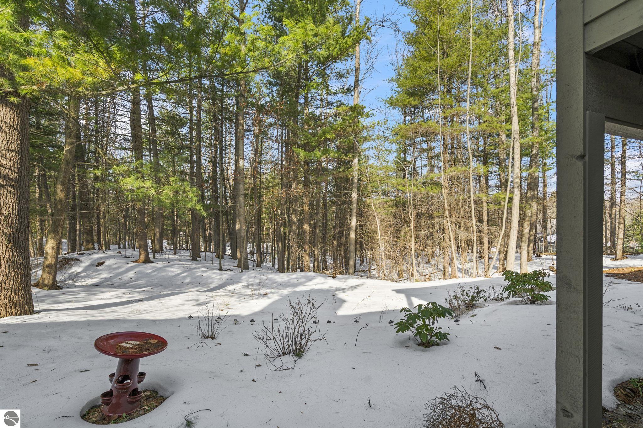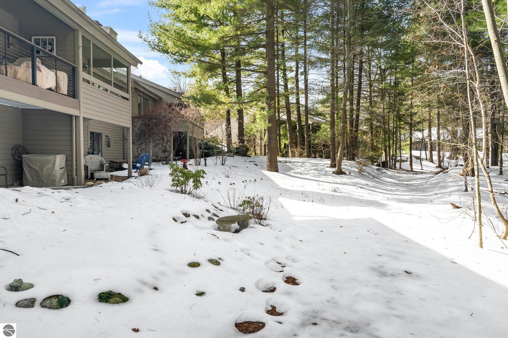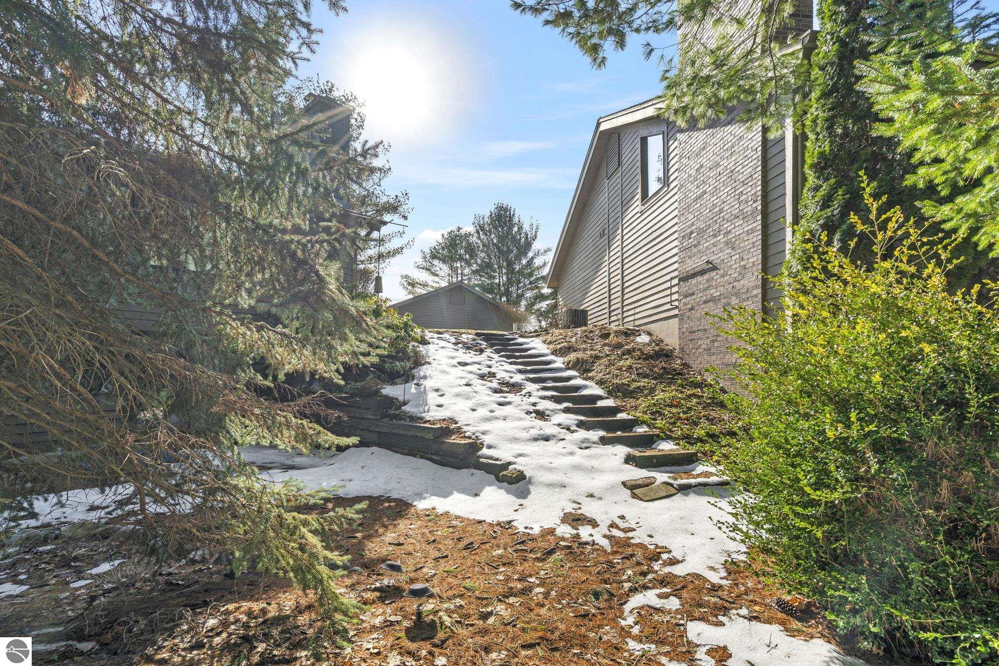 Opportunity awaits in this ideally located Port of Old Mission condo offering privacy, wooded views, and incredible potential to make it your own. With a desirable main-floor living layout, this home features a spacious living room with vaulted ceilings, a cozy gas fireplace, and an open-concept design that flows seamlessly into the dining area and enclosed three-season room—perfect for enjoying the peaceful natural setting year-round. The primary bedroom offers wood floors, a walk-in closet, and an ensuite bath, while convenient main-floor laundry adds to the ease of everyday living. The walkout lower level provides excellent additional space with a bedroom, full bath, office, abundant storage, and plenty of natural light—ideal for guests, hobbies, or a home workspace. An attached one-car garage plus a separate detached one-car garage offer rare and valuable extra storage. While the condo would benefit from updating and renovation, the location and layout make it a standout opportunity. Enjoy low-maintenance living in a walkable community where exterior maintenance and snow removal are handled for you—giving you more time to take advantage of all that Traverse City has to offer. Just minutes from downtown dining, shopping, entertainment, the farmers market, Old Mission wineries, and Bryant Park.