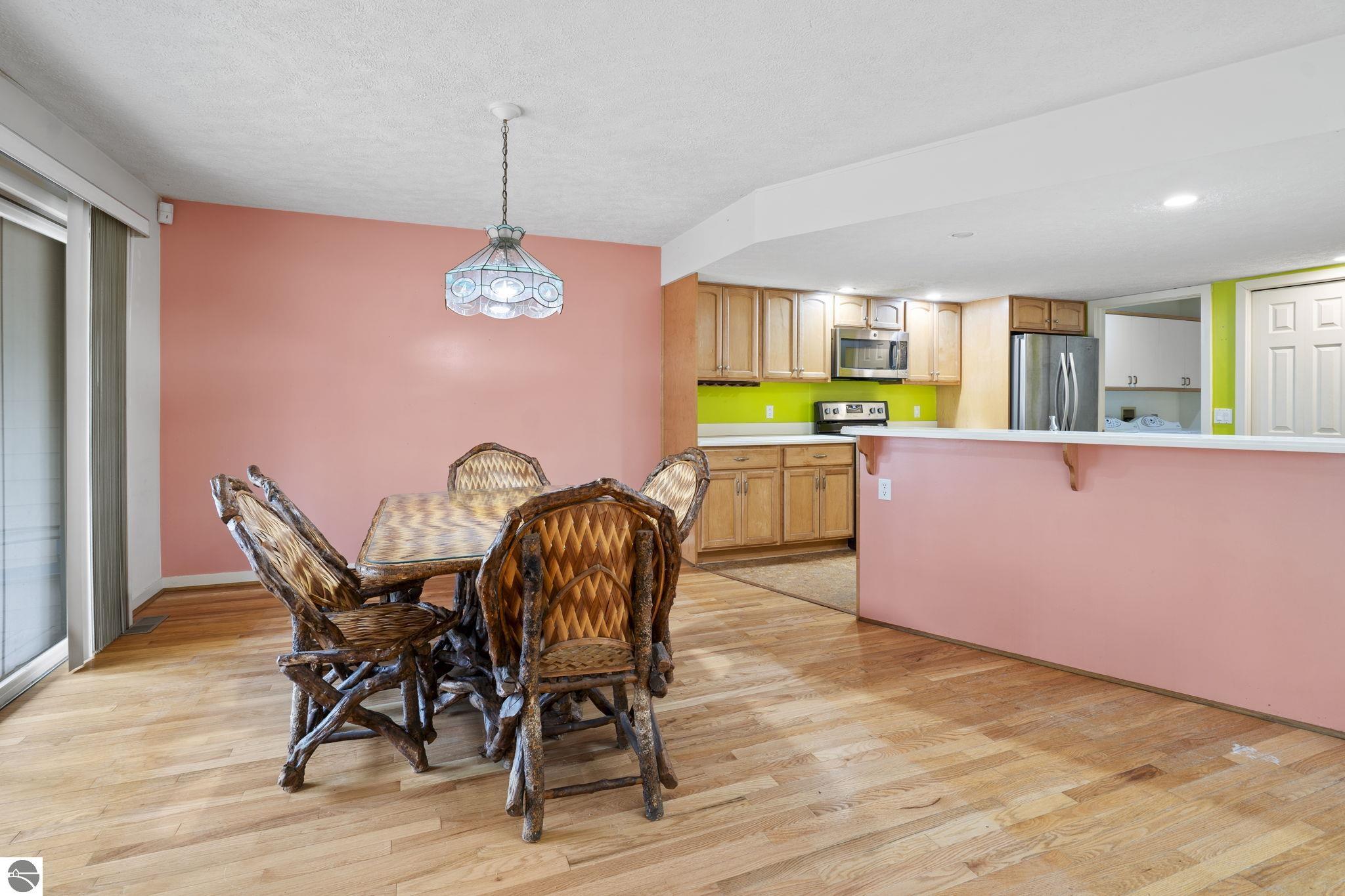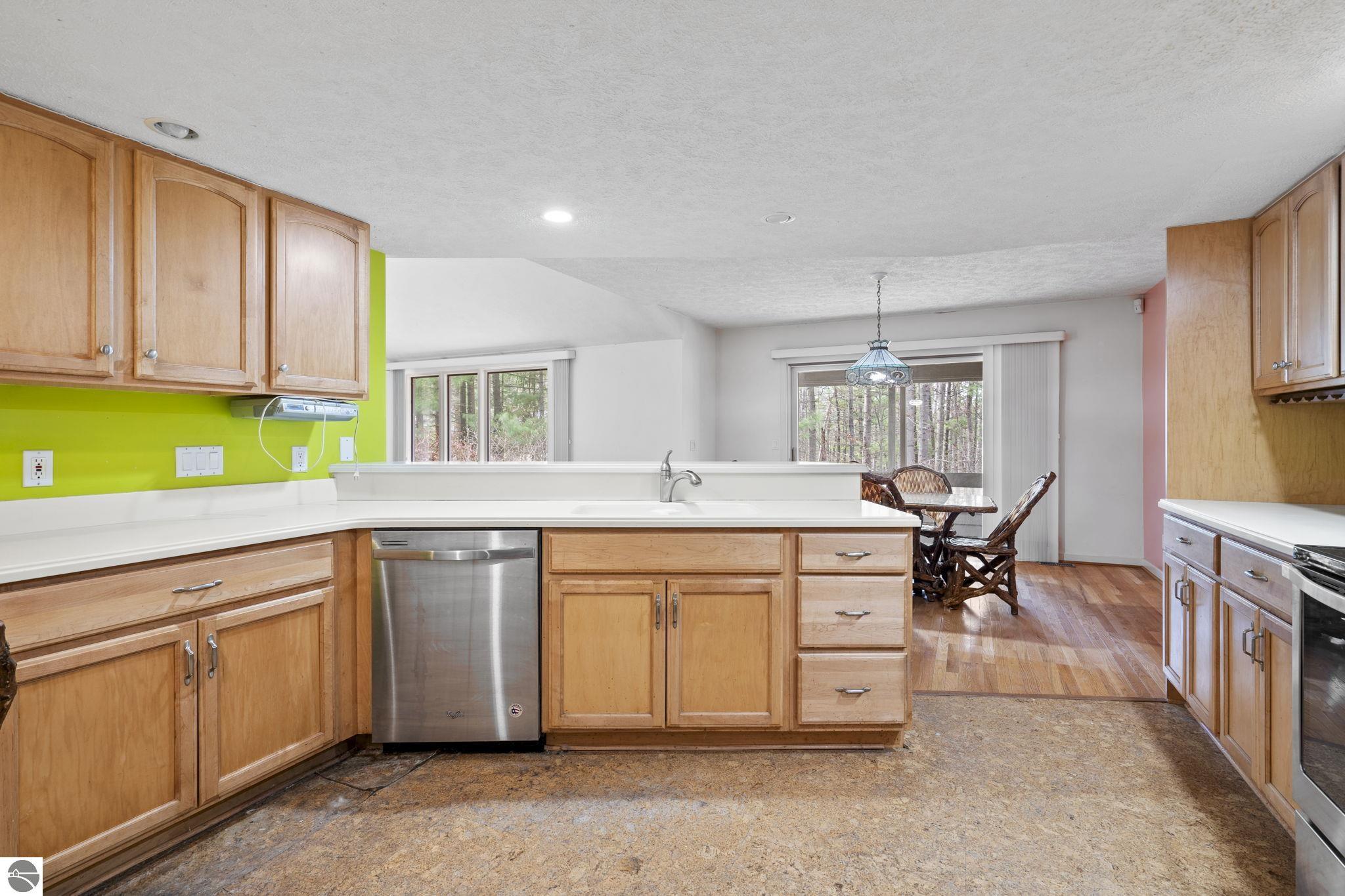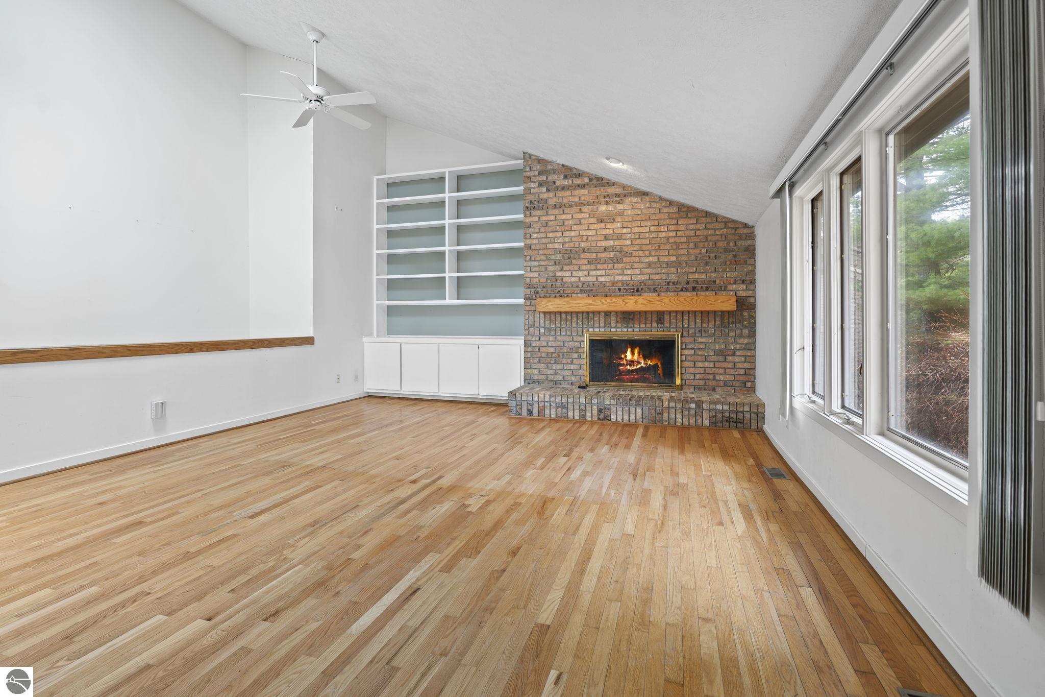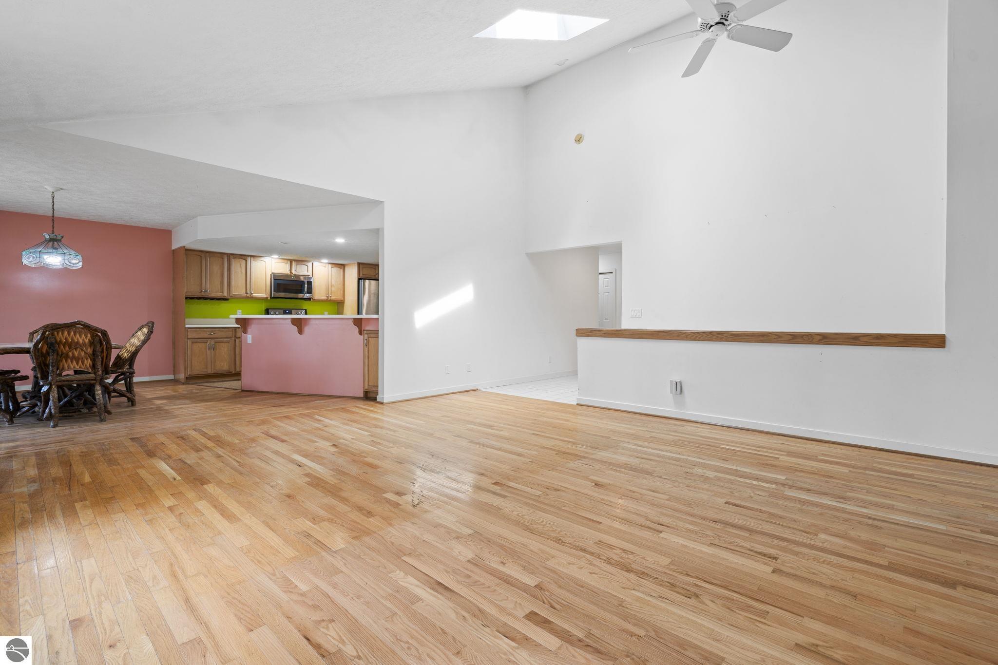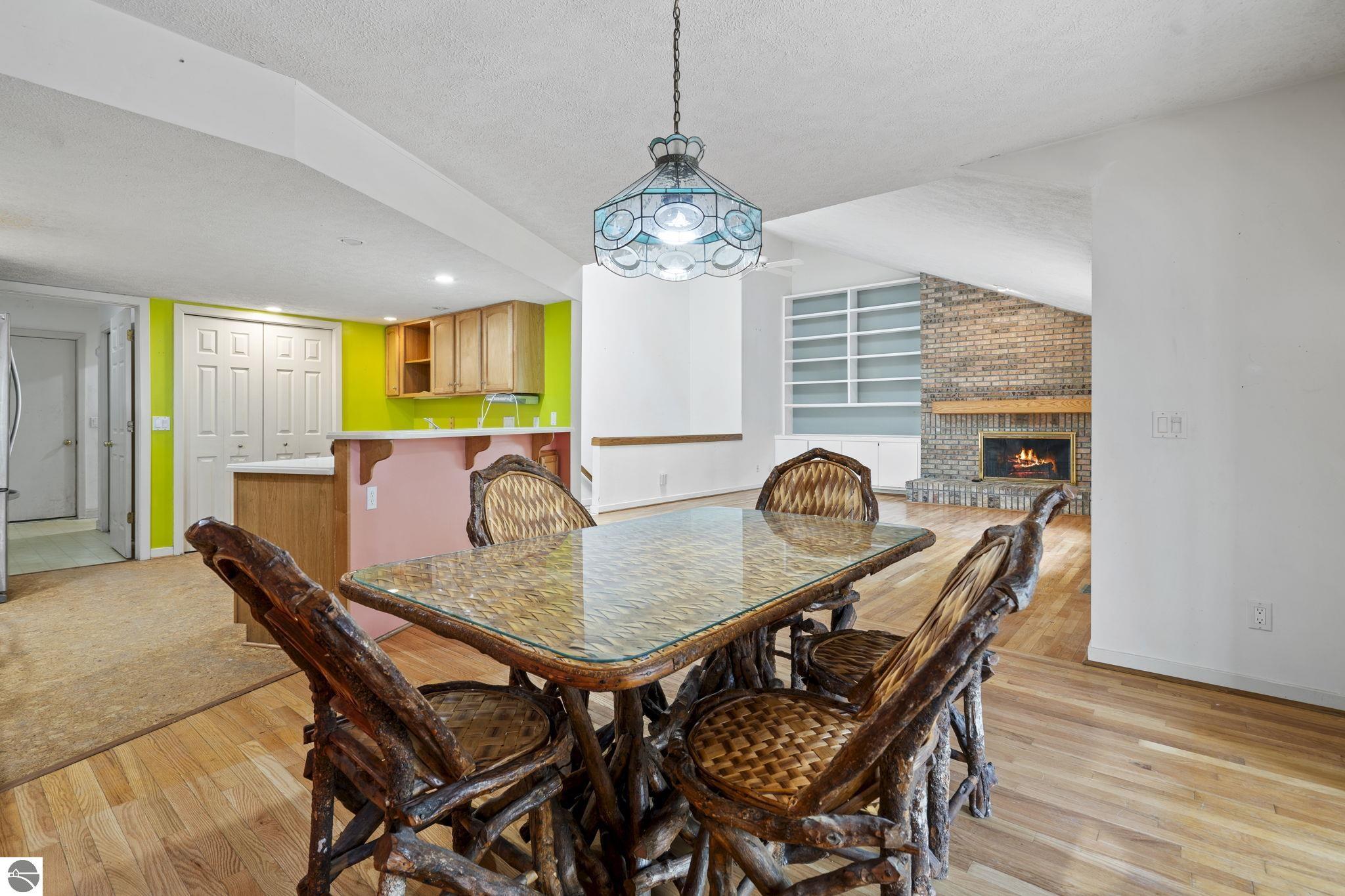 Opportunity awaits in this ideally located Port of Old Mission condo offering privacy, wooded views, and incredible potential to make it your own. With a desirable main-floor living layout, this home features a spacious living room with vaulted ceilings, a cozy gas fireplace, and an open-concept design that flows seamlessly into the dining area and enclosed three-season room—perfect for enjoying the peaceful natural setting year-round. The primary bedroom offers wood floors, a walk-in closet, and an ensuite bath, while convenient main-floor laundry adds to the ease of everyday living. The walkout lower level provides excellent additional space with a bedroom, full bath, office, abundant storage, and plenty of natural light—ideal for guests, hobbies, or a home workspace. An attached one-car garage plus a separate detached one-car garage offer rare and valuable extra storage. While the condo would benefit from updating and renovation, the location and layout make it a standout opportunity. Enjoy low-maintenance living in a walkable community where exterior maintenance and snow removal are handled for you—giving you more time to take advantage of all that Traverse City has to offer. Just minutes from downtown dining, shopping, entertainment, the farmers market, Old Mission wineries, and Bryant Park.