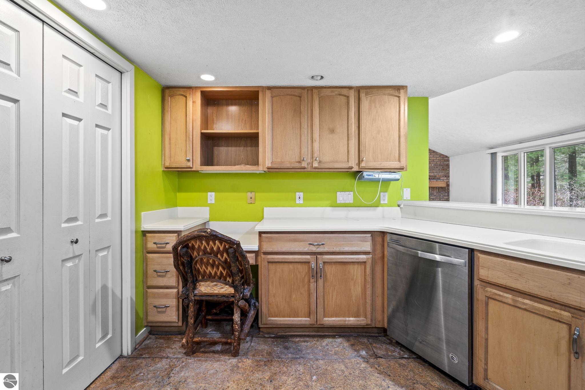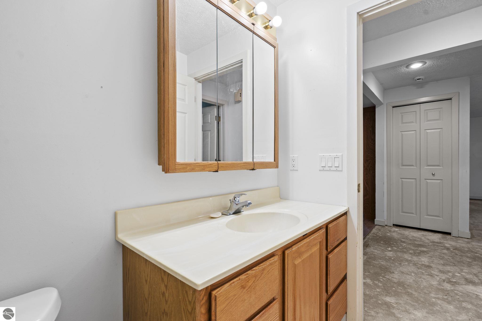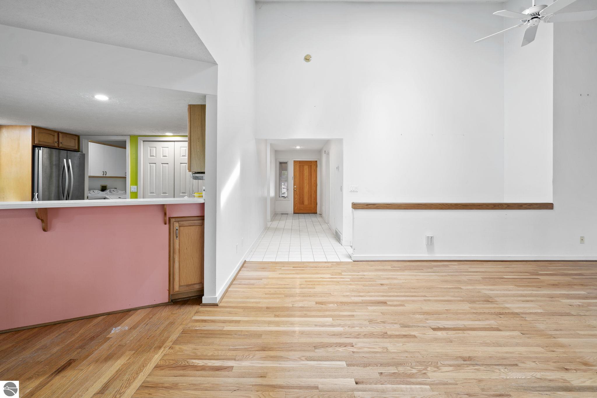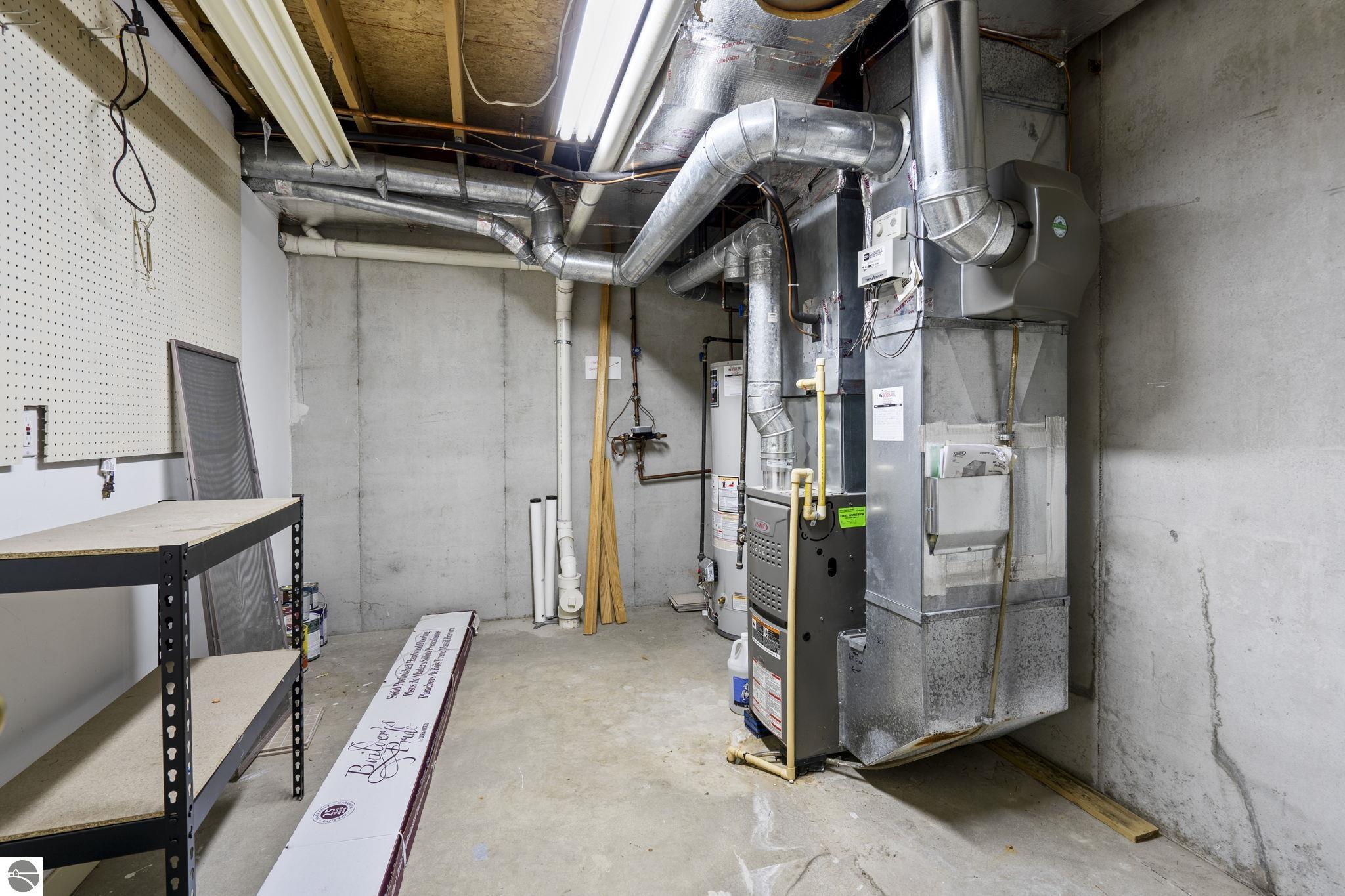 Opportunity awaits in this ideally located Port of Old Mission condo offering privacy, wooded views, and incredible potential to make it your own. With a desirable main-floor living layout, this home features a spacious living room with vaulted ceilings, a cozy gas fireplace, and an open-concept design that flows seamlessly into the dining area and enclosed three-season room—perfect for enjoying the peaceful natural setting year-round. The primary bedroom offers wood floors, a walk-in closet, and an ensuite bath, while convenient main-floor laundry adds to the ease of everyday living. The walkout lower level provides excellent additional space with a bedroom, full bath, office, abundant storage, and plenty of natural light—ideal for guests, hobbies, or a home workspace. An attached one-car garage plus a separate detached one-car garage offer rare and valuable extra storage. While the condo would benefit from updating and renovation, the location and layout make it a standout opportunity. Enjoy low-maintenance living in a walkable community where exterior maintenance and snow removal are handled for you—giving you more time to take advantage of all that Traverse City has to offer. Just minutes from downtown dining, shopping, entertainment, the farmers market, Old Mission wineries, and Bryant Park.