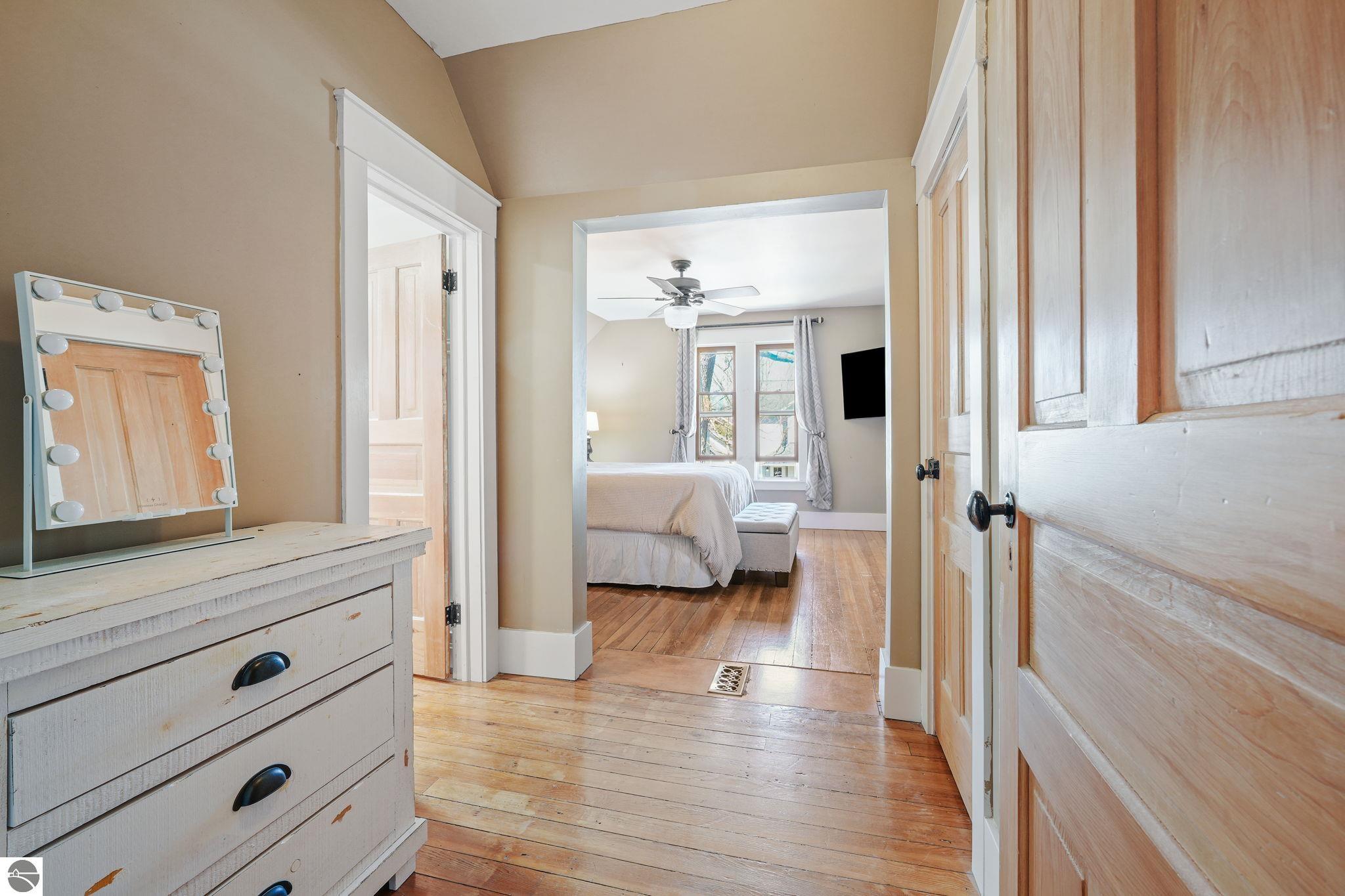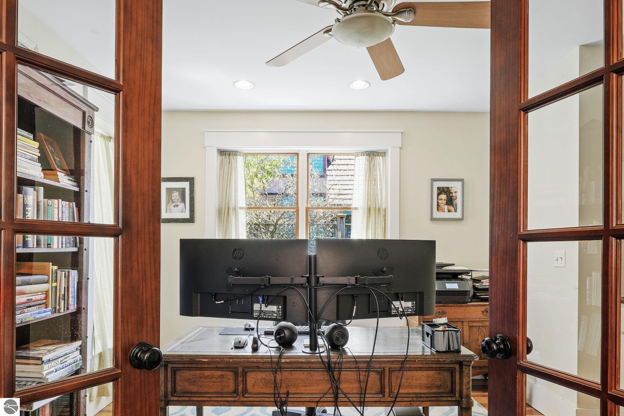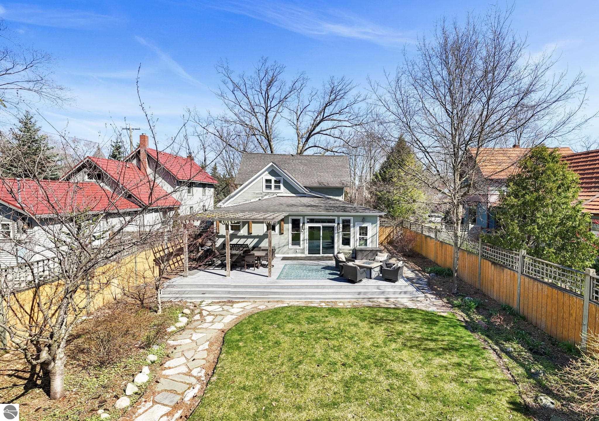 Welcome to an exceptional downtown residence where location, history, and versatility come together seamlessly. Perfectly positioned in the heart of Traverse City, this home offers effortless walkability to the Boardman Lake Trail, Oryana, shopping, restaurants, and the sparkling shores of West Grand Traverse Bay. Originally built in 1880, this home beautifully blends timeless character with thoughtful modern updates. From the moment you step inside, you’ll appreciate the warmth and charm of a bygone era enhanced by today’s comforts and design. Original wood doors, rich hardwood floors throughout, and an ornate gas fireplace create a sense of history, while stylish shiplap accents and updated finishes bring a fresh, elevated feel. Spanning over 3,400 square feet, the home is filled with natural light and intentional design. The kitchen is bright and functional, featuring light cabinetry, glass-front accents, a granite peninsula, and a sun-filled window—offering a welcoming space that connects easily to the large dining area, ideal for everyday living and gathering. With four bedrooms, three bathrooms, and a dedicated office, the layout offers exceptional flexibility. A main-floor bedroom with a private ensuite provides an ideal option for those seeking main-level living. Adding to the property’s appeal is a fully equipped accessory dwelling unit (ADU) of approximately 800 square feet. Complete with a kitchenette, spacious living area, and a bedroom, it’s ideal for guests, extended stays, or potential income opportunities. The oversized garage, both heated and air-conditioned, provides year-round comfort and convenience. Outside, the fully fenced backyard is a private oasis creating a peaceful and inviting setting. This is a rare opportunity to own a truly distinctive home that captures the charm of Traverse City’s past while embracing the ease of modern living—all in a premier downtown location where everything you love is just steps away.