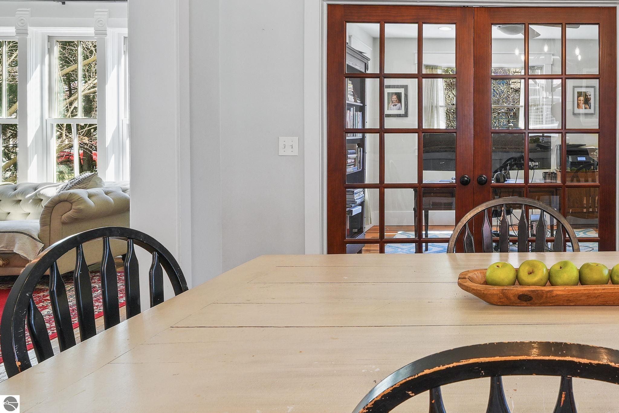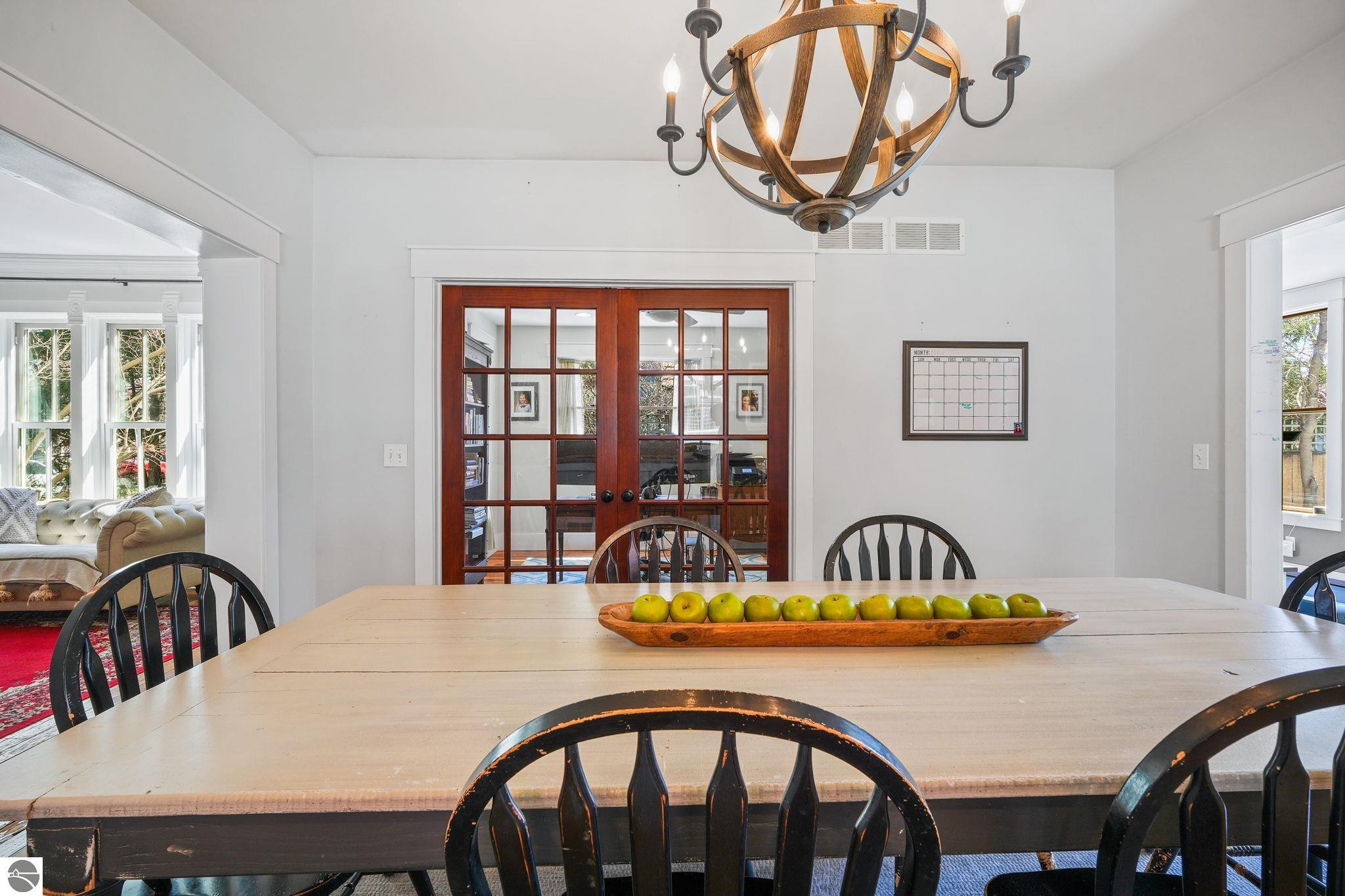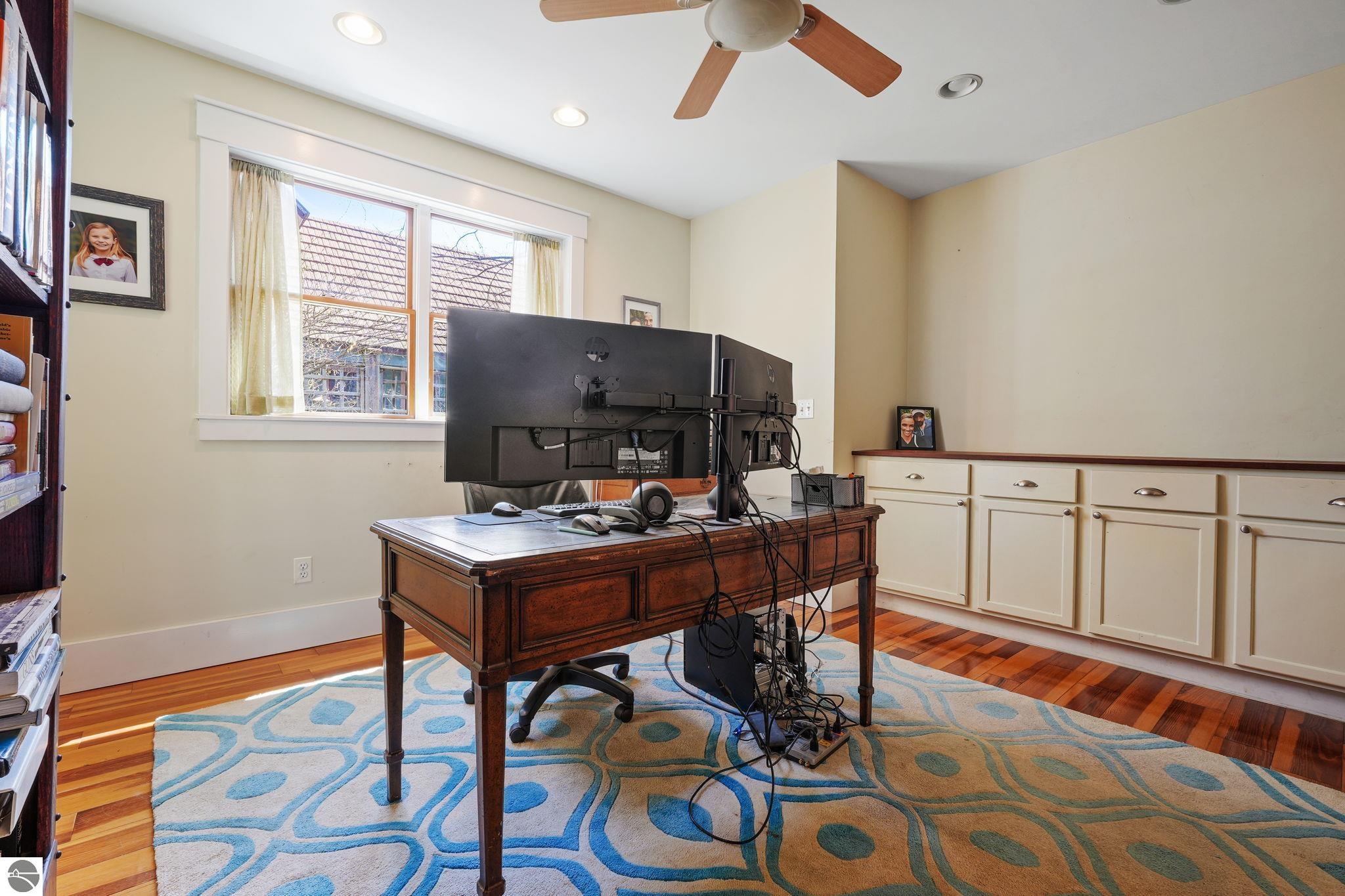 Welcome to an exceptional downtown residence where location, history, and versatility come together seamlessly. Perfectly positioned in the heart of Traverse City, this home offers effortless walkability to the Boardman Lake Trail, Oryana, shopping, restaurants, and the sparkling shores of West Grand Traverse Bay. Originally built in 1880, this home beautifully blends timeless character with thoughtful modern updates. From the moment you step inside, you’ll appreciate the warmth and charm of a bygone era enhanced by today’s comforts and design. Original wood doors, rich hardwood floors throughout, and an ornate gas fireplace create a sense of history, while stylish shiplap accents and updated finishes bring a fresh, elevated feel. Spanning over 3,400 square feet, the home is filled with natural light and intentional design. The kitchen is bright and functional, featuring light cabinetry, glass-front accents, a granite peninsula, and a sun-filled window—offering a welcoming space that connects easily to the large dining area, ideal for everyday living and gathering. With four bedrooms, three bathrooms, and a dedicated office, the layout offers exceptional flexibility. A main-floor bedroom with a private ensuite provides an ideal option for those seeking main-level living. Adding to the property’s appeal is a fully equipped accessory dwelling unit (ADU) of approximately 800 square feet. Complete with a kitchenette, spacious living area, and a bedroom, it’s ideal for guests, extended stays, or potential income opportunities. The oversized garage, both heated and air-conditioned, provides year-round comfort and convenience. Outside, the fully fenced backyard is a private oasis creating a peaceful and inviting setting. This is a rare opportunity to own a truly distinctive home that captures the charm of Traverse City’s past while embracing the ease of modern living—all in a premier downtown location where everything you love is just steps away.