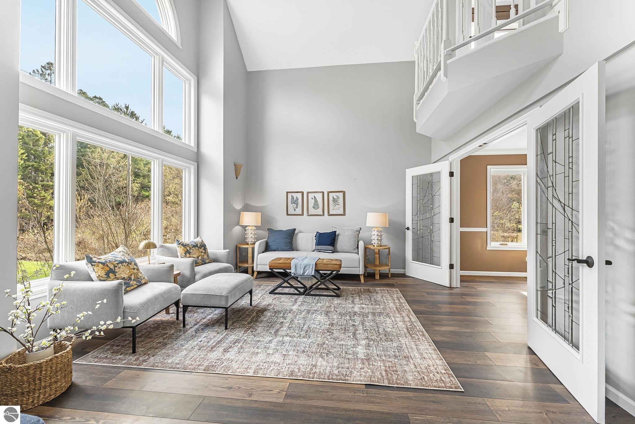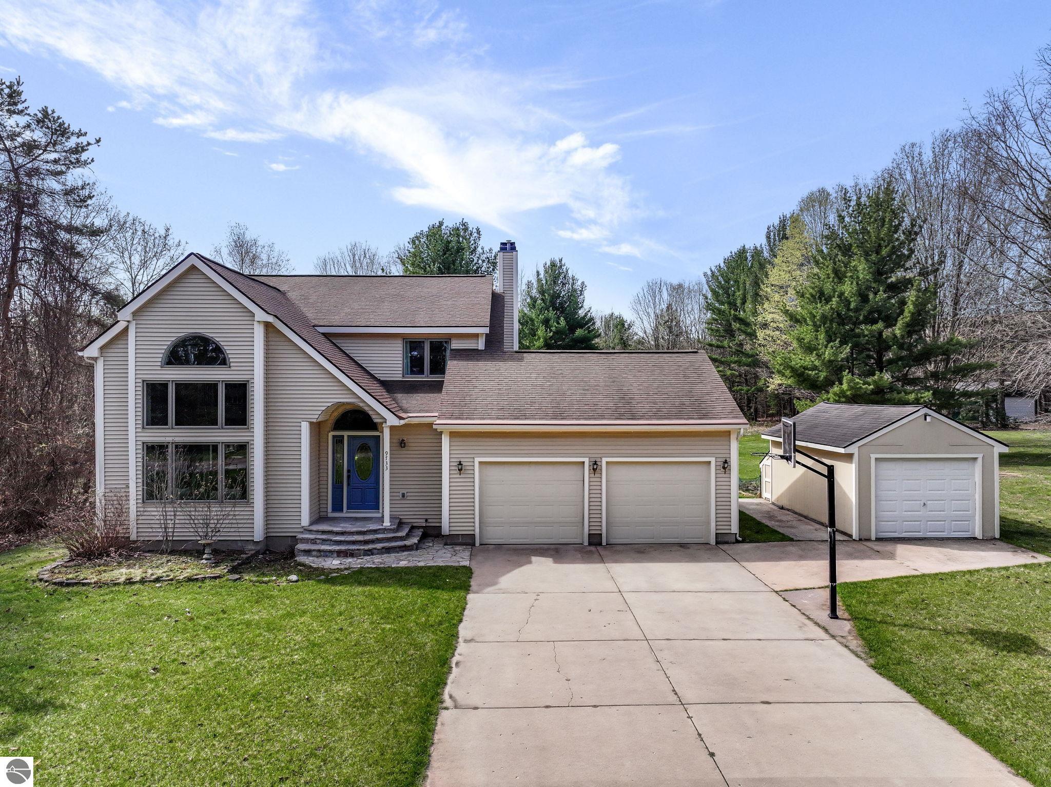 Resting on over 2.5 acres, this 4-bedroom, 3.5-bath contemporary home delivers on everything that Traverse City living has to offer - space, quality, flexibility, storage for tall the northern Michigan toys, and quick access to a playground of water and woods. The interior boasts cathedral ceilings, granite kitchen with island and wall oven, a true wood-burning fireplace, and a fully finished lower level with workshop and guest suite - it's begging to entertain all your family and friends. The back deck leads to a spacious backyard, countryside views, and an additional pole building. All that outdoor storage is perfect for a workspace and stashing the boat over the winter, which means it's easy to be the first one on the lake in the spring (and the launch is just 1/3 of a mile down the road!) This home is move-in ready with ample space to entertain and is begging to become your personal slice of heaven.